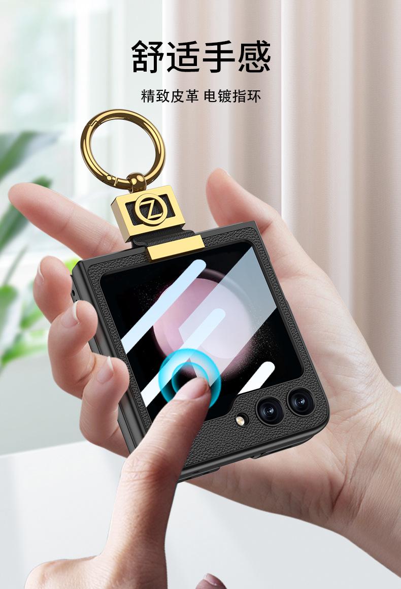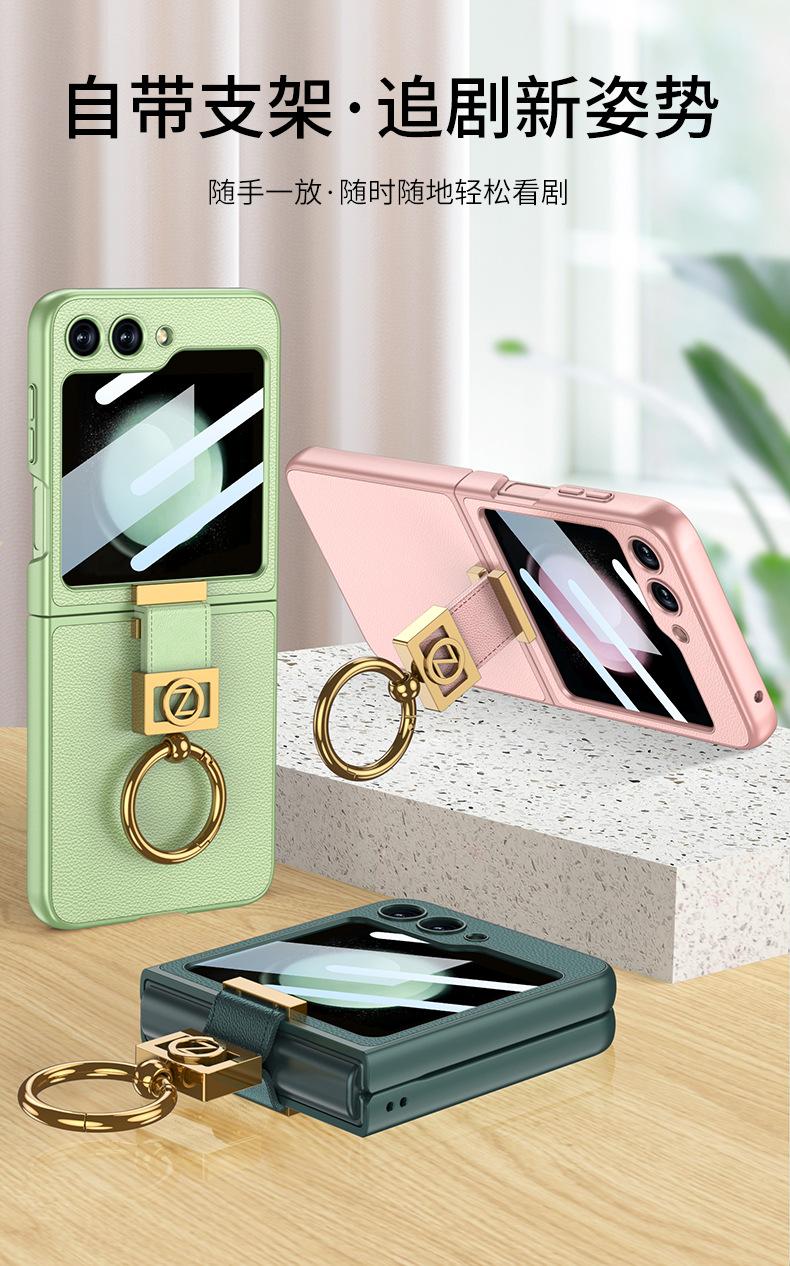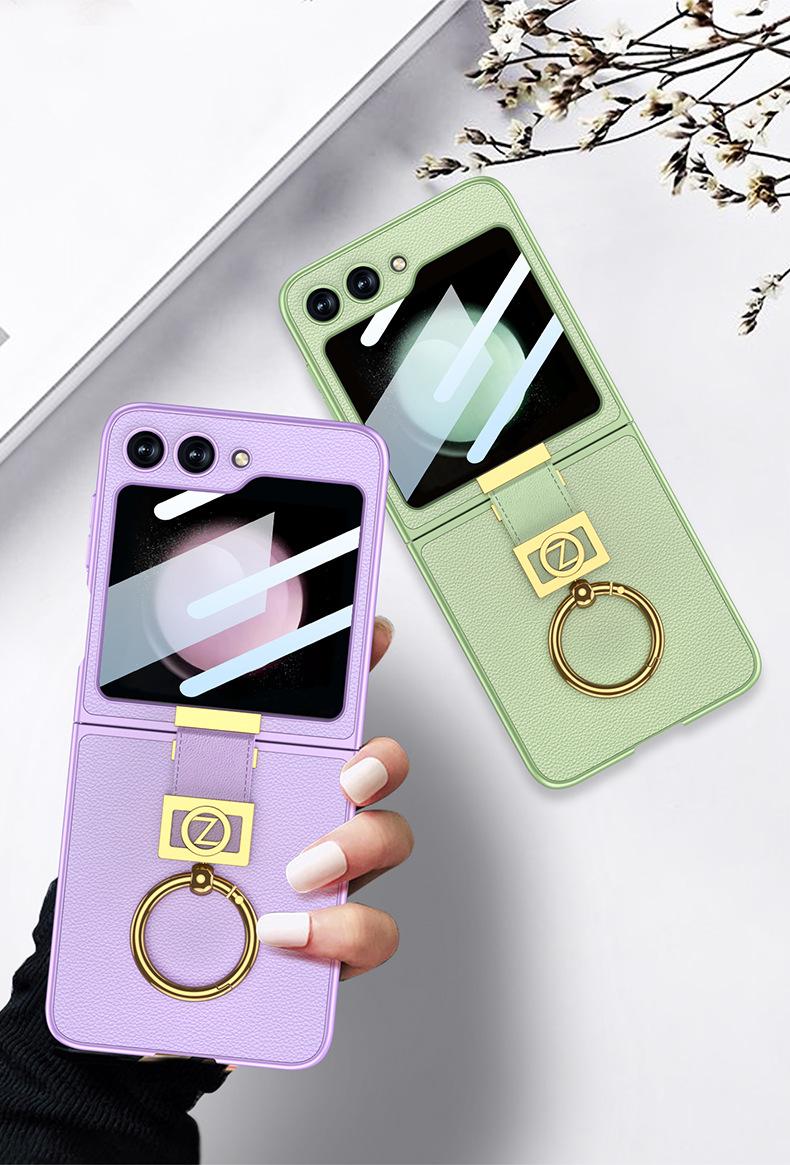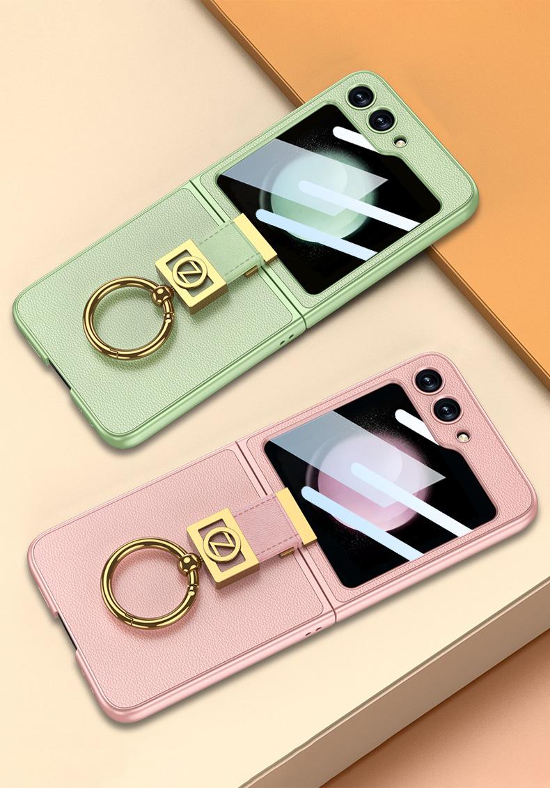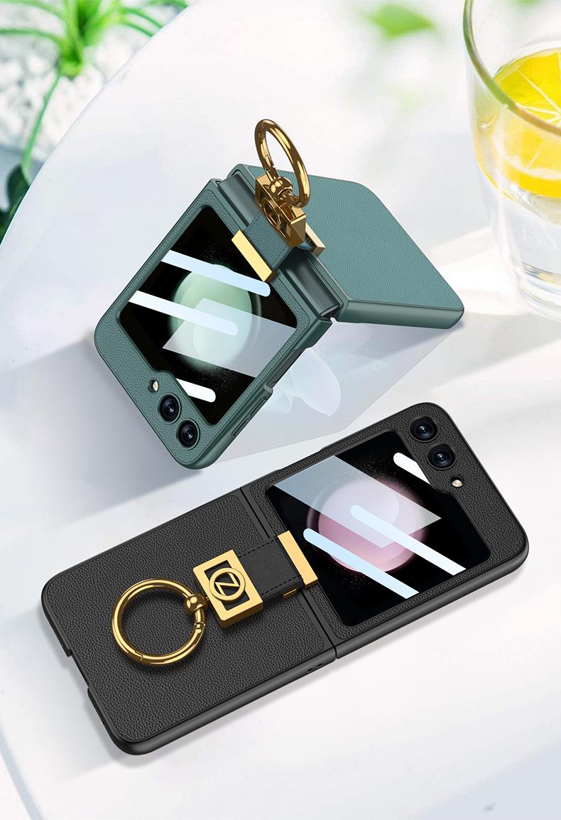 GKK para Samsung GalaxyZFlip5 Funda para Teléfono Plegable Hebilla de Anillo Distintiva Funda Protectora de Cuero Ultrafina