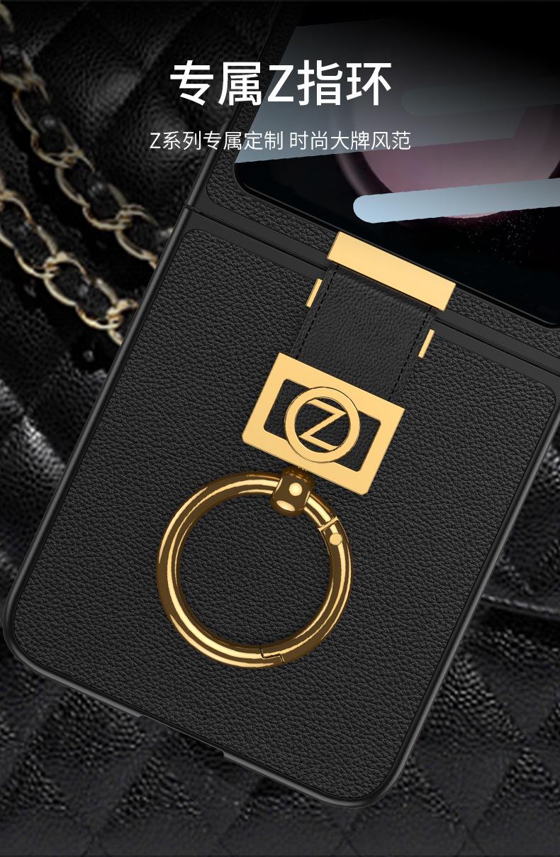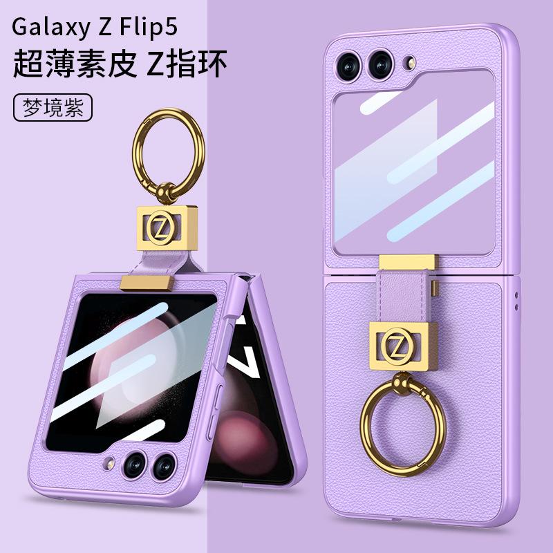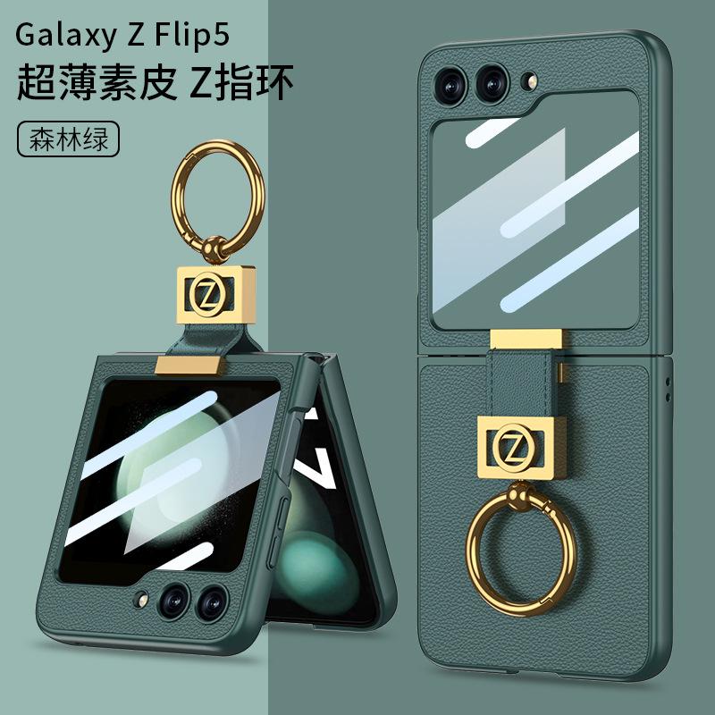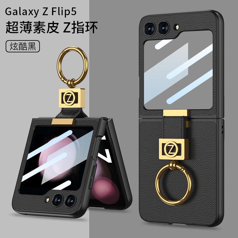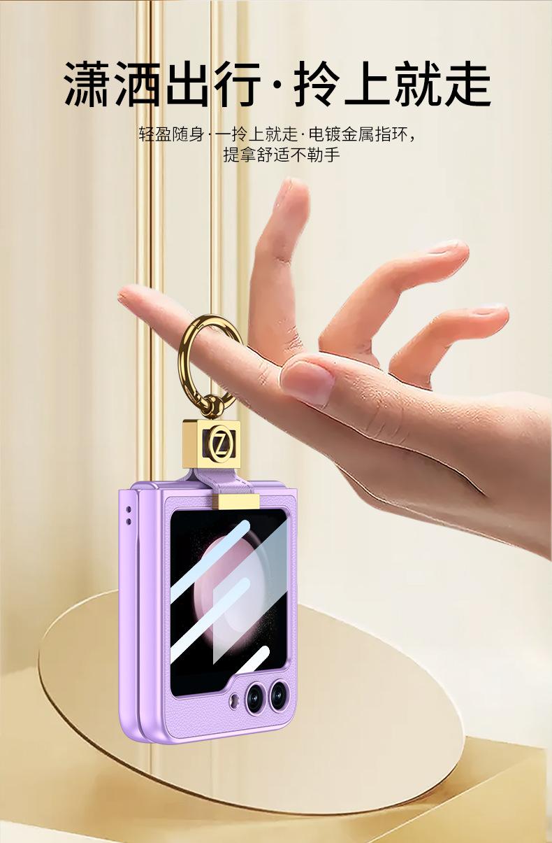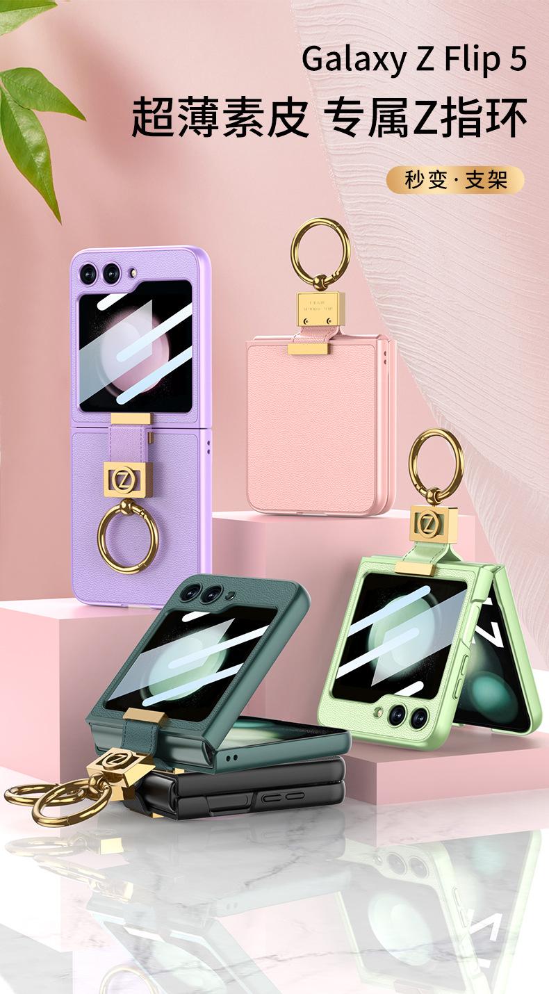 GKK para Samsung GalaxyZFlip5 Funda para Teléfono Plegable Hebilla de Anillo Distintiva Funda Protectora de Cuero Ultrafina