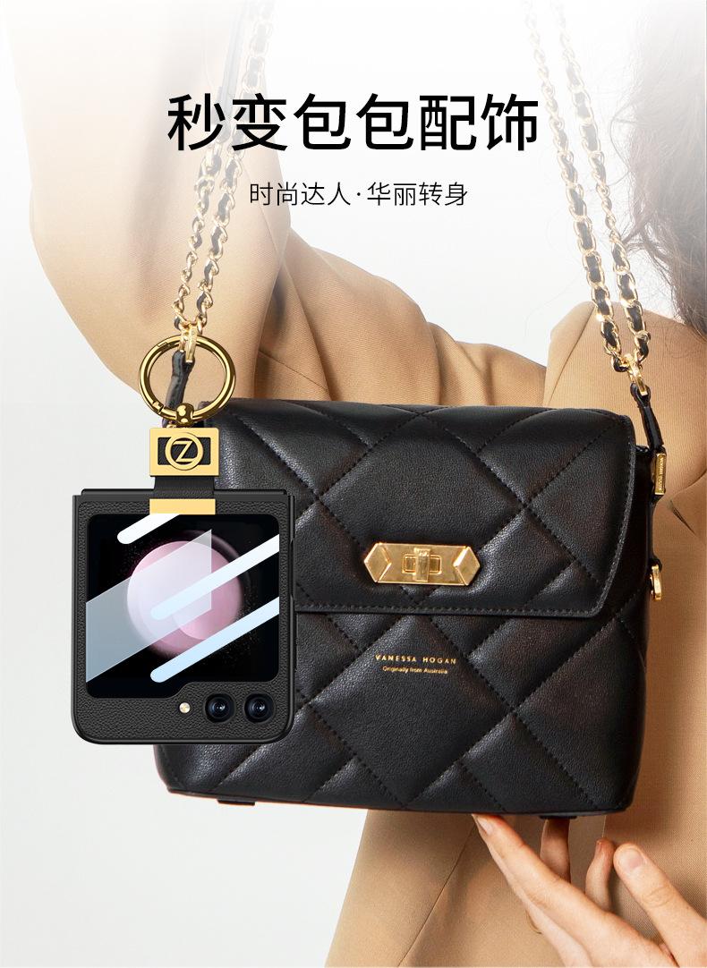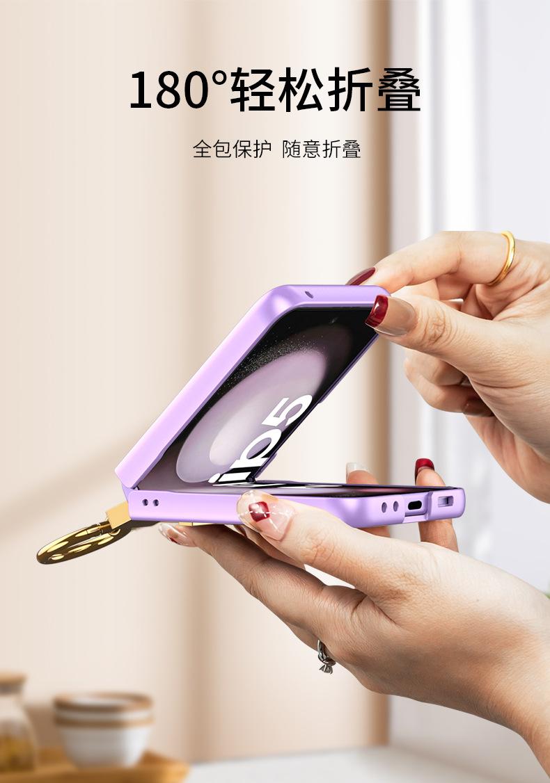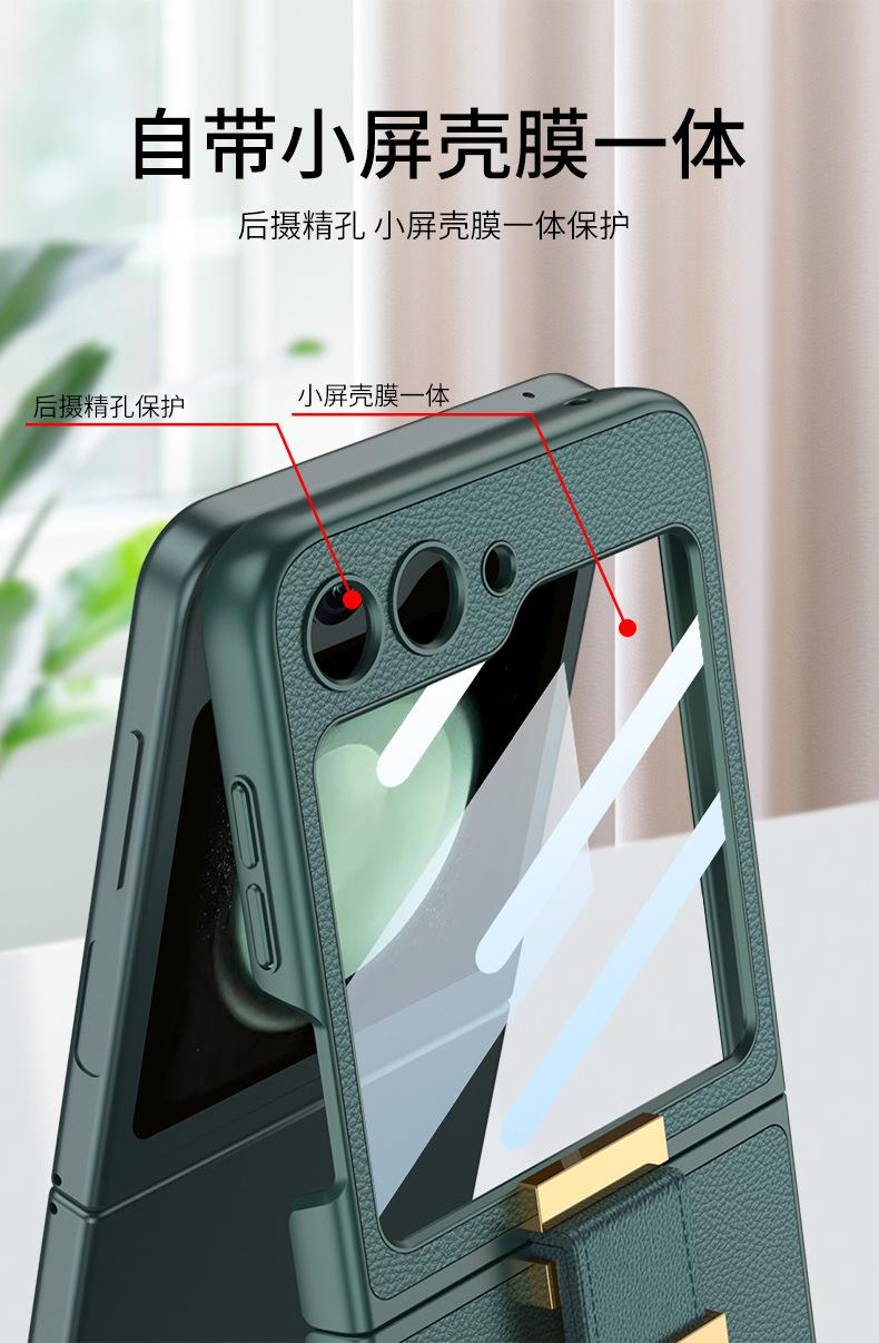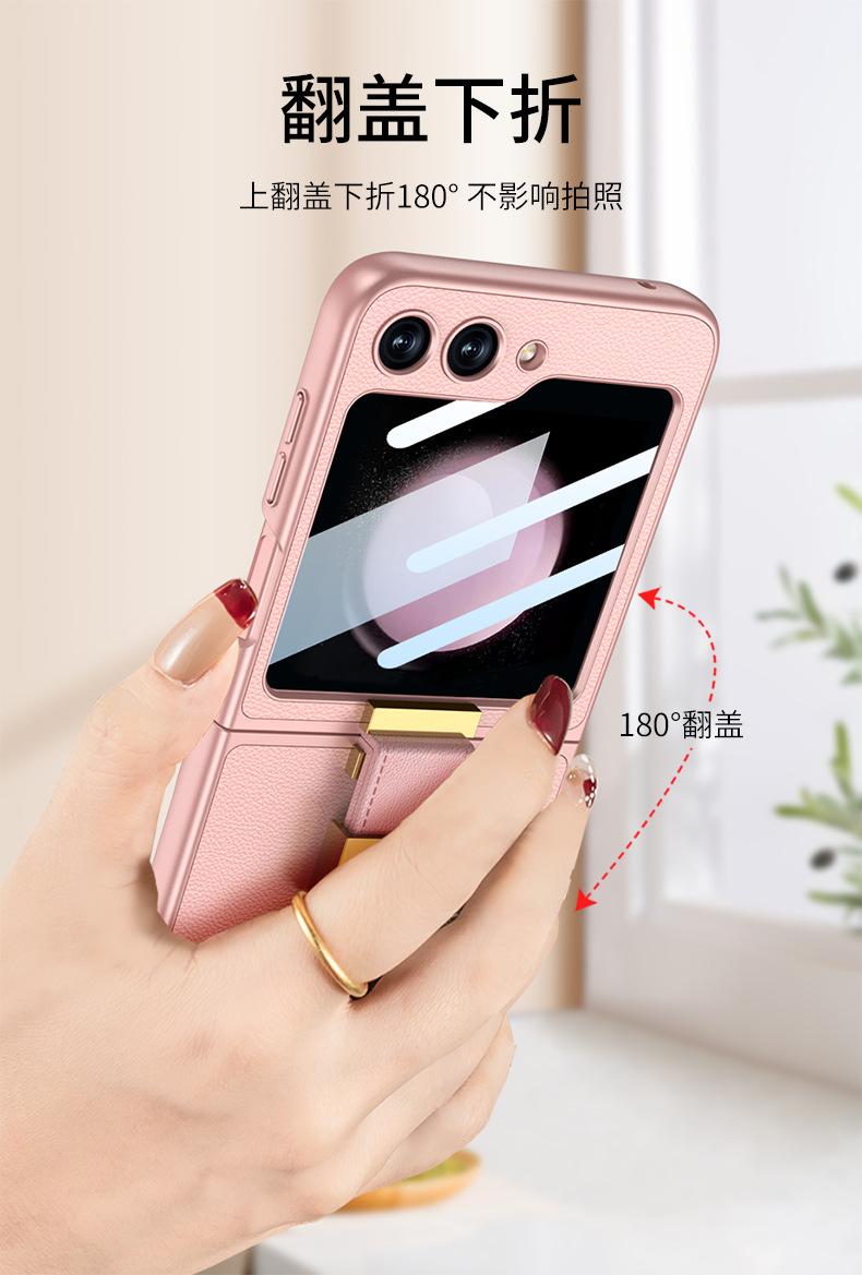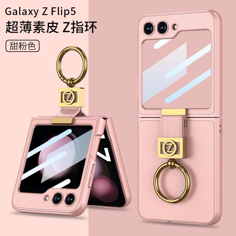 GKK para Samsung GalaxyZFlip5 Funda para Teléfono Plegable Hebilla de Anillo Distintiva Funda Protectora de Cuero Ultrafina