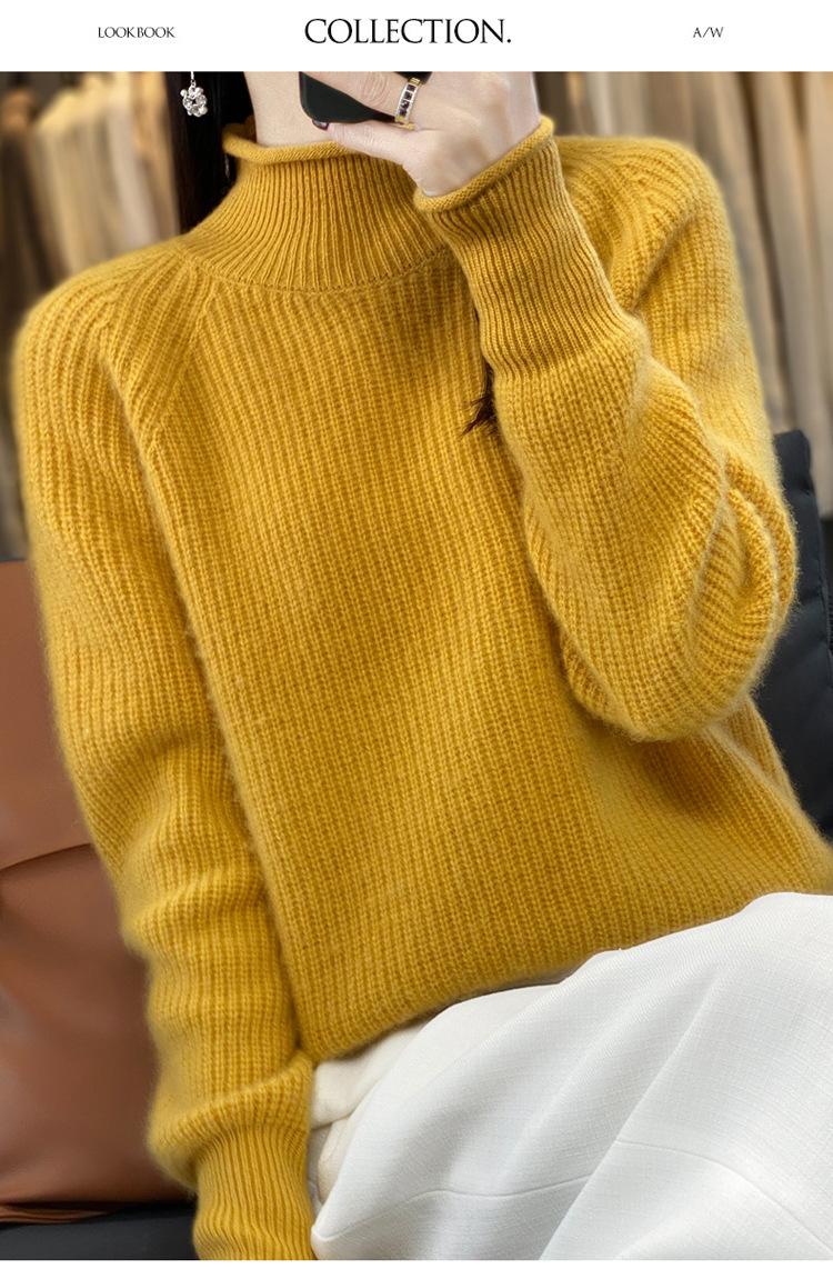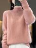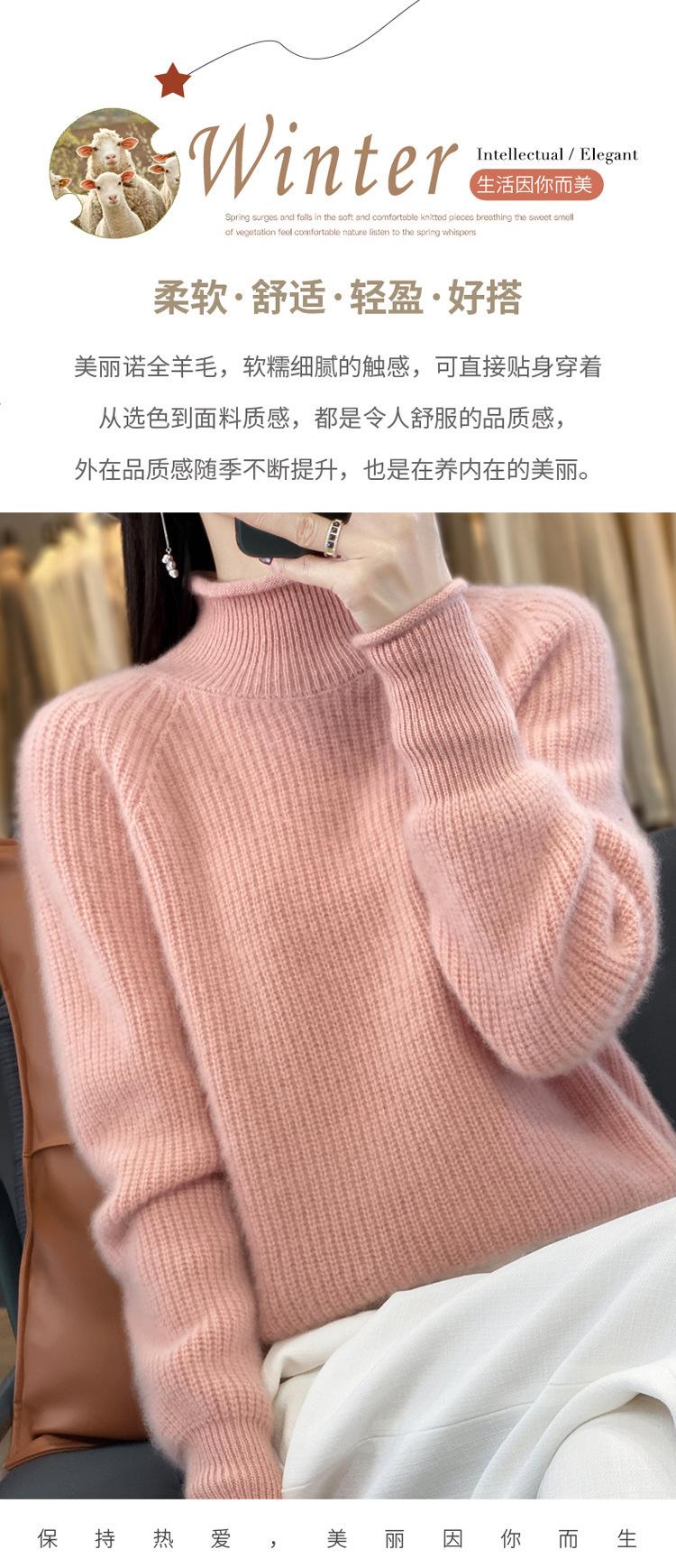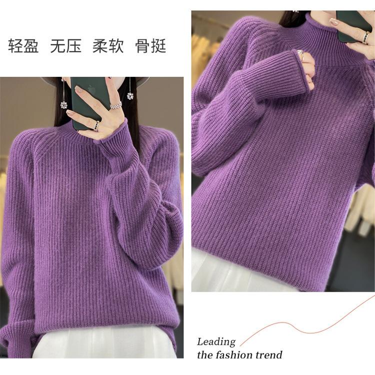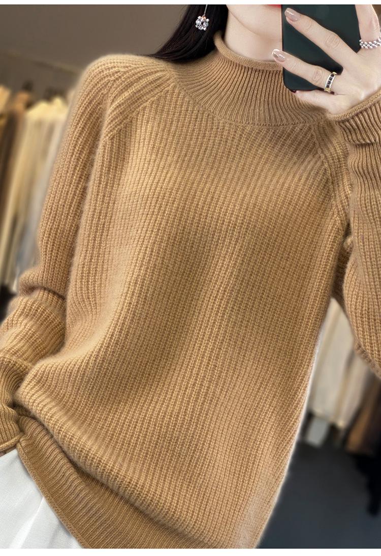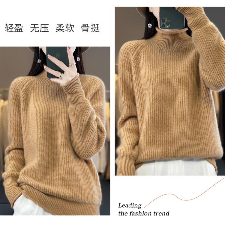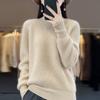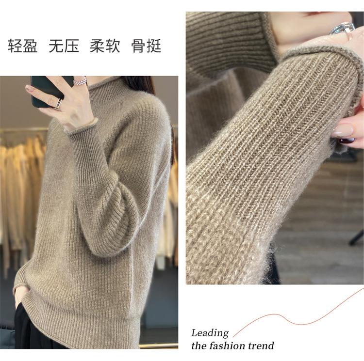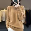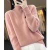Suéter 100% lana transfronterizo para mujer, otoño e invierno, nuevo, cuello alto medio, camisa gruesa, suéter suelto.