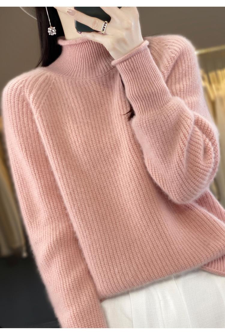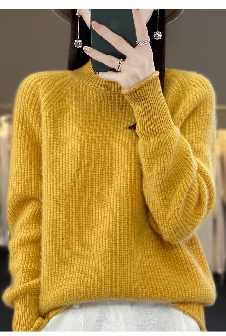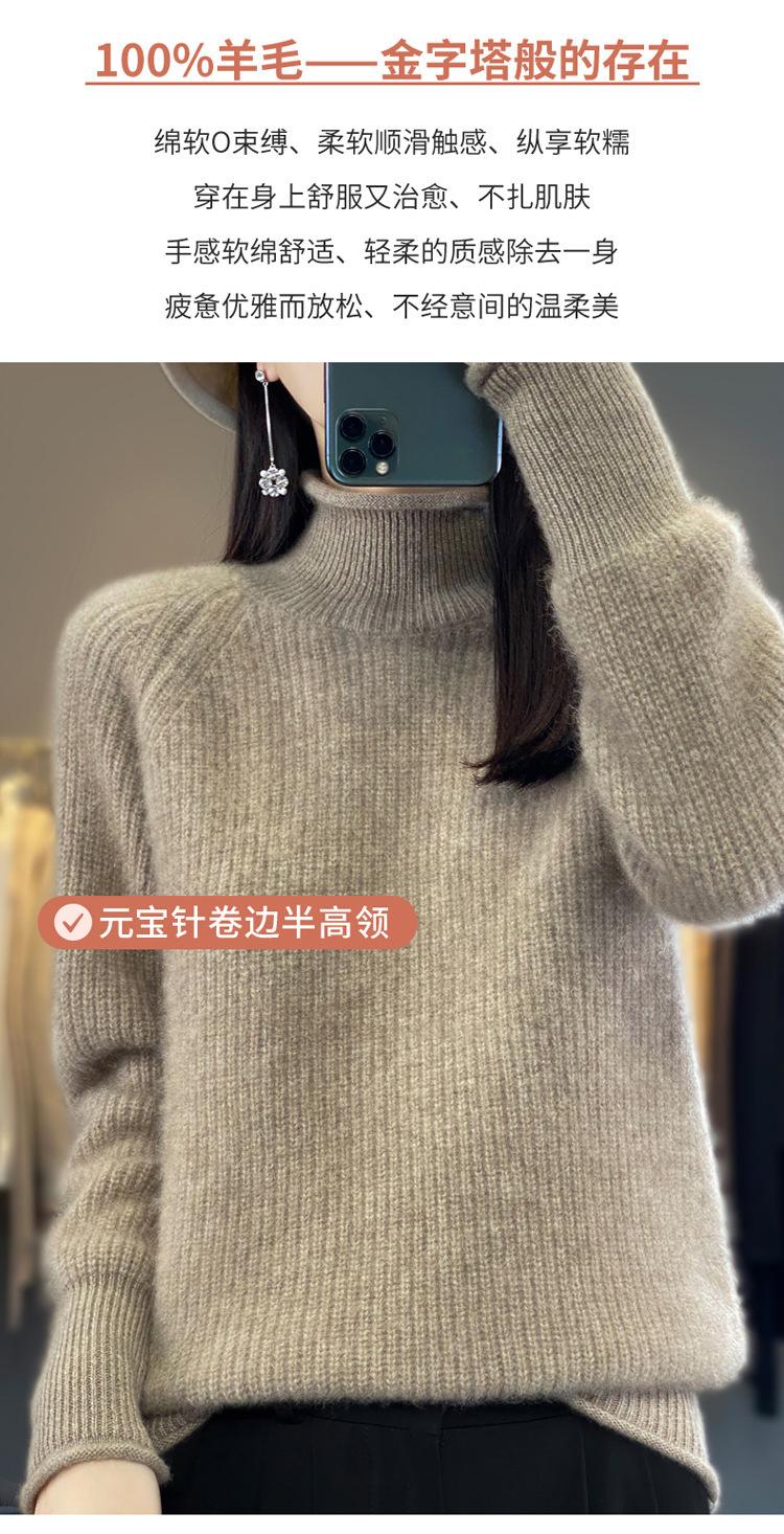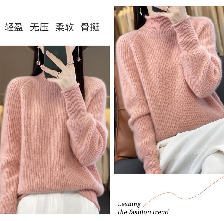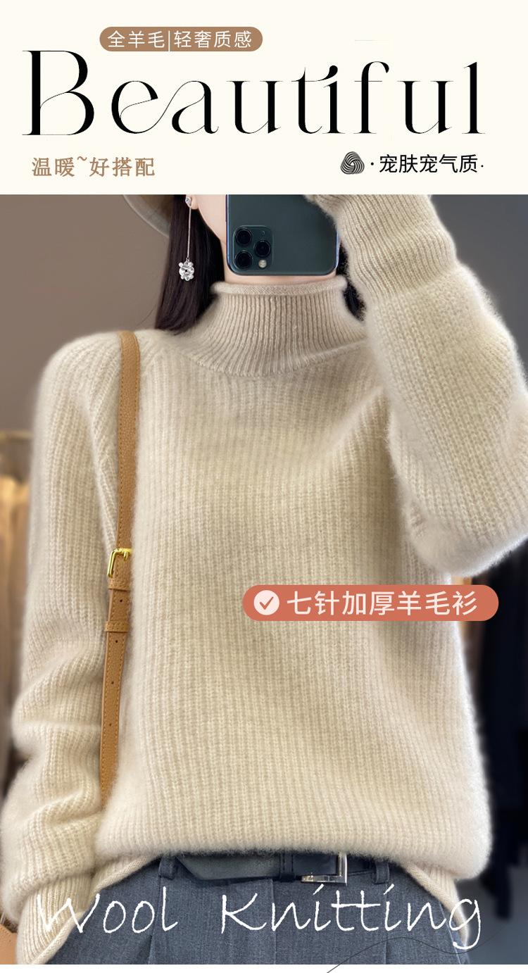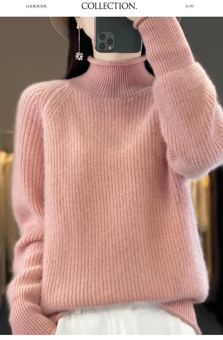 Suéter 100% lana transfronterizo para mujer, otoño e invierno, nuevo, cuello alto medio, camisa gruesa, suéter suelto.