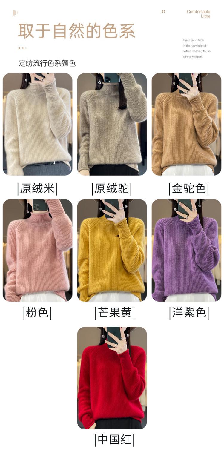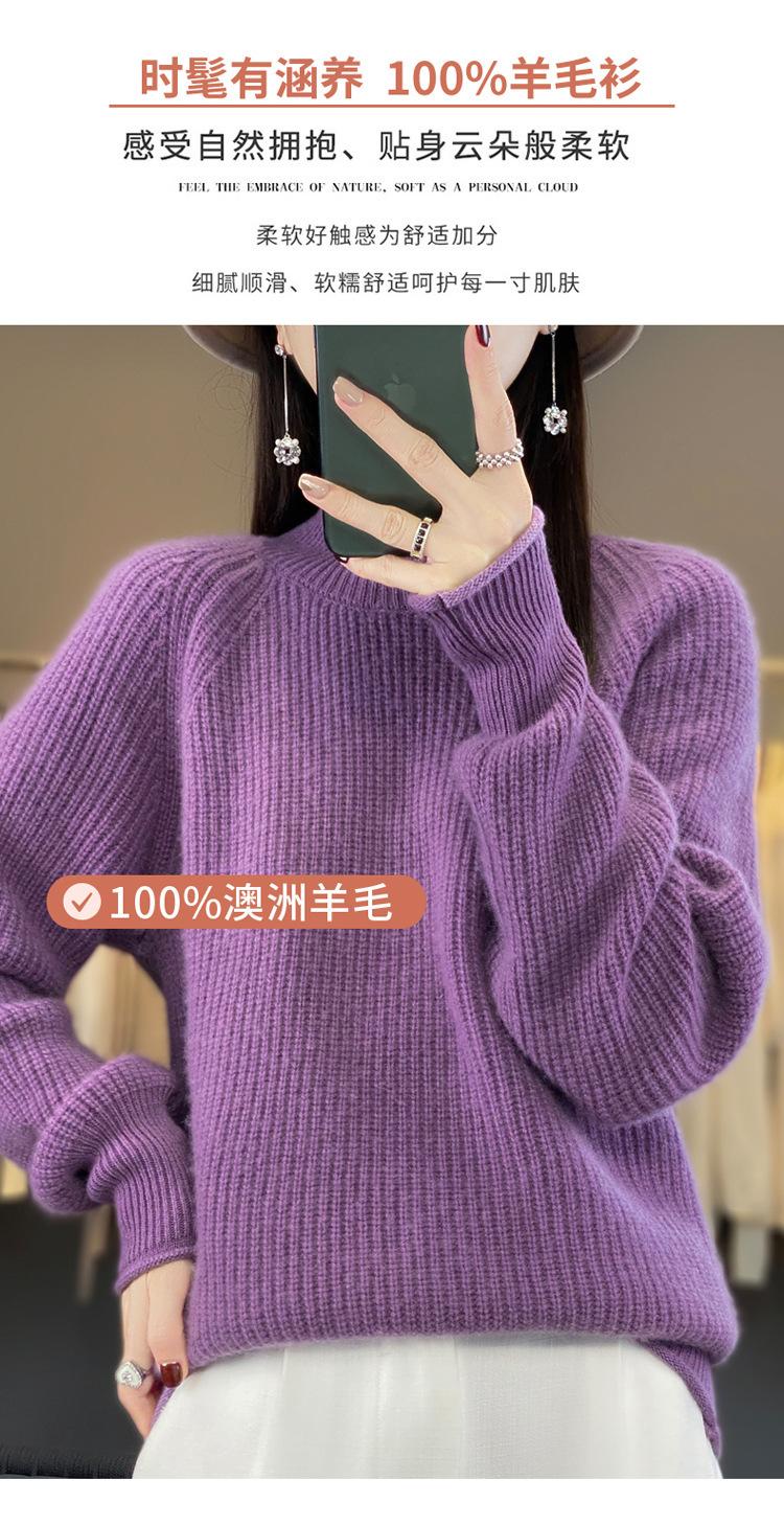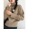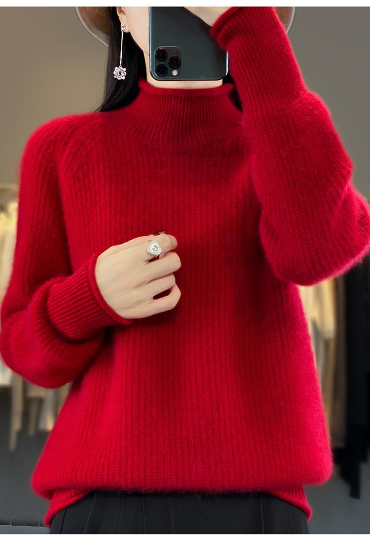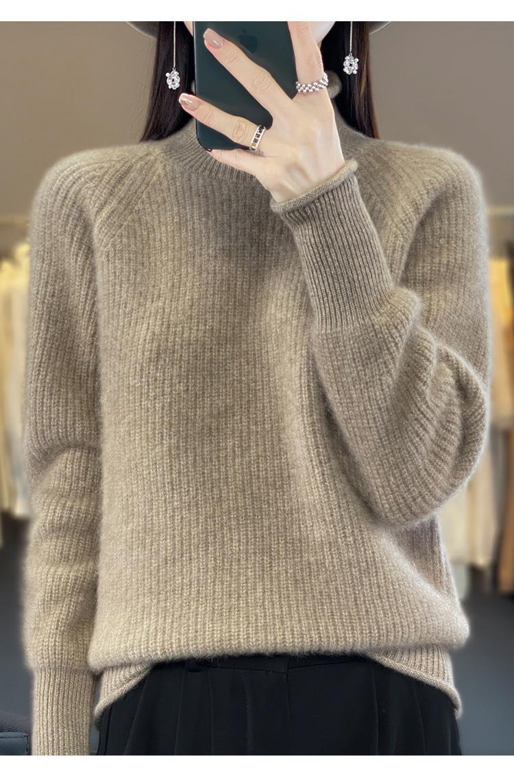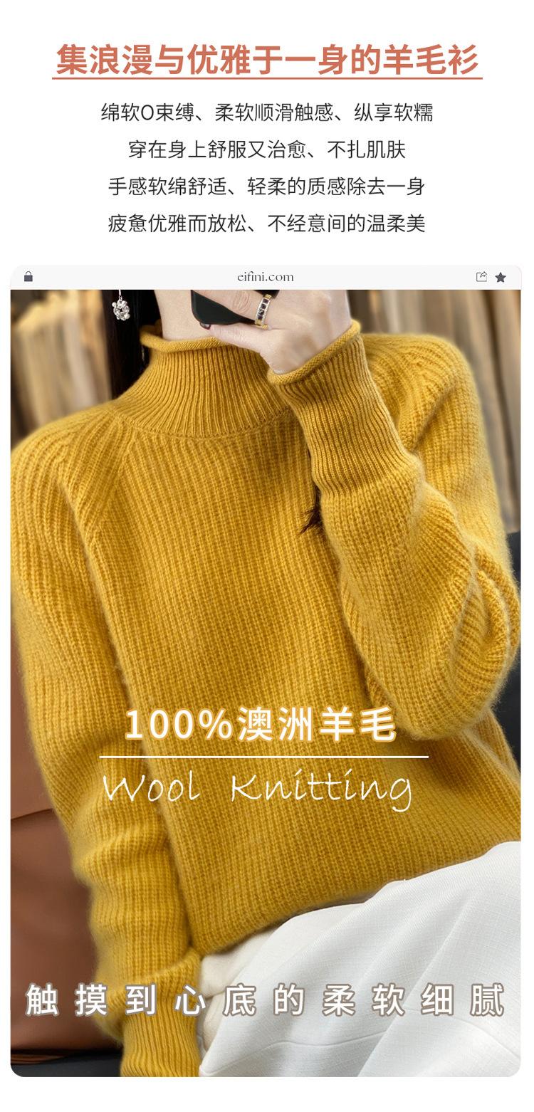 Suéter 100% lana transfronterizo para mujer, otoño e invierno, nuevo, cuello alto medio, camisa gruesa, suéter suelto.