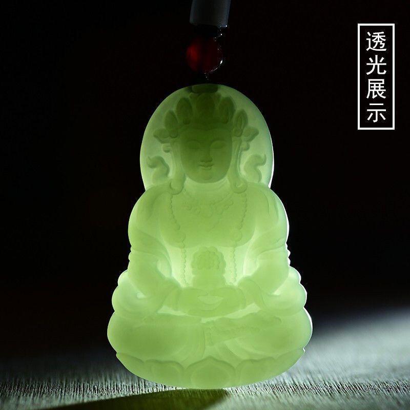 Colgante de Jade Hetian Guanyin para Hombre, Colgante de Jade Hecho de Fino Jade Verde y Blanco, Jade Simulado, Colgante de Jade Guanyin Finamente Tallado