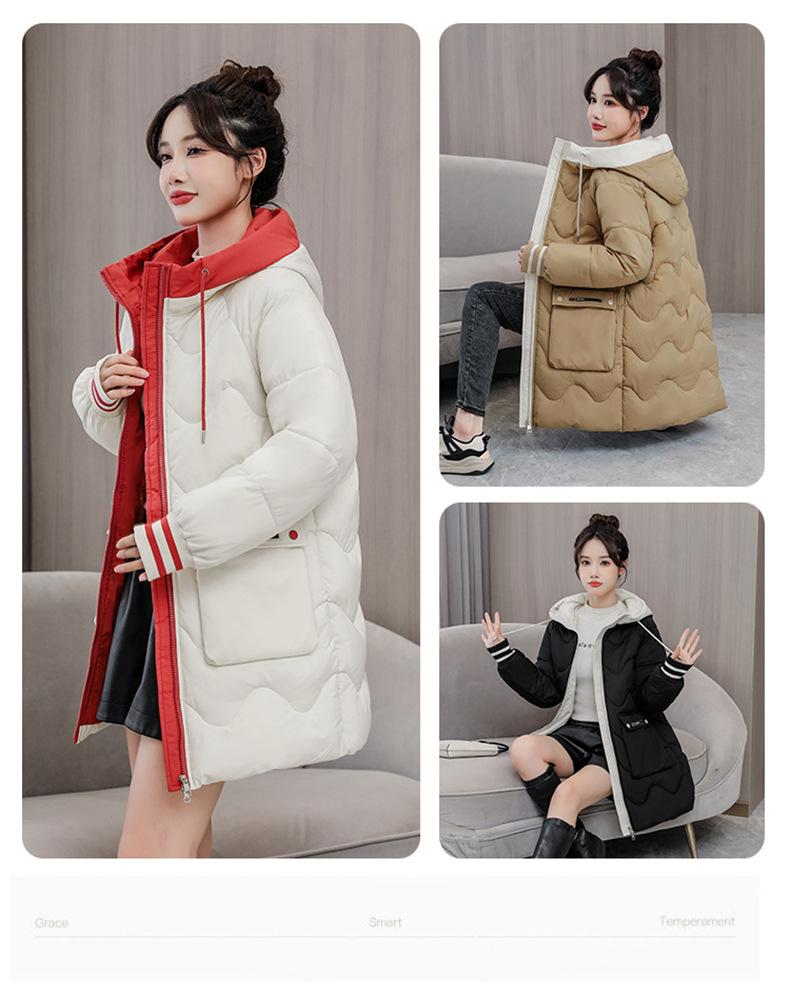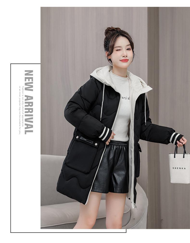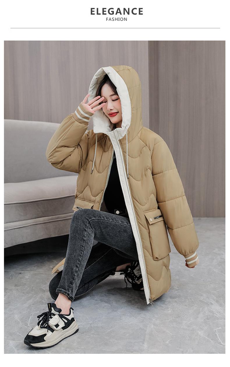 Abrigo de Algodón Talla Extra Grande para Mujer Invierno Chaqueta con Capucha 2023 Nuevo Suelto Largo Medio Engrosado Abrigo de Algodón Traje Pan