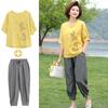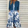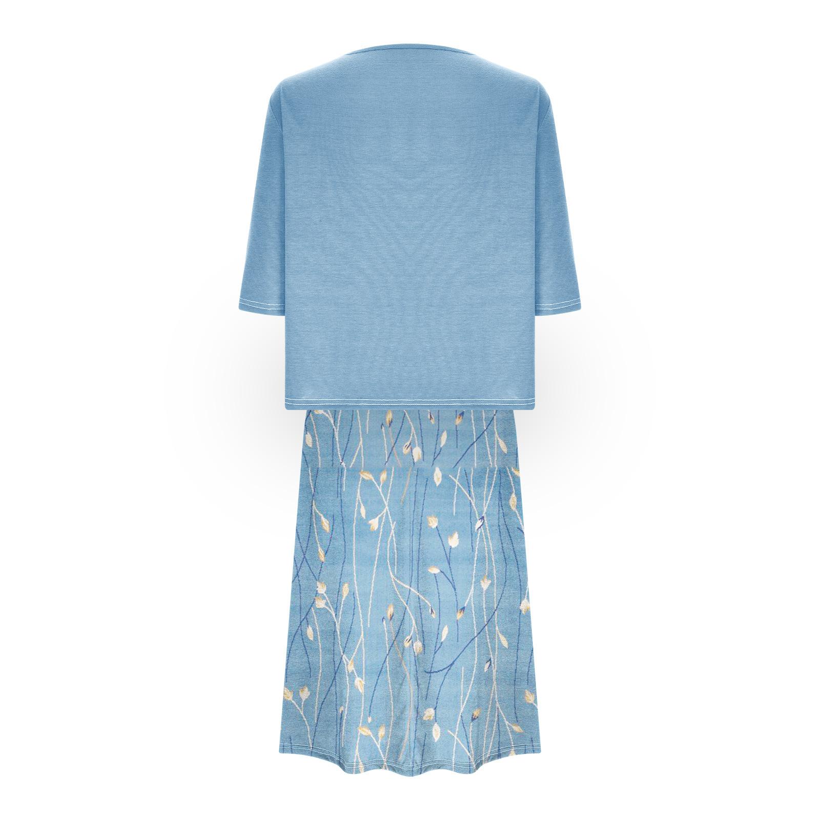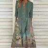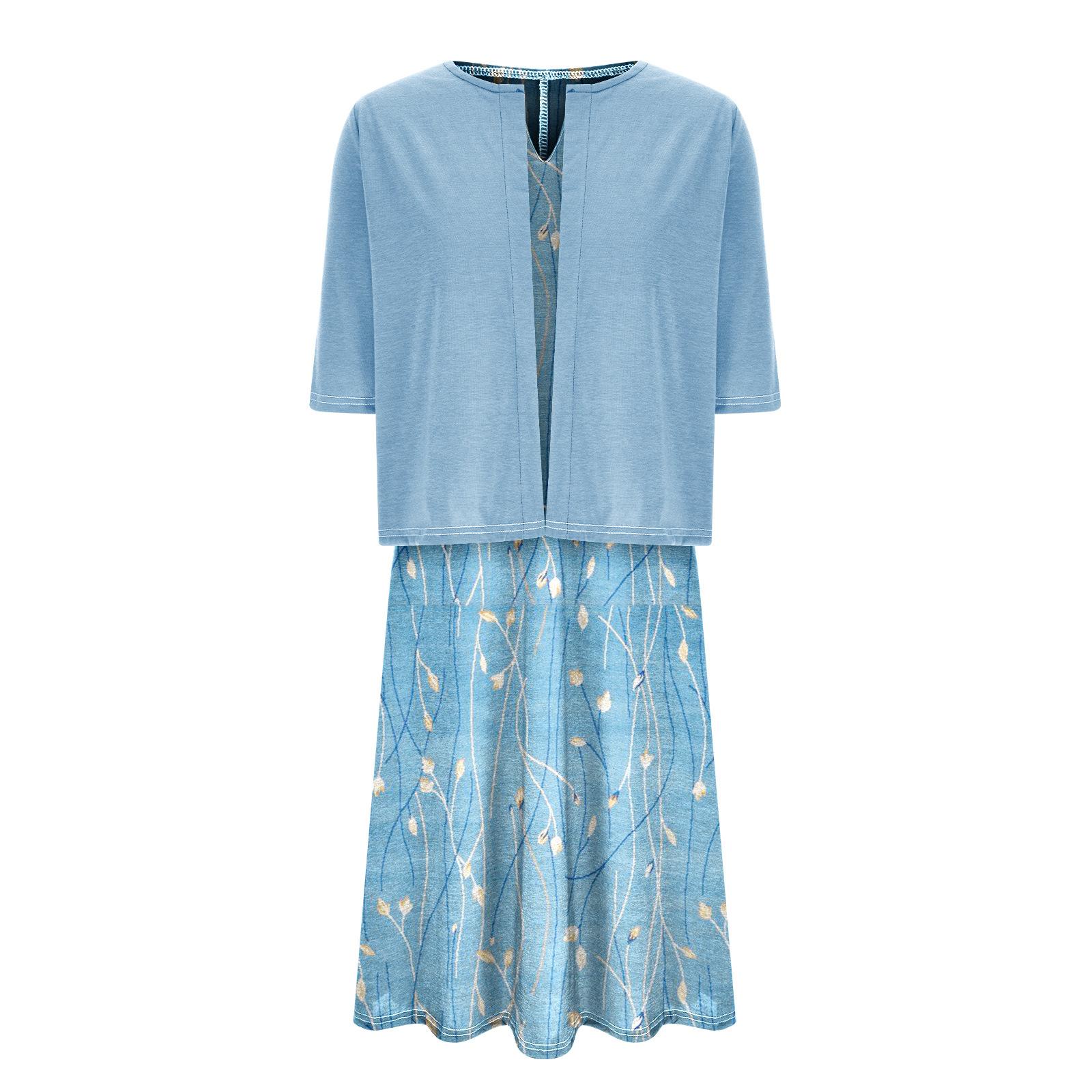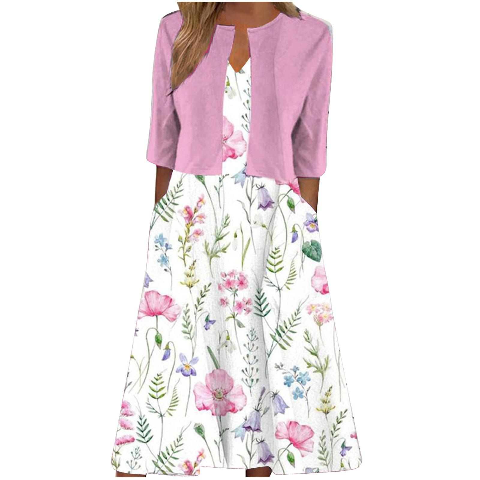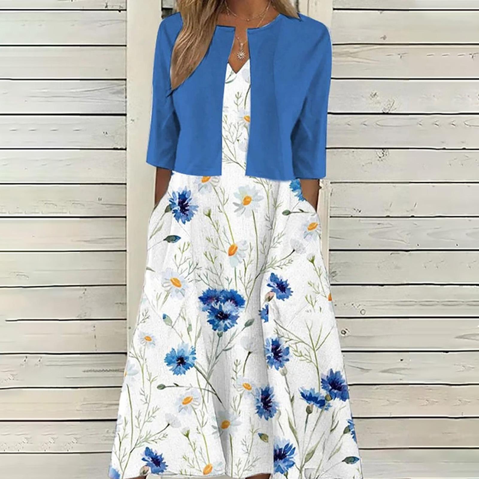 [Talla Grande] Vestido Chaleco Elegante Estilo Étnico con Estampado Floral y Chaqueta Cárdigan de Manga Media Conjunto de Dos Piezas