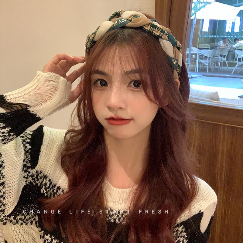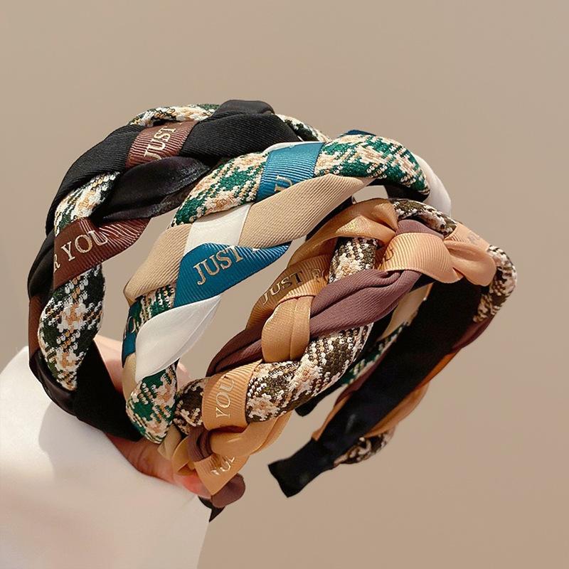 Diadema de moda retro estilo Academia Francesa con diseño de cuadros, estilo trenzado, dulce, combinable con todo, con temperamento, accesorios para el cabello de cabeza alta y extrovertida.
