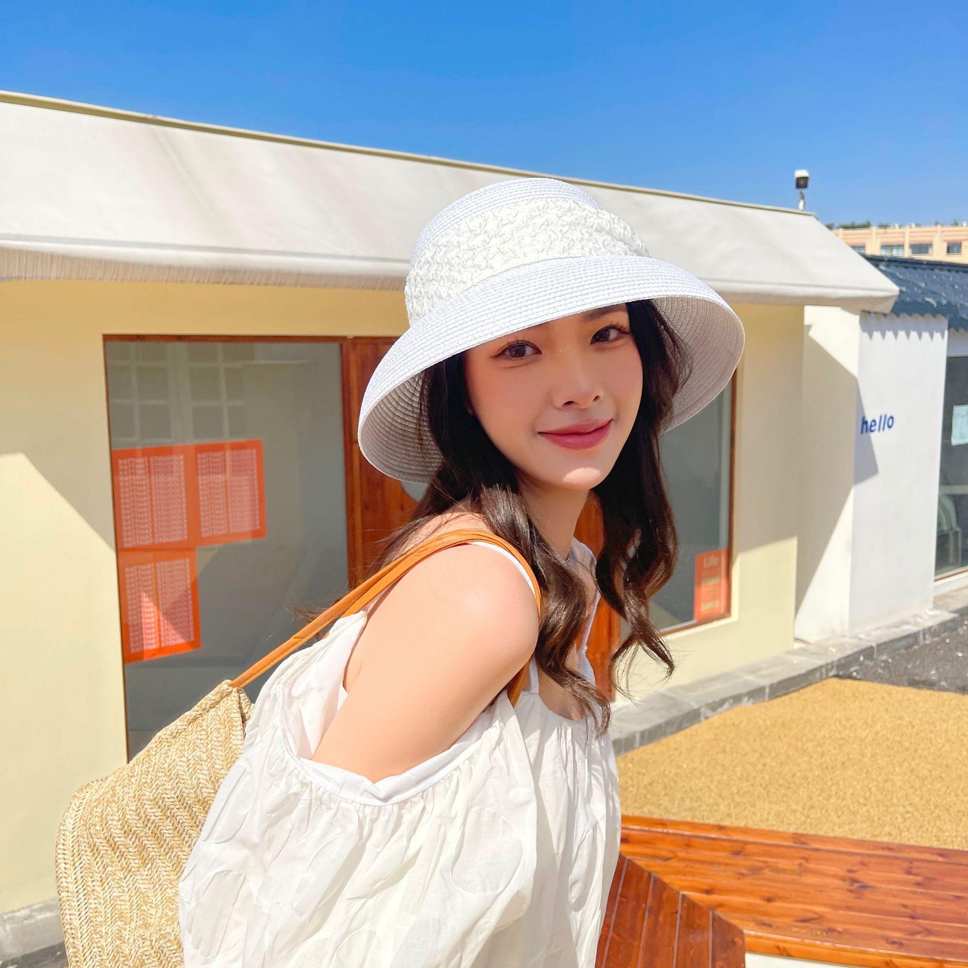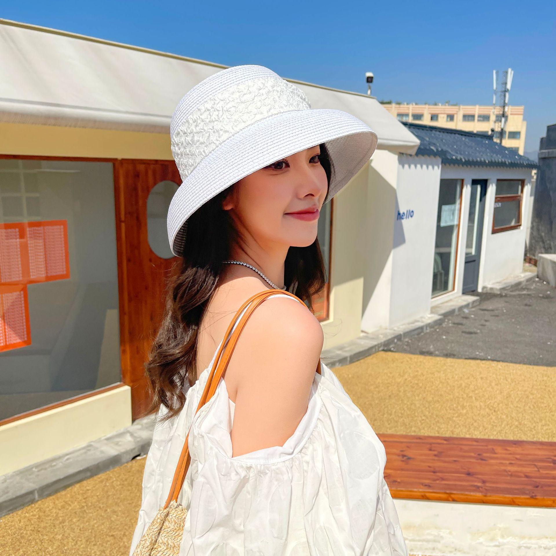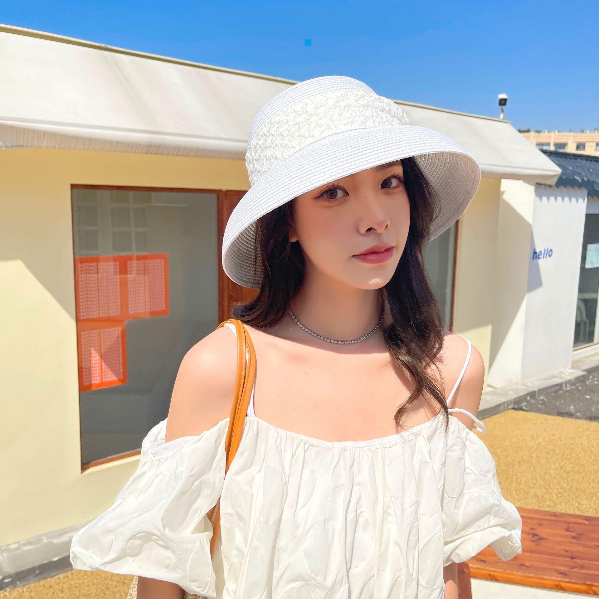 Sombrero de sol para mujer, moda de verano, sencillo, para exteriores, con ala ancha y protección UV, sombrero de cubo, sombrero de paja