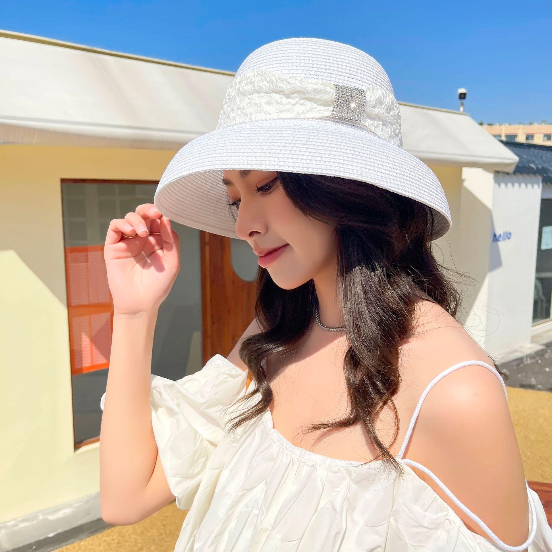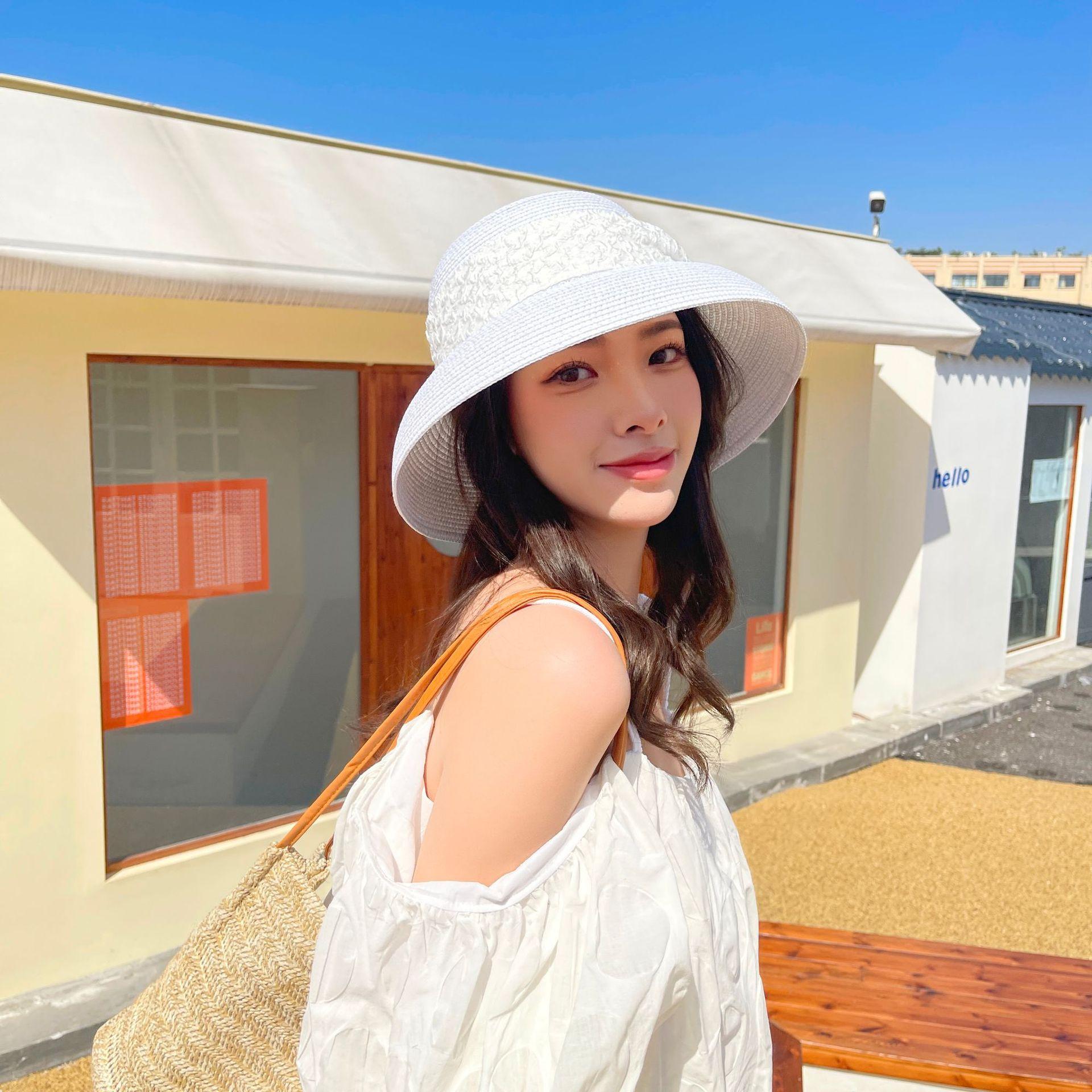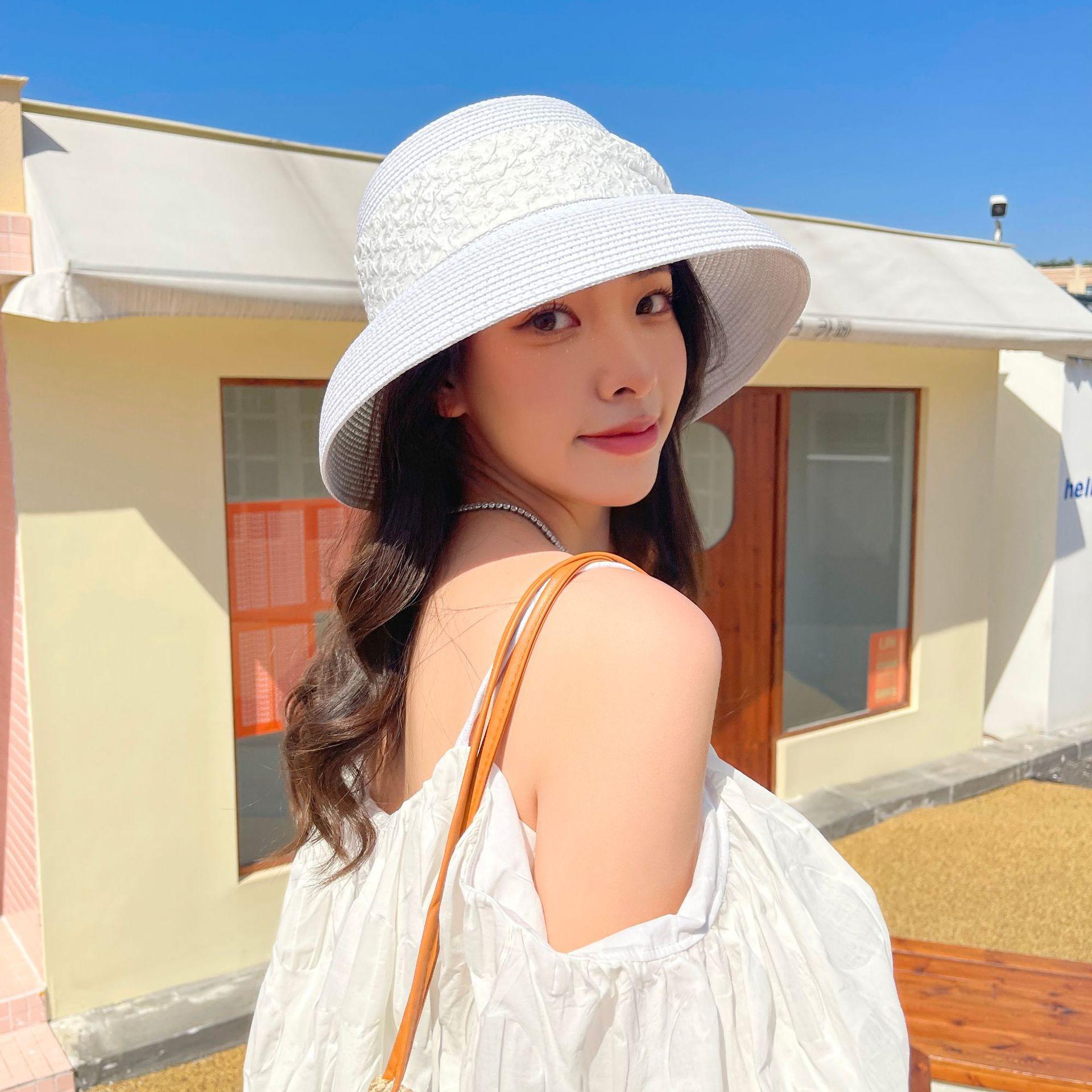 Sombrero de sol para mujer, moda de verano, sencillo, para exteriores, con ala ancha y protección UV, sombrero de cubo, sombrero de paja