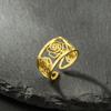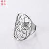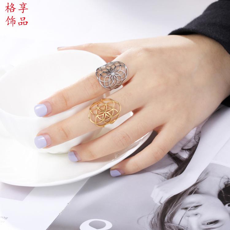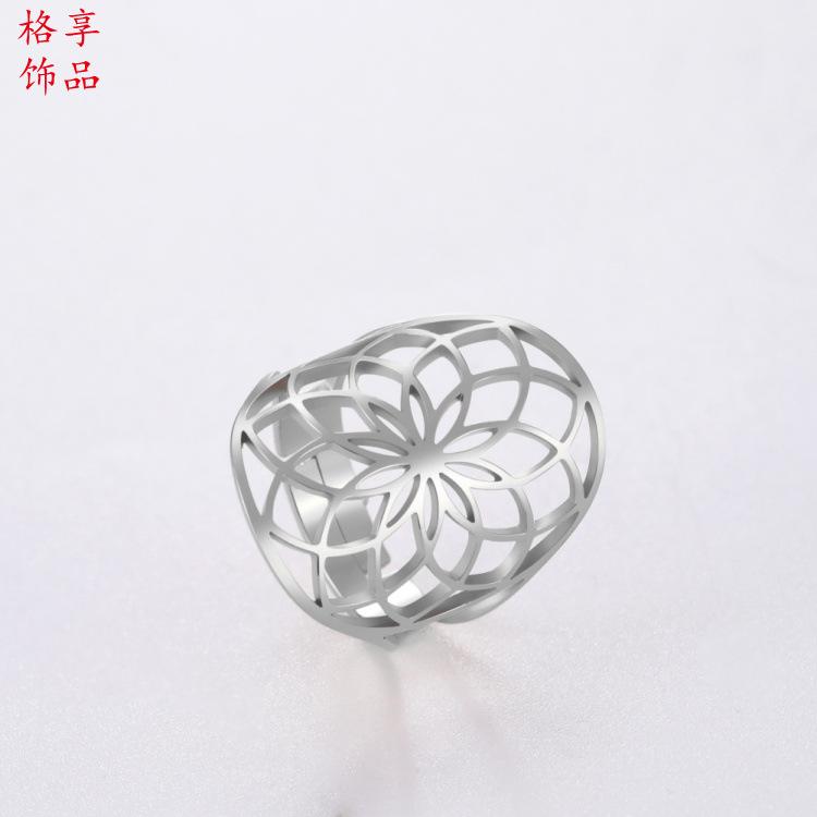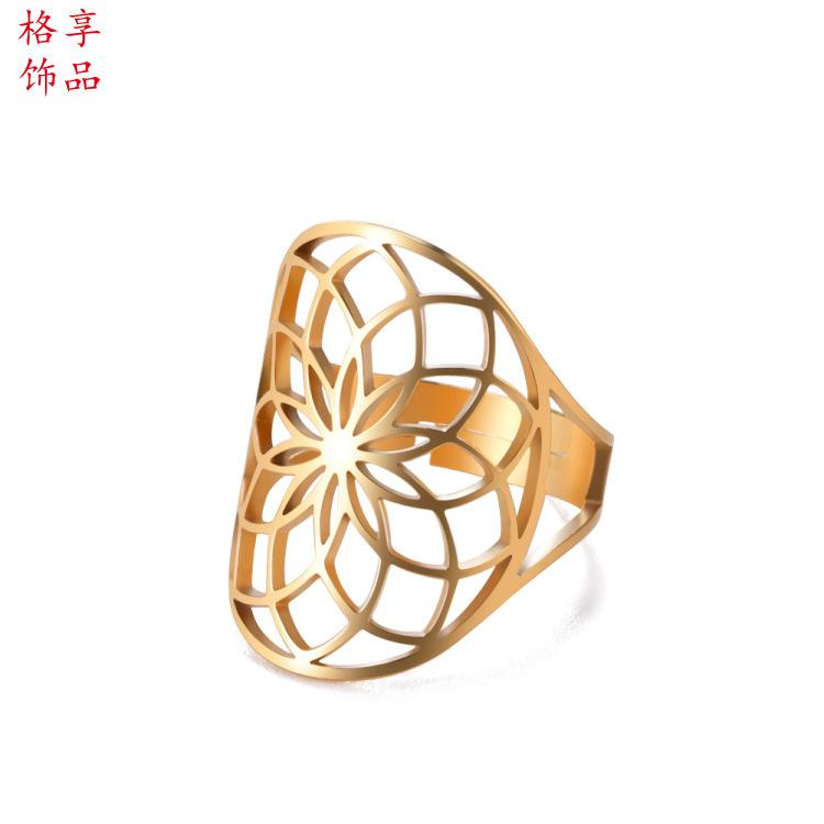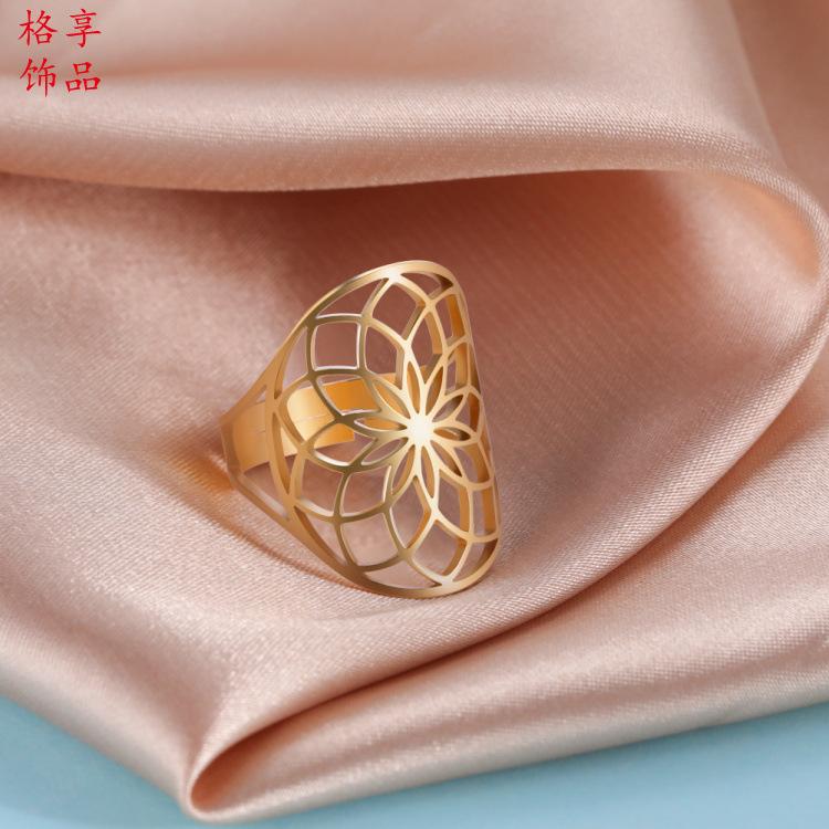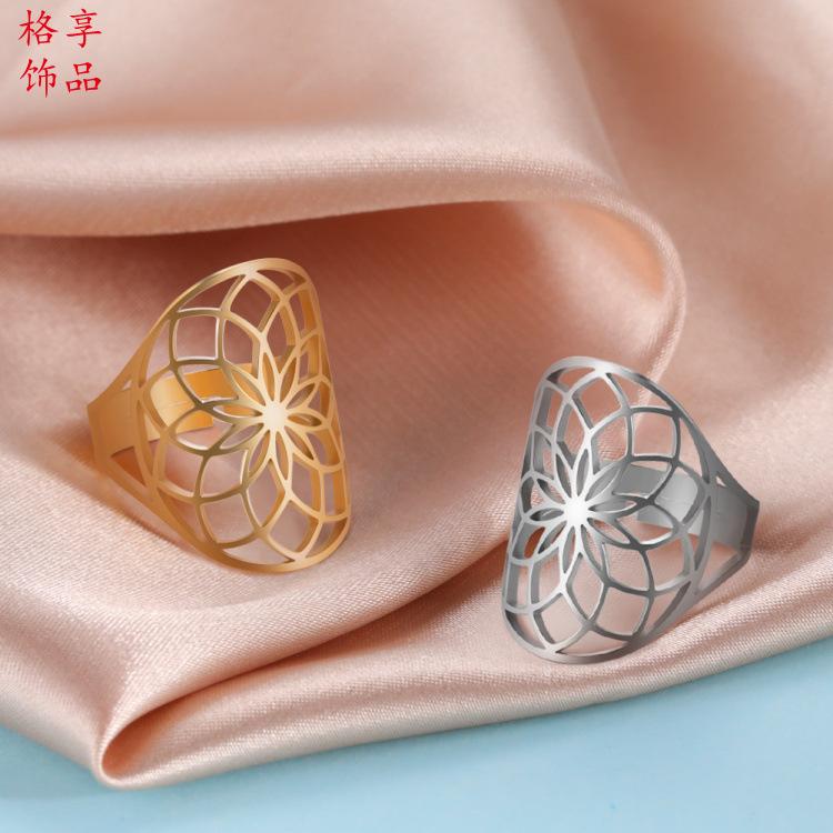 Anillo de apertura ovalada de círculo grande con flor hueca de acero inoxidable, joyería vintage de moda europea y americana, regalo de vacaciones