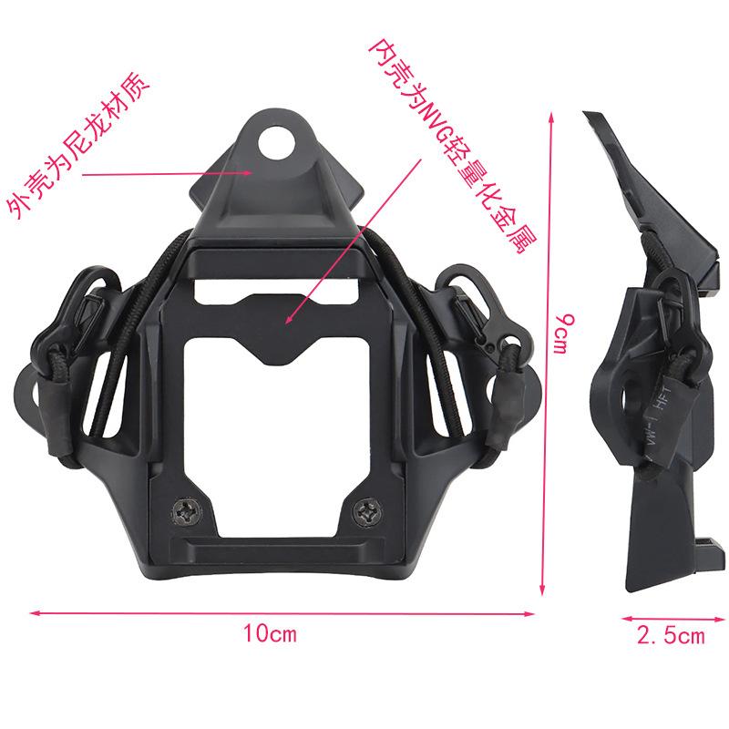 Características: Fabricado en nailon y metal ligero, duradero y práctico. Ligero y portátil, fácil de transportar. Compatible con cascos de combate FAST y cámaras. Incluye tornillos para fijar la base al casco. El soporte para casco es muy fácil de instalar.