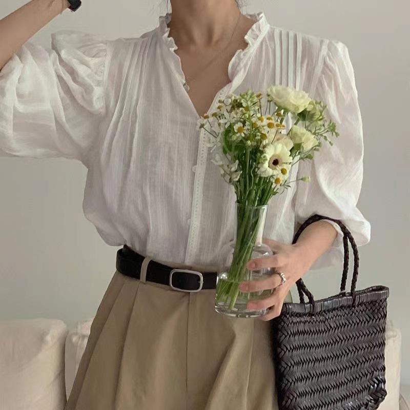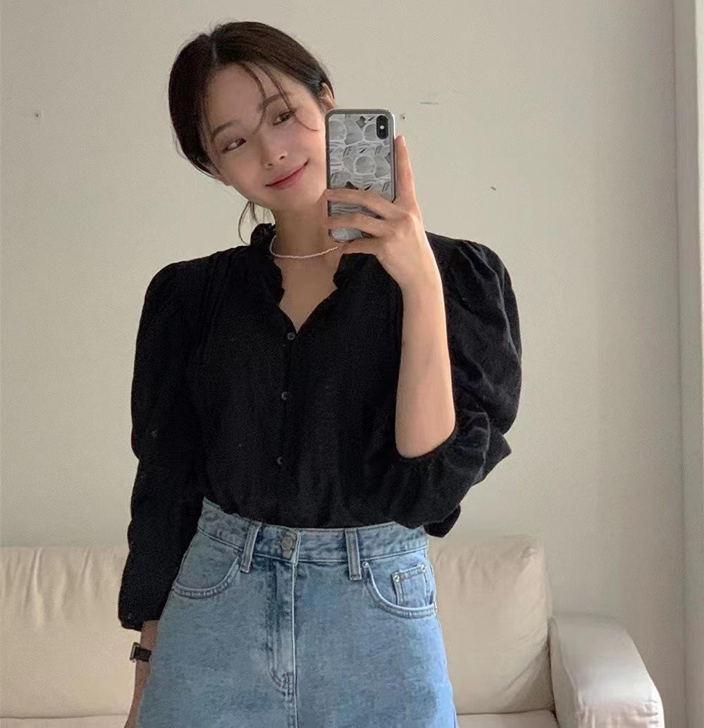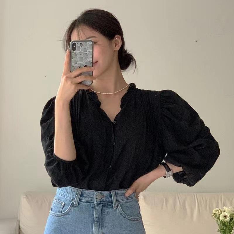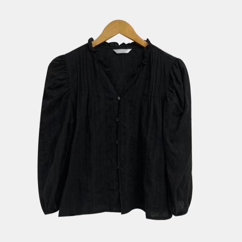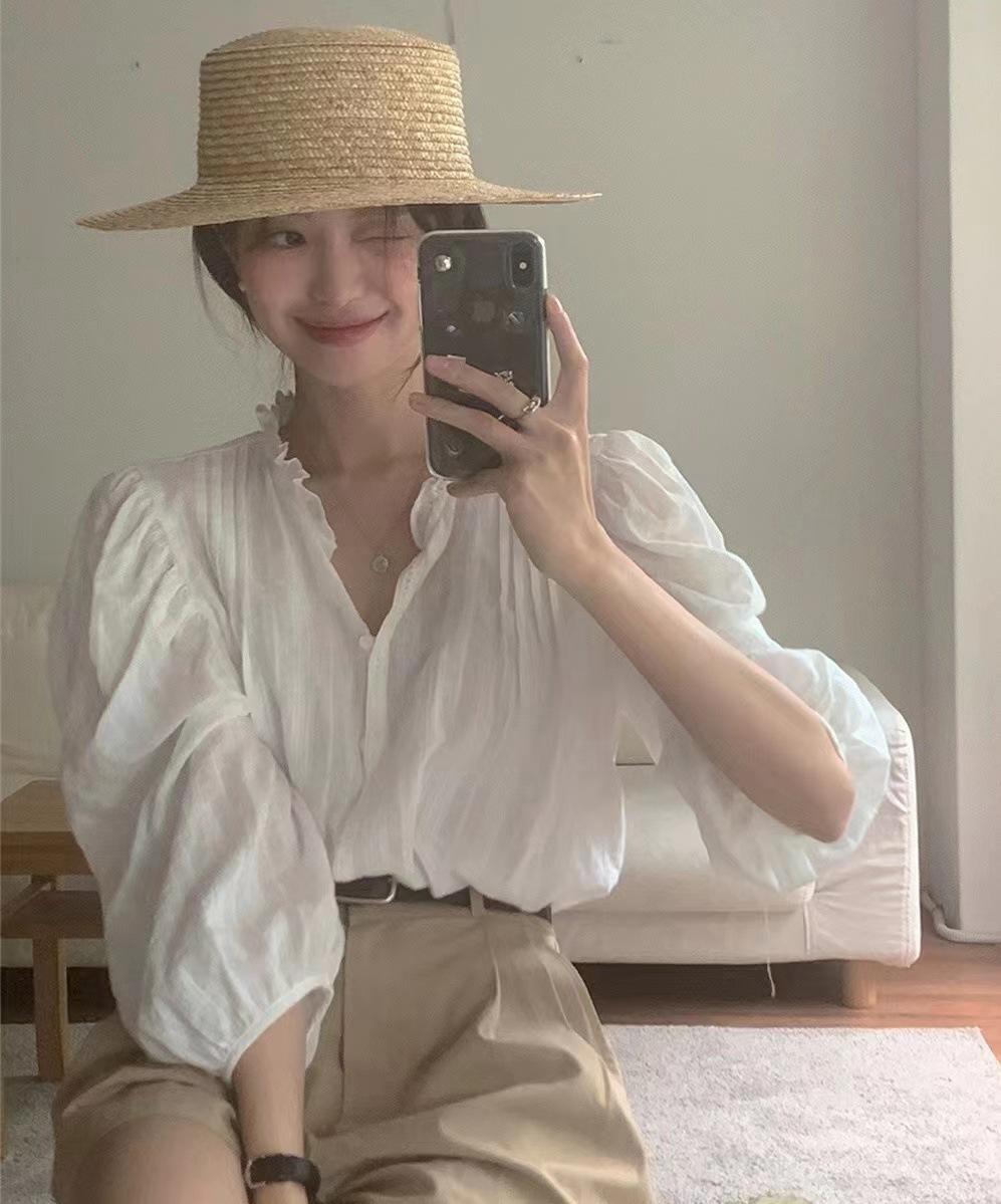 Versión Coreana Venta al por Mayor Estilo Sal Nuevo Moda Estilo Nicho Dulce Cuello en V Suelto Manga Larga Camisa Top para Mujer