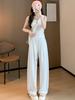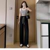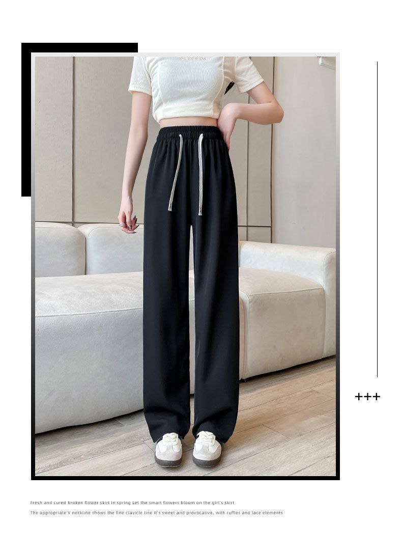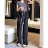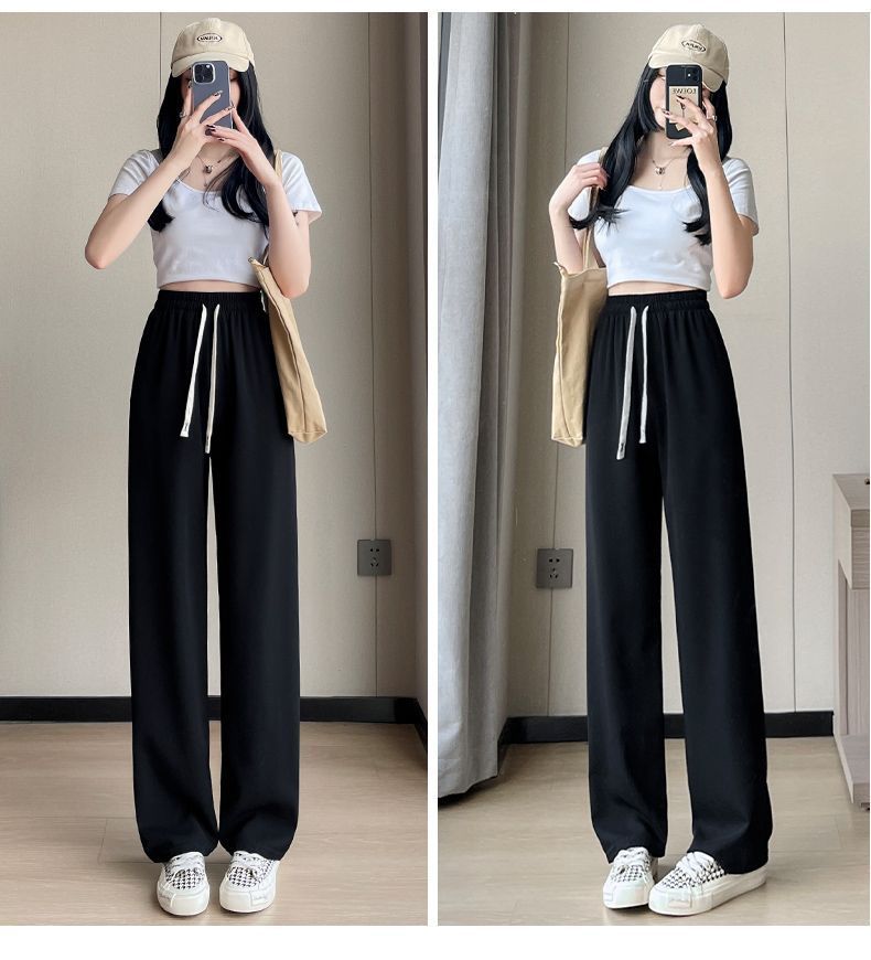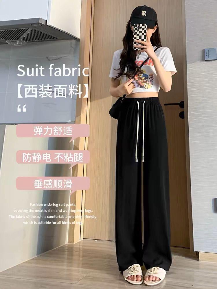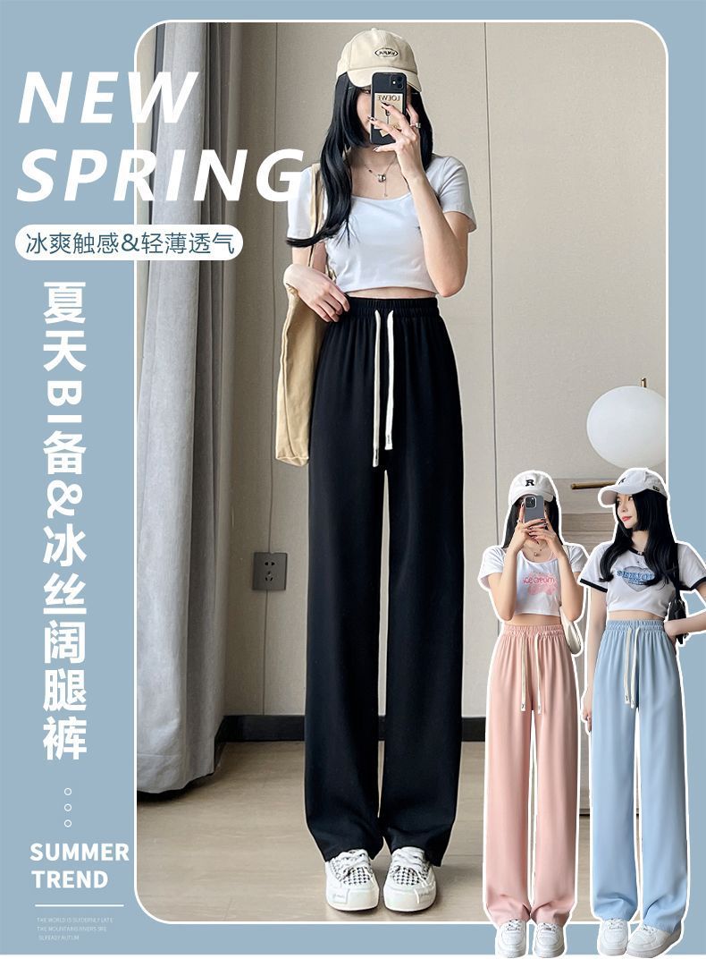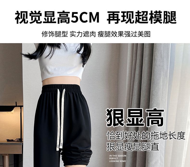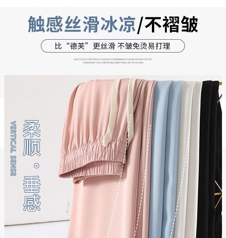 Pantalones de Pierna Ancha de Seda Helada para Mujer Verano Delgados 2024 Nuevo Pierna Recta Holgados Casuales Cortos Frescos Pantalones Sacudibles