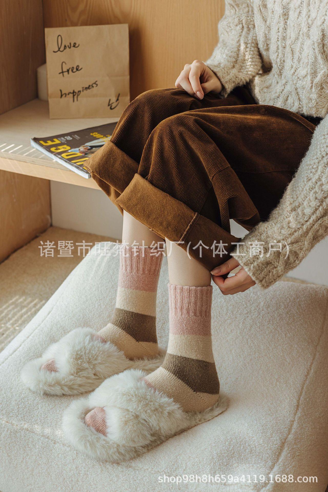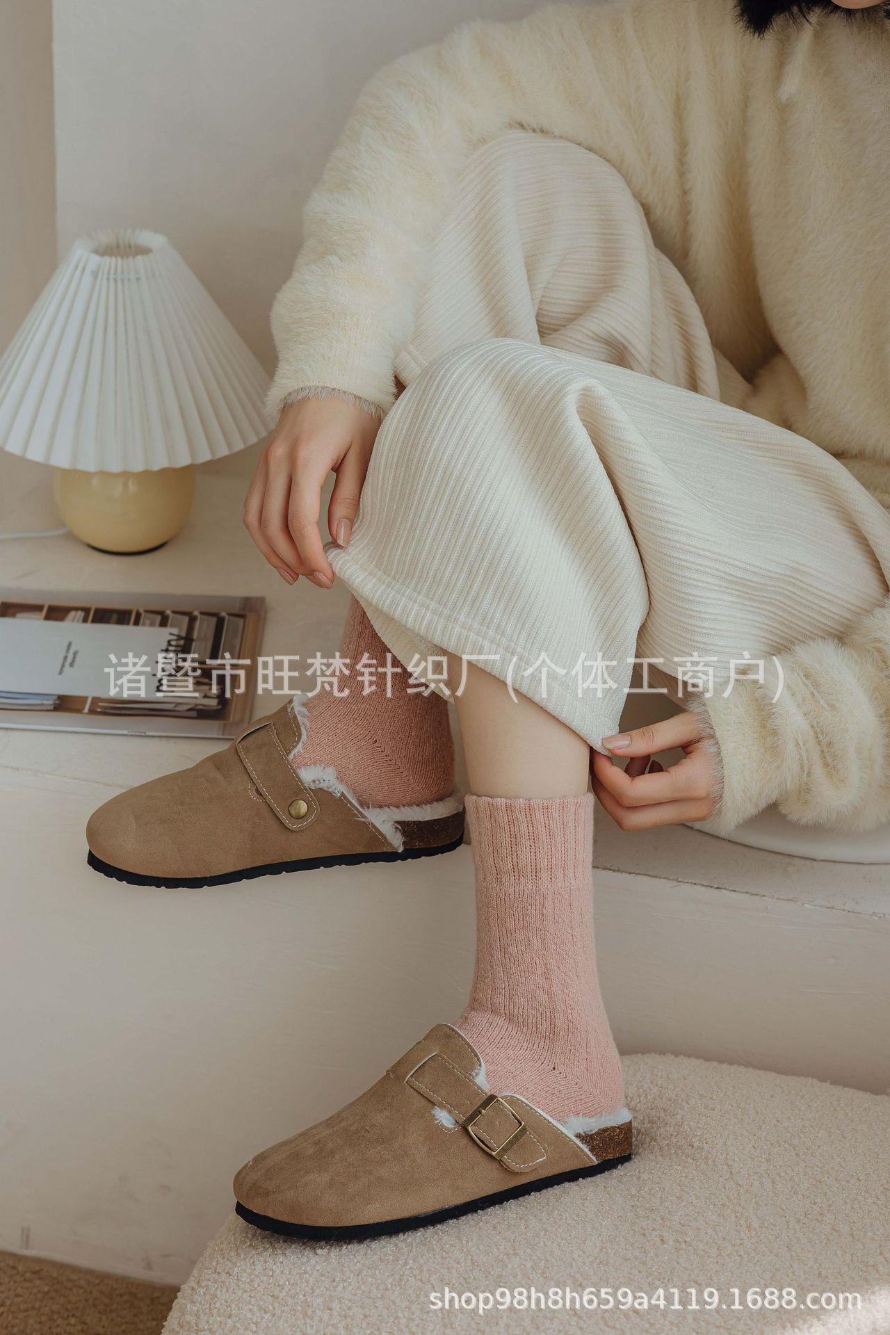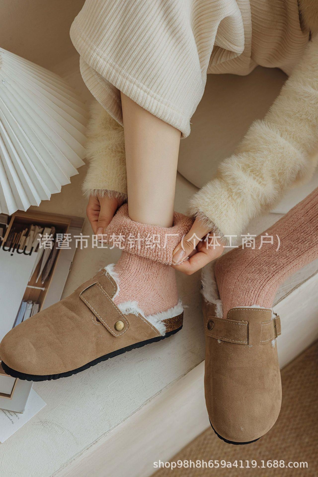 Calcetines Gruesos de Rizo de Otoño e Invierno para Mujer, Calcetines Largos de Tubo Alto Gruesos con Forro Polar de Invierno de Color Sólido a la Moda, Calcetines hasta la Media Pantorrilla