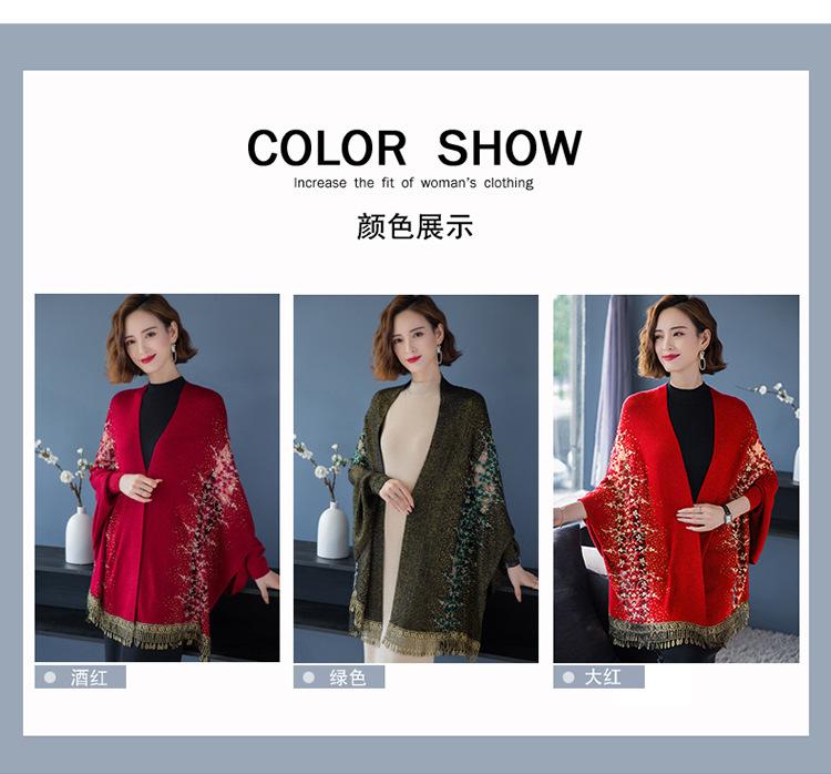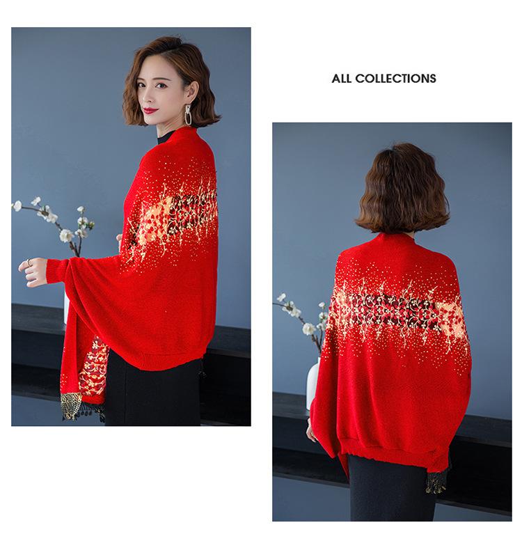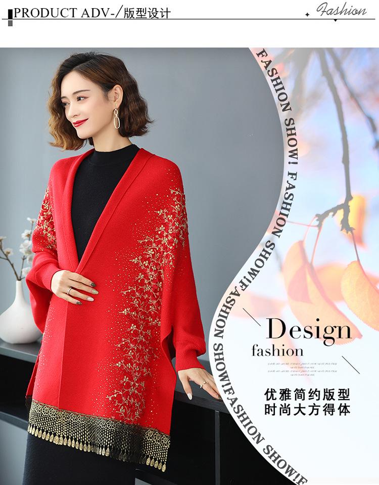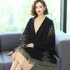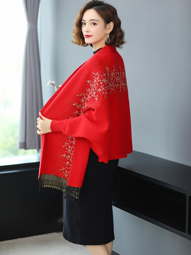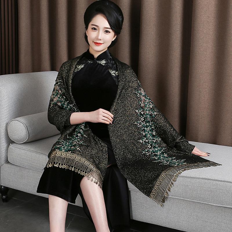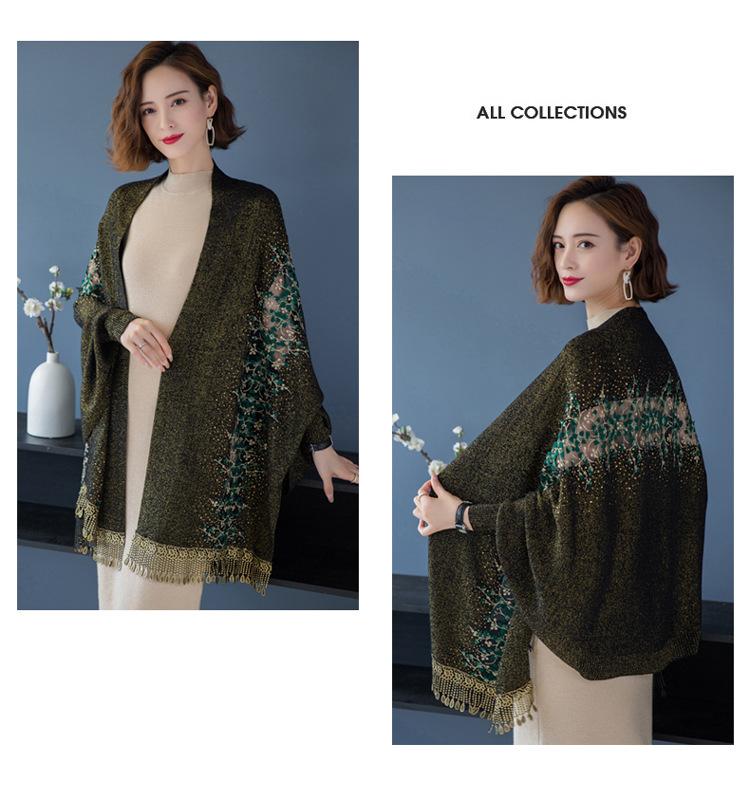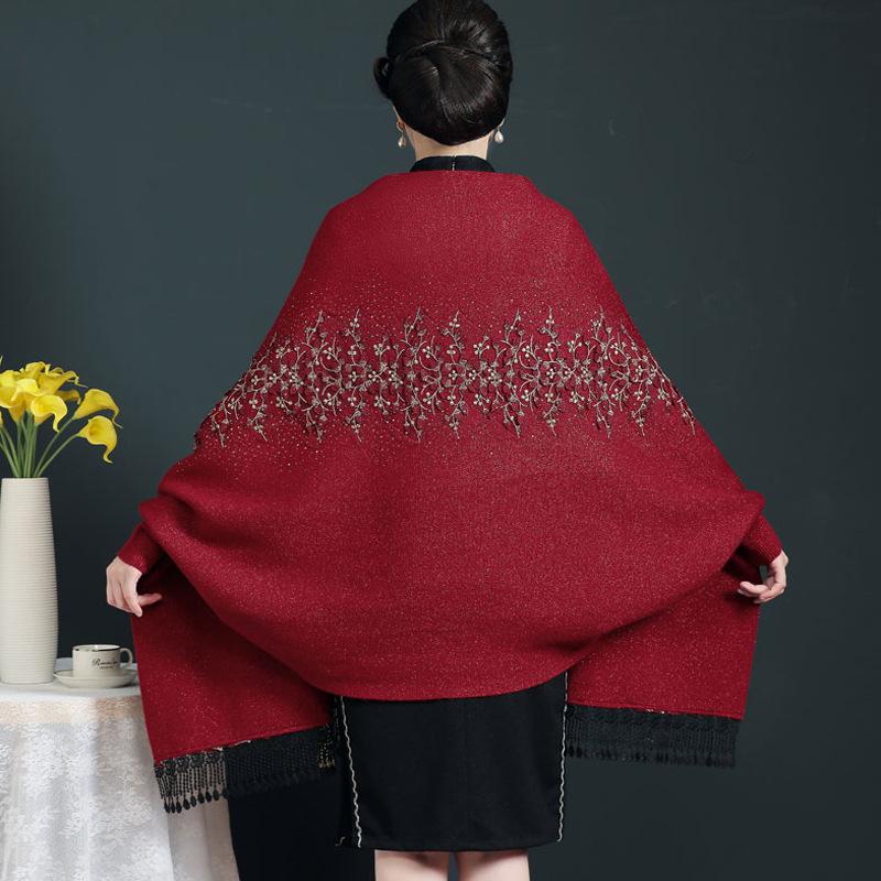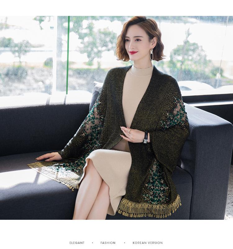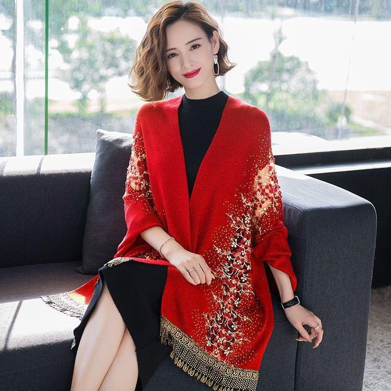 Bufanda de imitación de cachemira para mujer, chal tipo cheongsam con diamantes de imitación, estilo europeo y americano, con borlas huecas y capas exteriores gruesas.