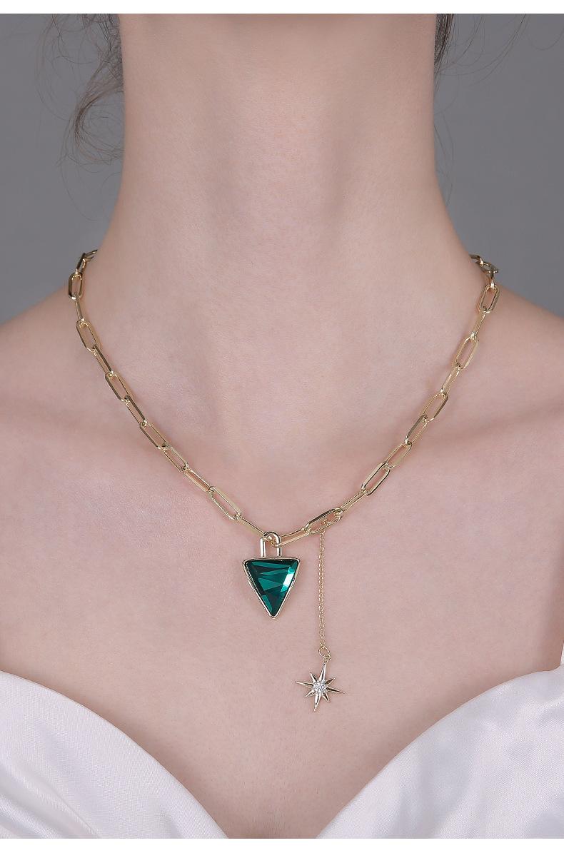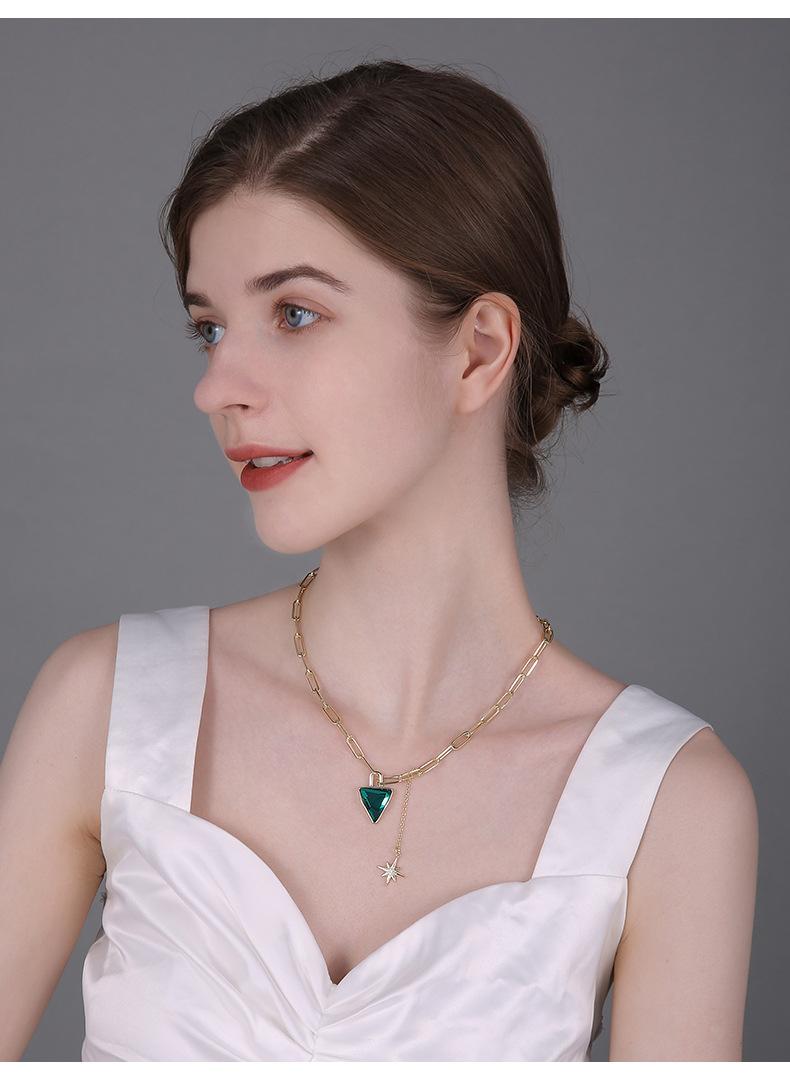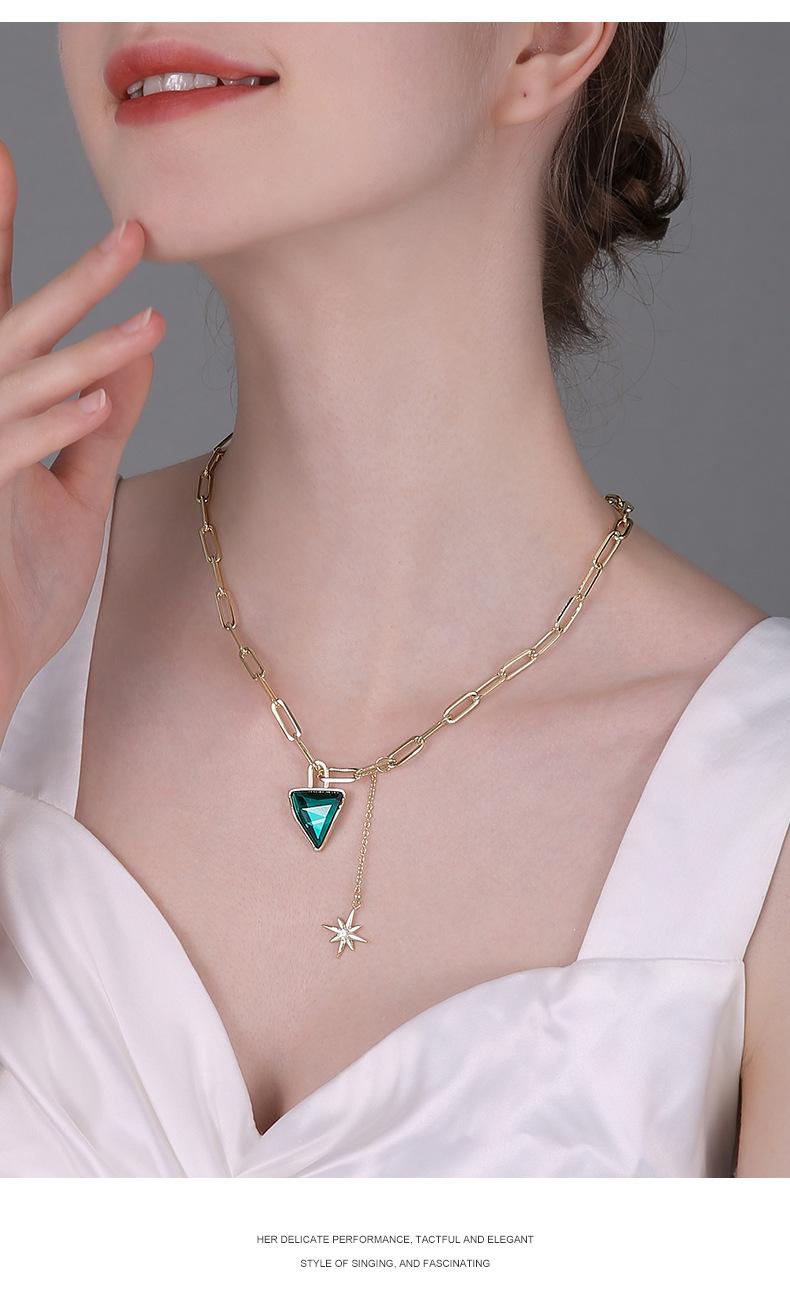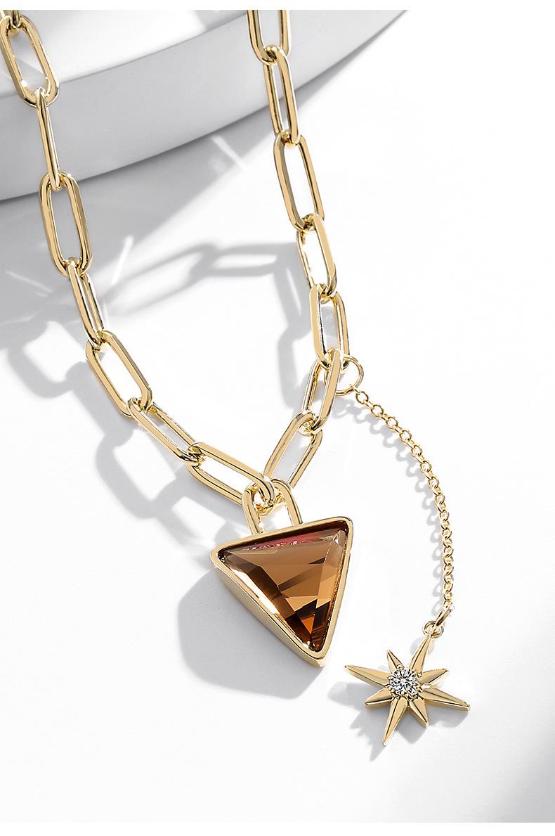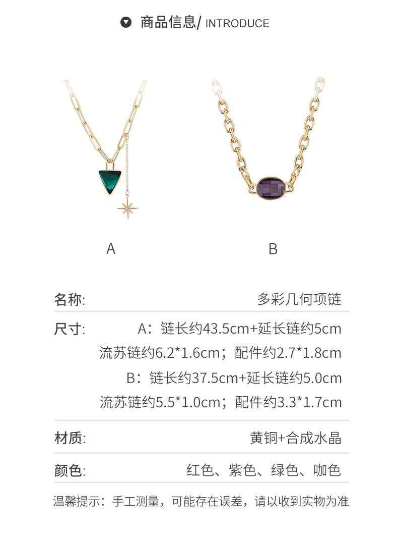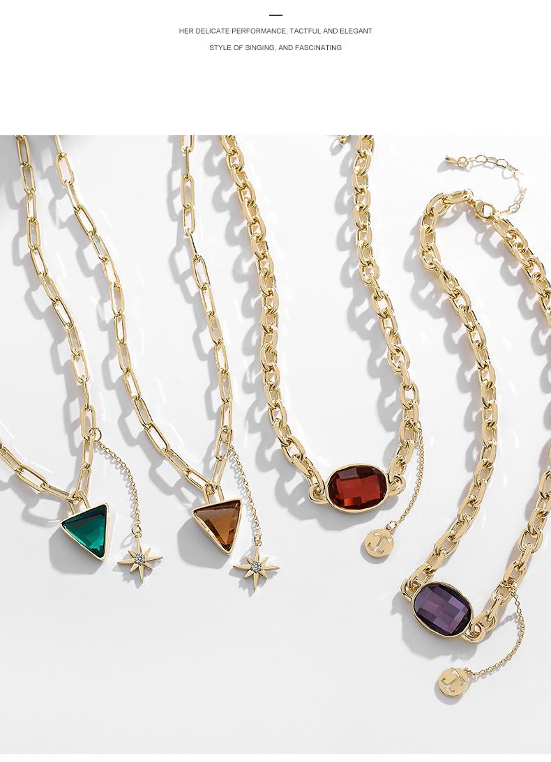 X1629 Champagne Gold Purple Zirconium Necklace, X1630 Champagne Golden Triangle Curry Necklace