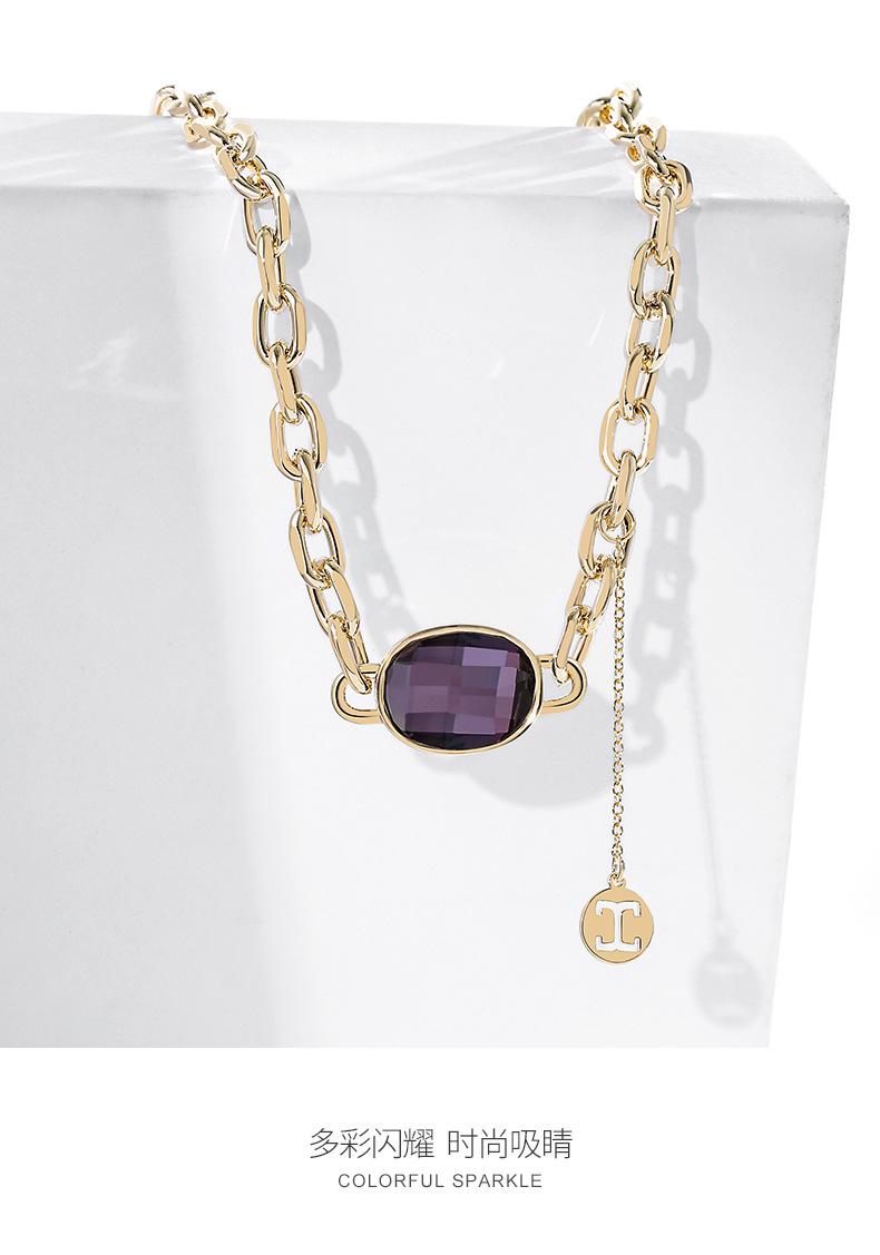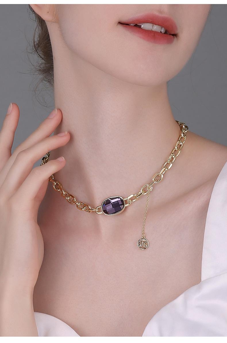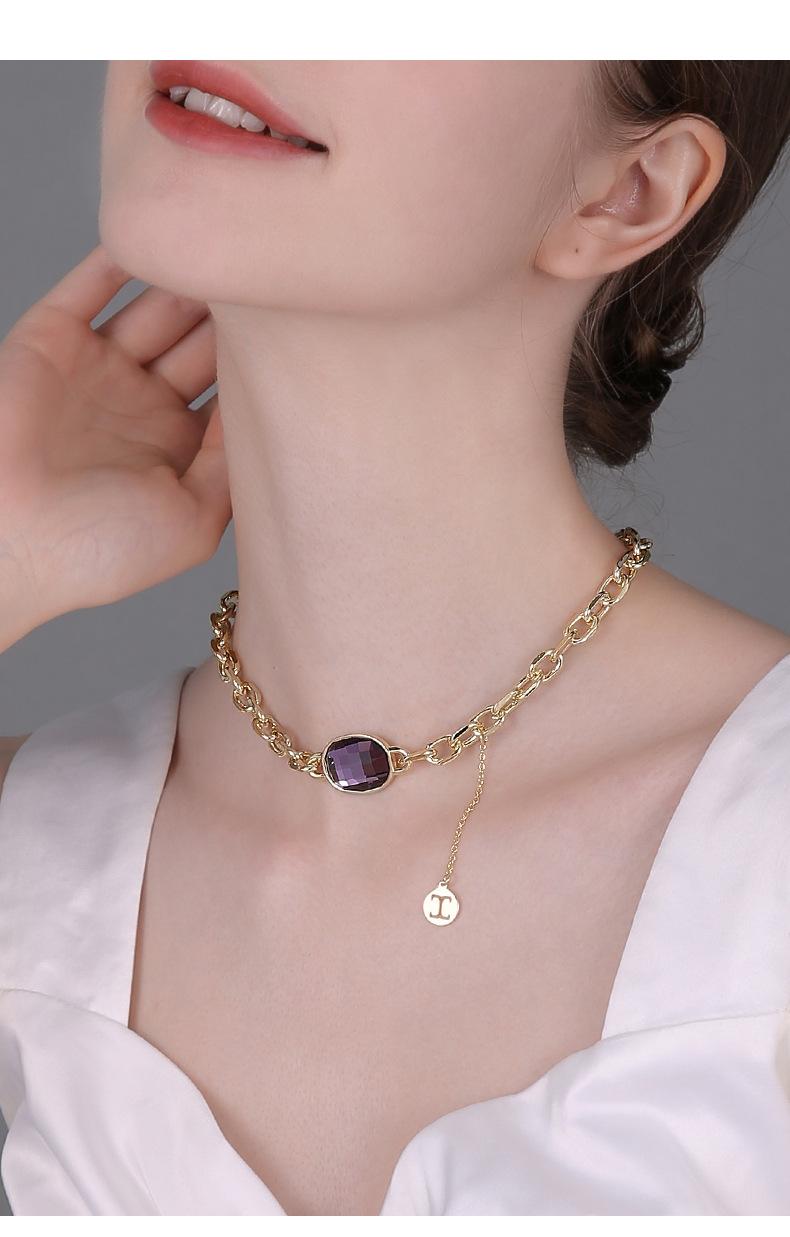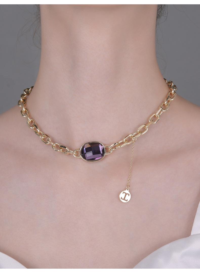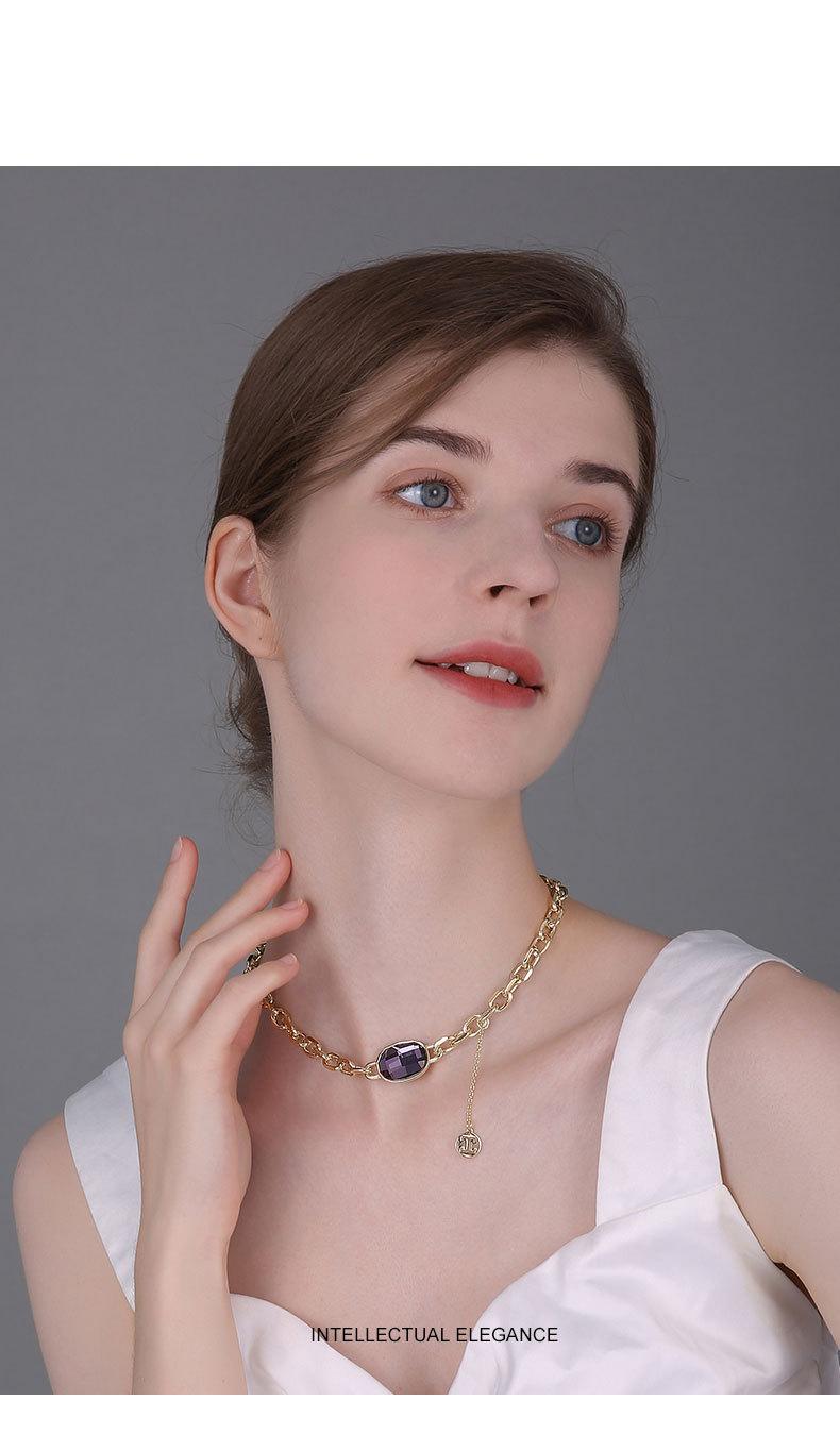 Collar de Moda de Amatista Elegante Cadena Geométrica para Clavícula 2024 Nuevo Trendy Celebridad de Internet Estilo Chino Retro Collar Corto con Colgante