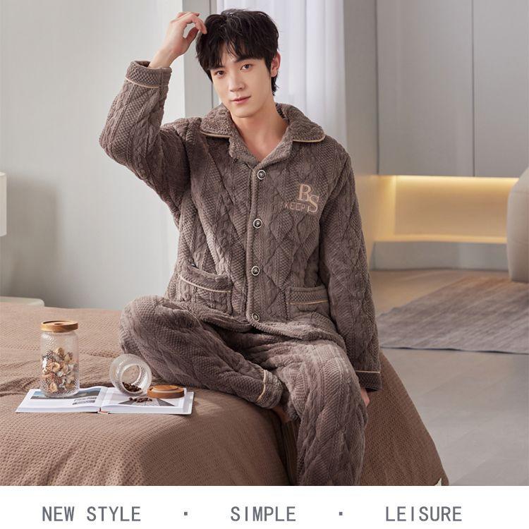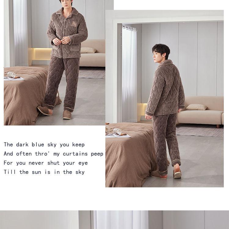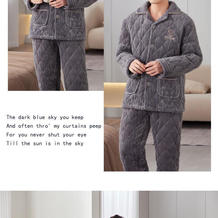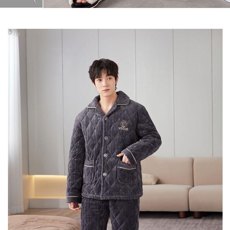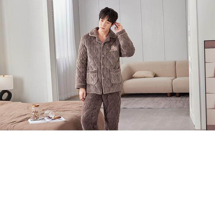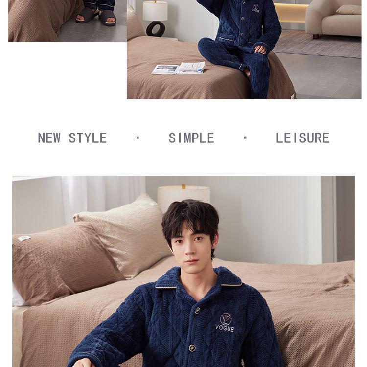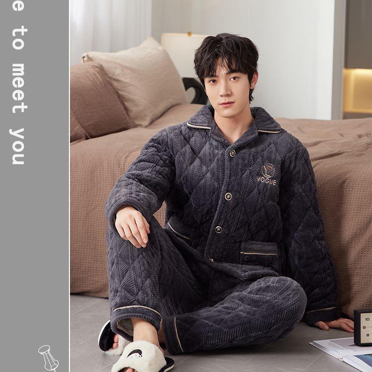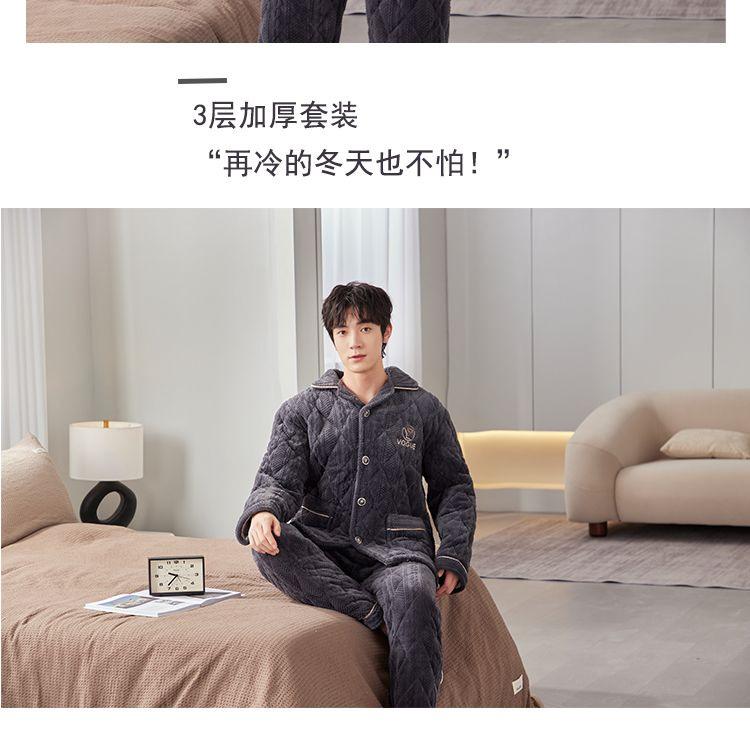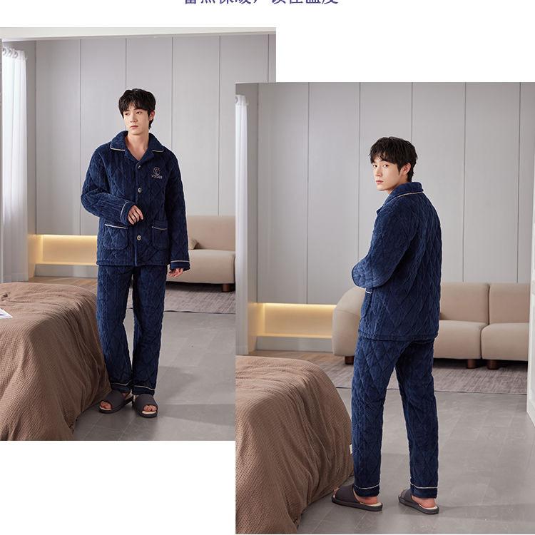 Pijama de invierno para hombre de tres capas, grueso, extra grueso, acolchado, forro polar coral, franela, ropa de hogar, otoño e invierno
