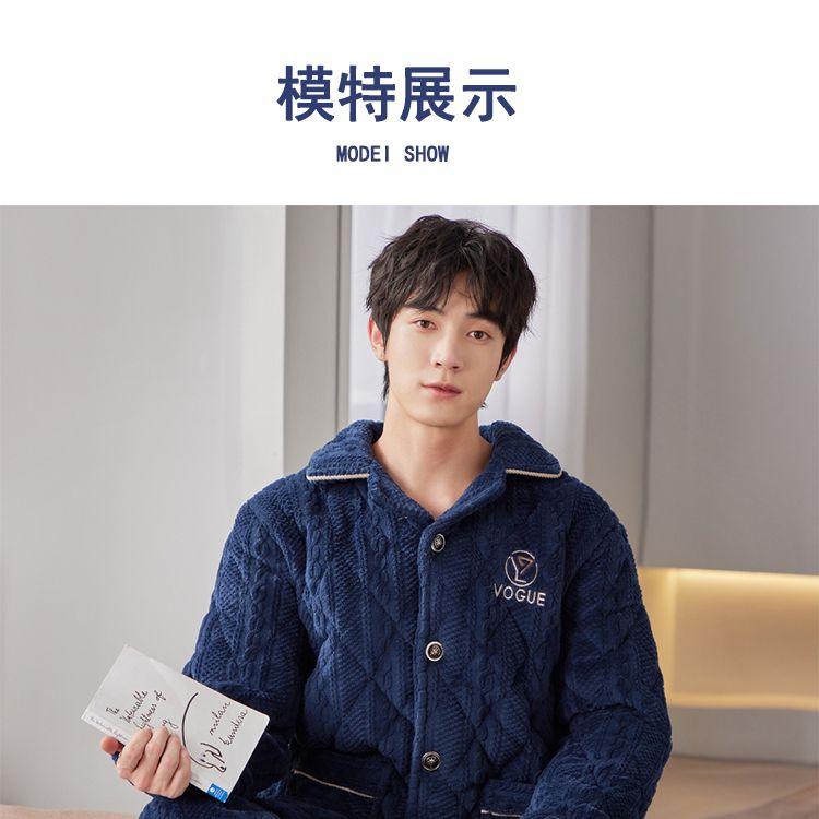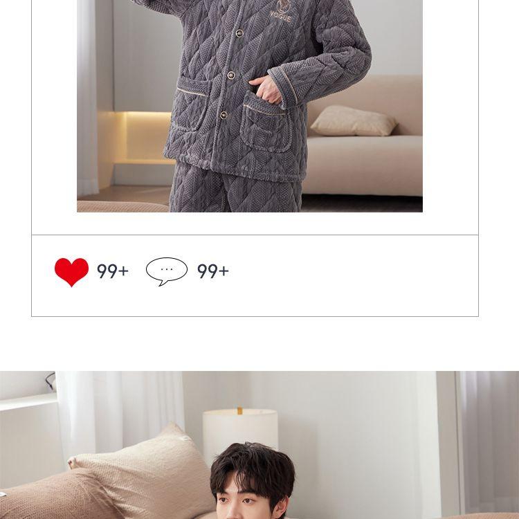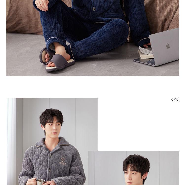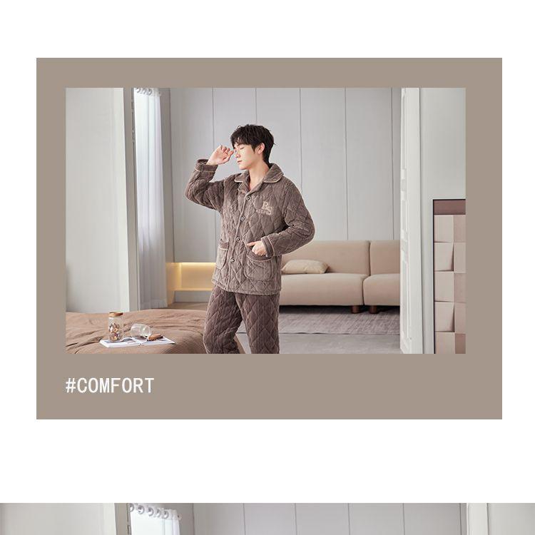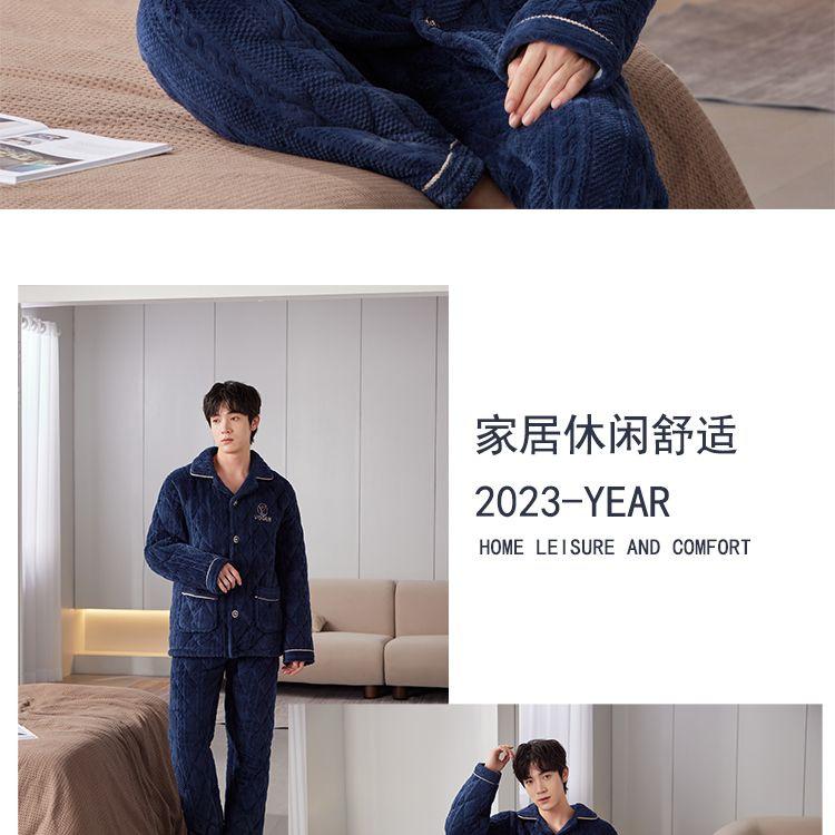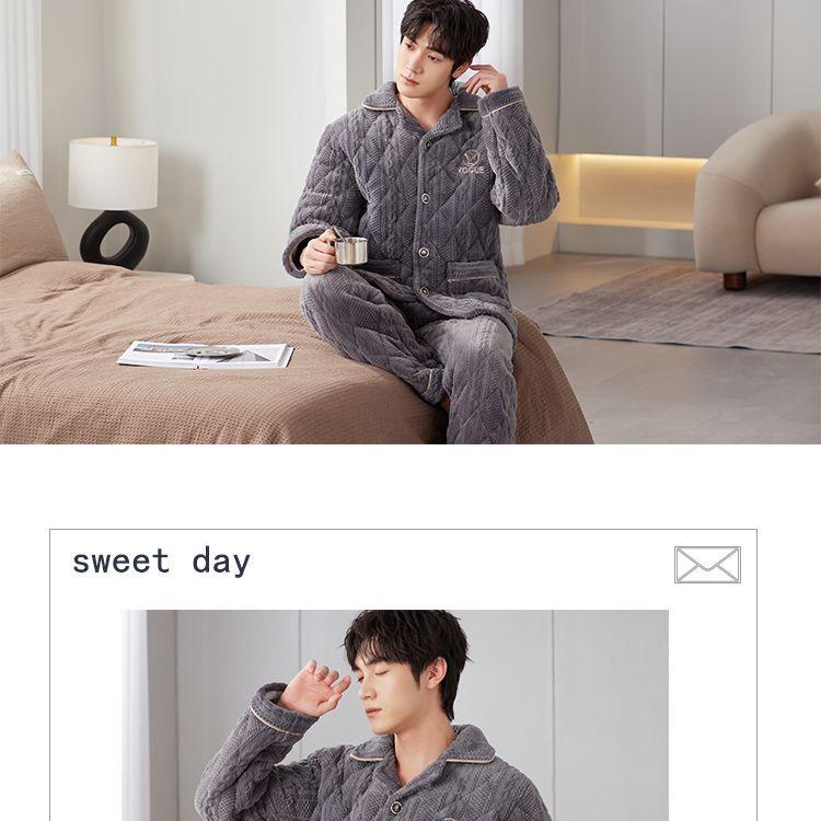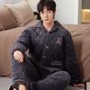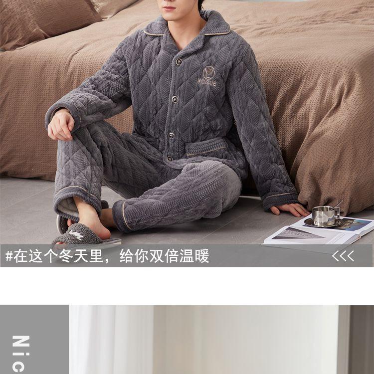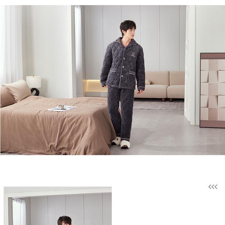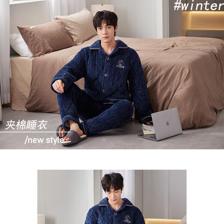 Pijama de invierno para hombre de tres capas, grueso, extra grueso, acolchado, forro polar coral, franela, ropa de hogar, otoño e invierno