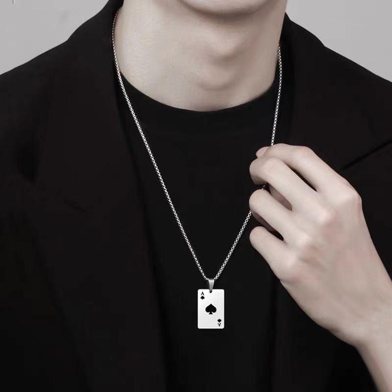 Collar de póker de melocotón rojo para hombre, cadena de suéter con personalidad de hip hop simple, colgante de acero de titanio con borde cruzado, accesorios, collar, cadena de clavícula