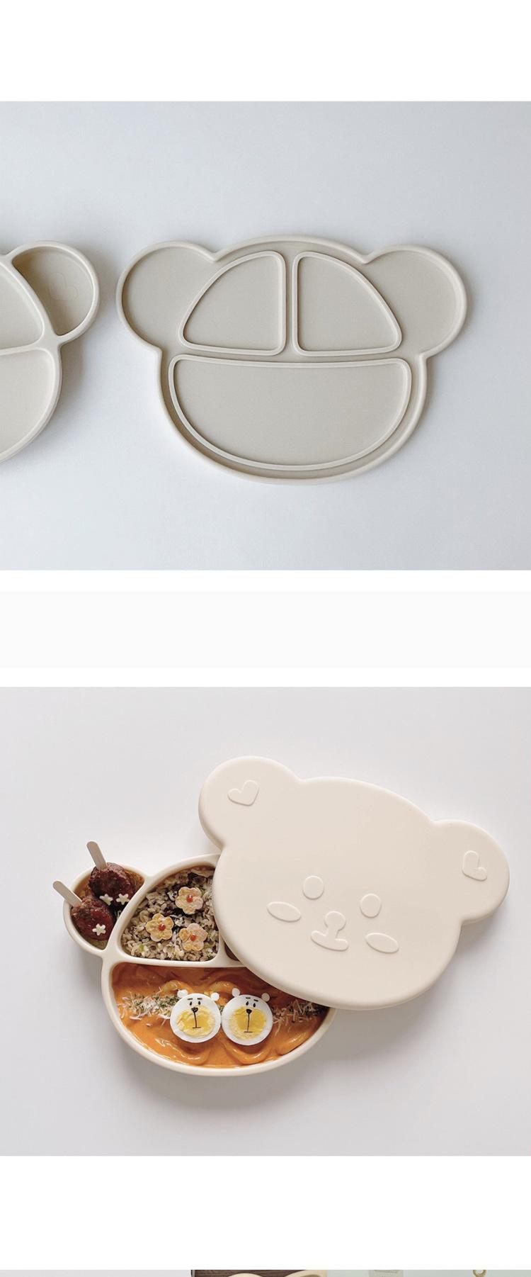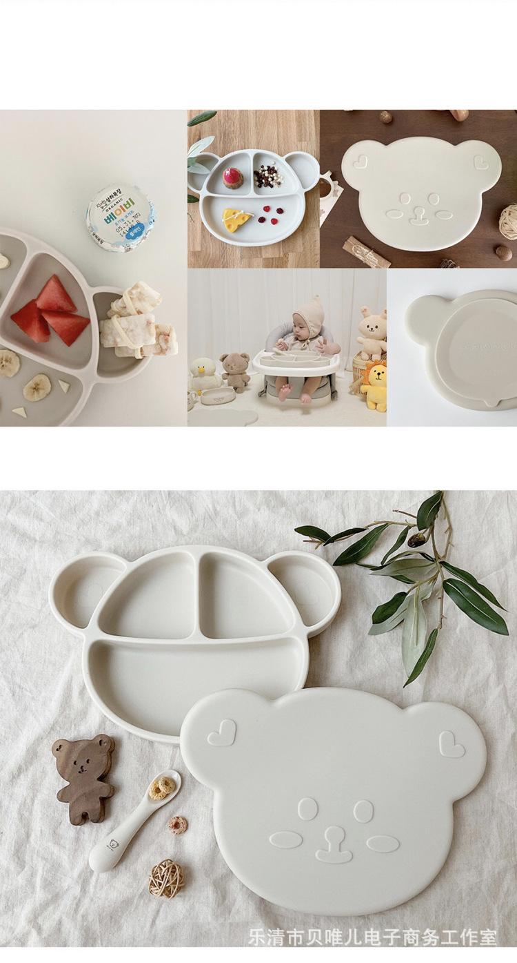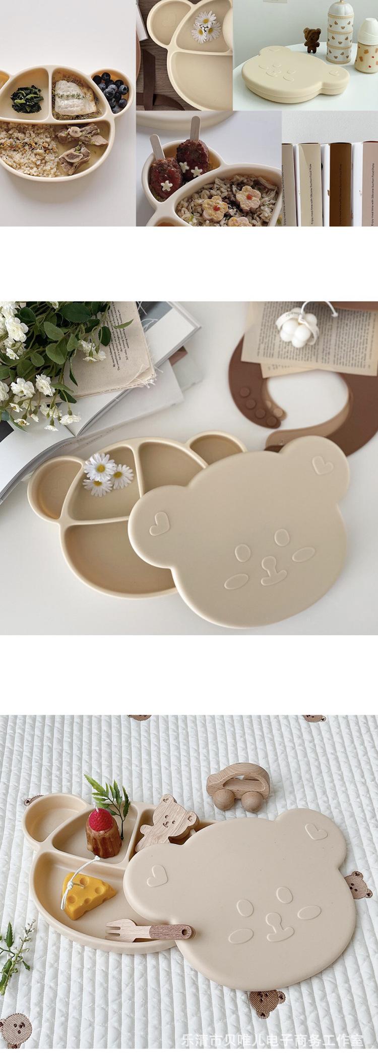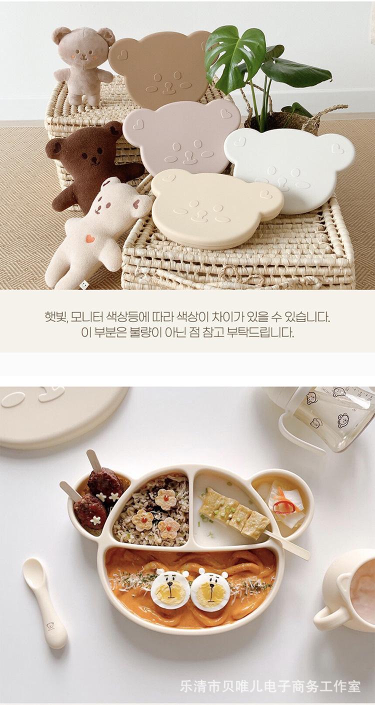 Plato de cena coreano para bebé, de silicona con ventosa, con forma de oso, para aprender a comer con dibujos animados.