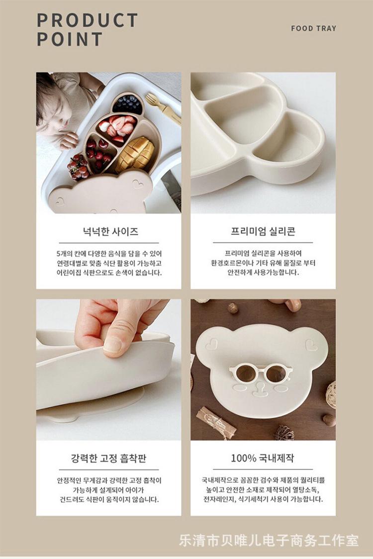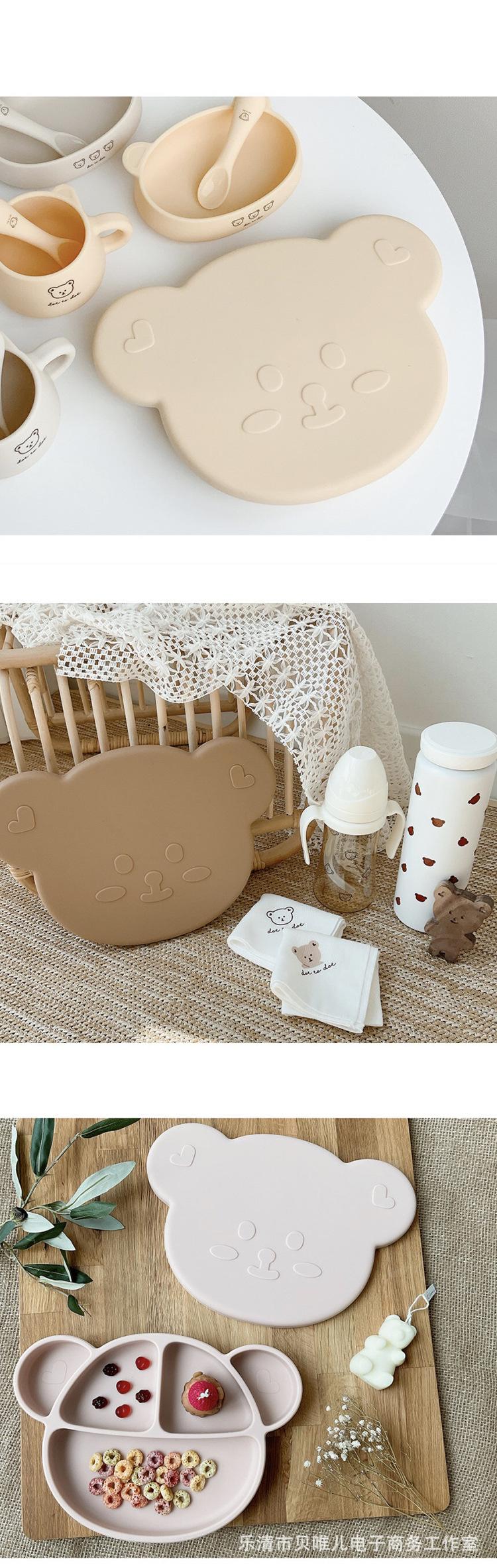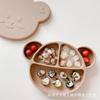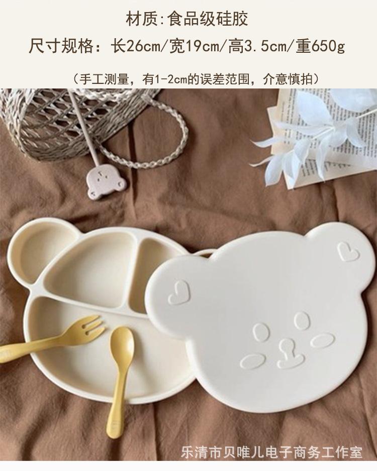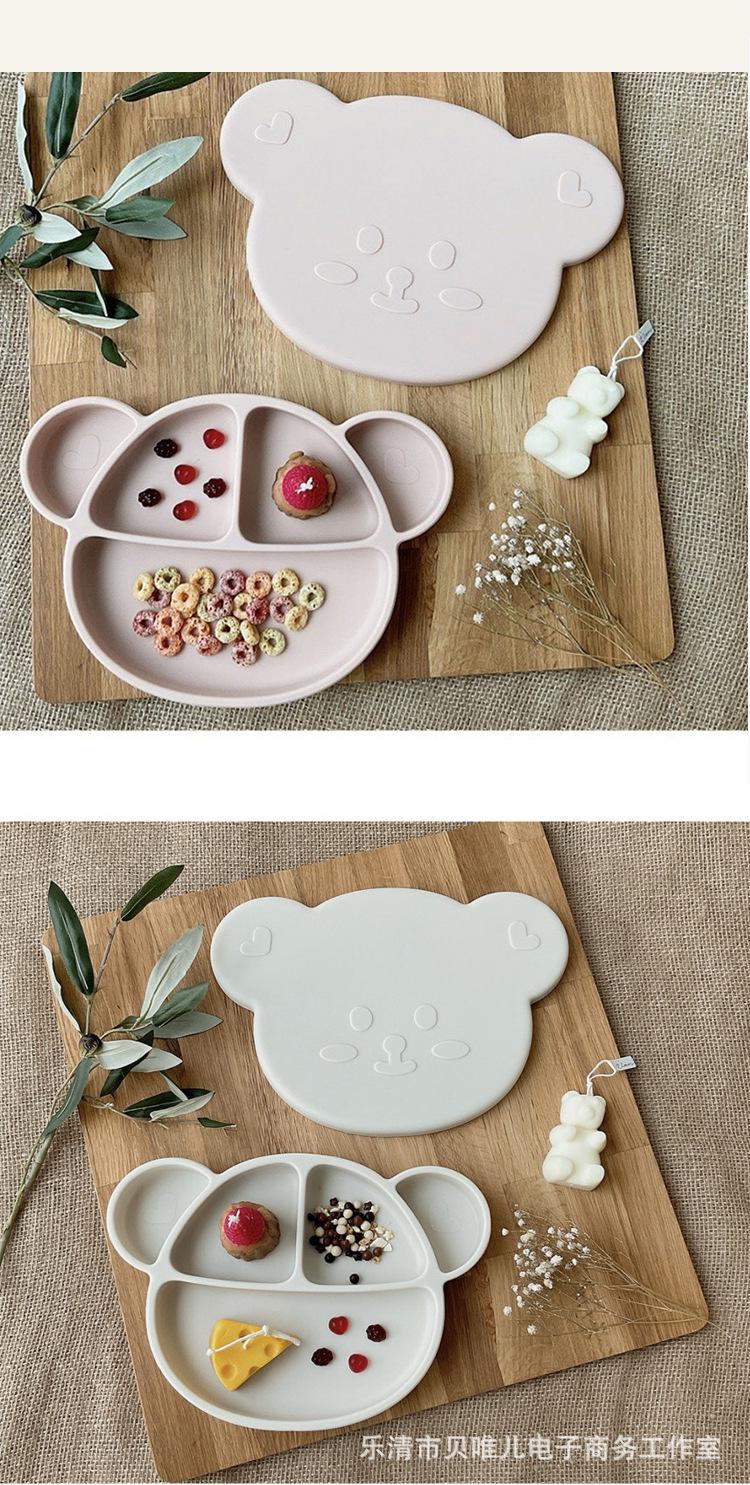 Plato de cena coreano para bebé, de silicona con ventosa, con forma de oso, para aprender a comer con dibujos animados.