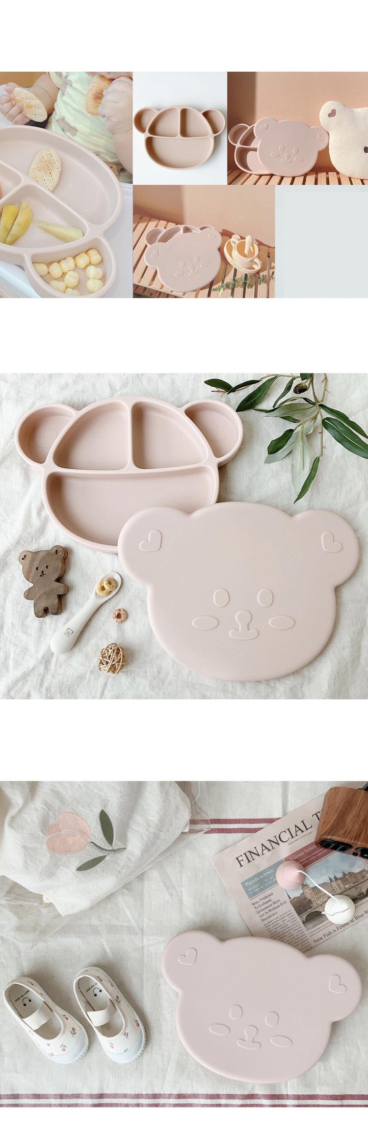Cream Bear Sucker Plate, Cocoa Bear Sucker Plate, Tender pink bear sucker plate, Beige white bear sucker plate