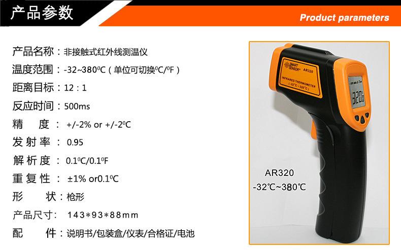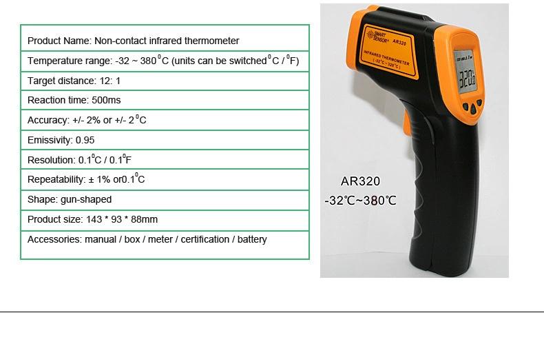 Termómetro láser Xima AR320, termómetro infrarrojo, pistola de medición de temperatura sin contacto, termómetro infrarrojo industrial, comercio exterior al por mayor