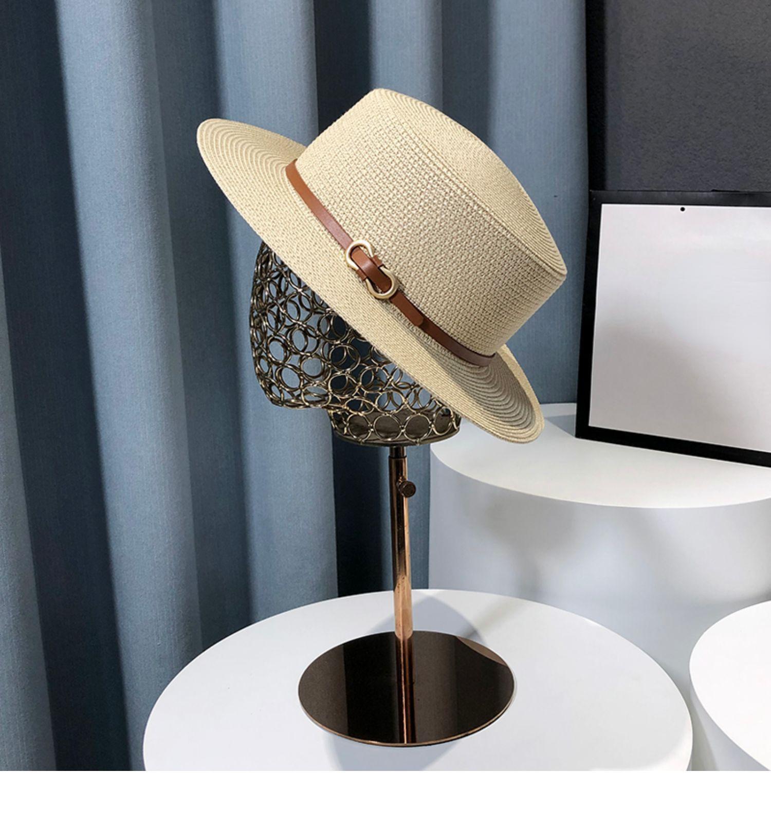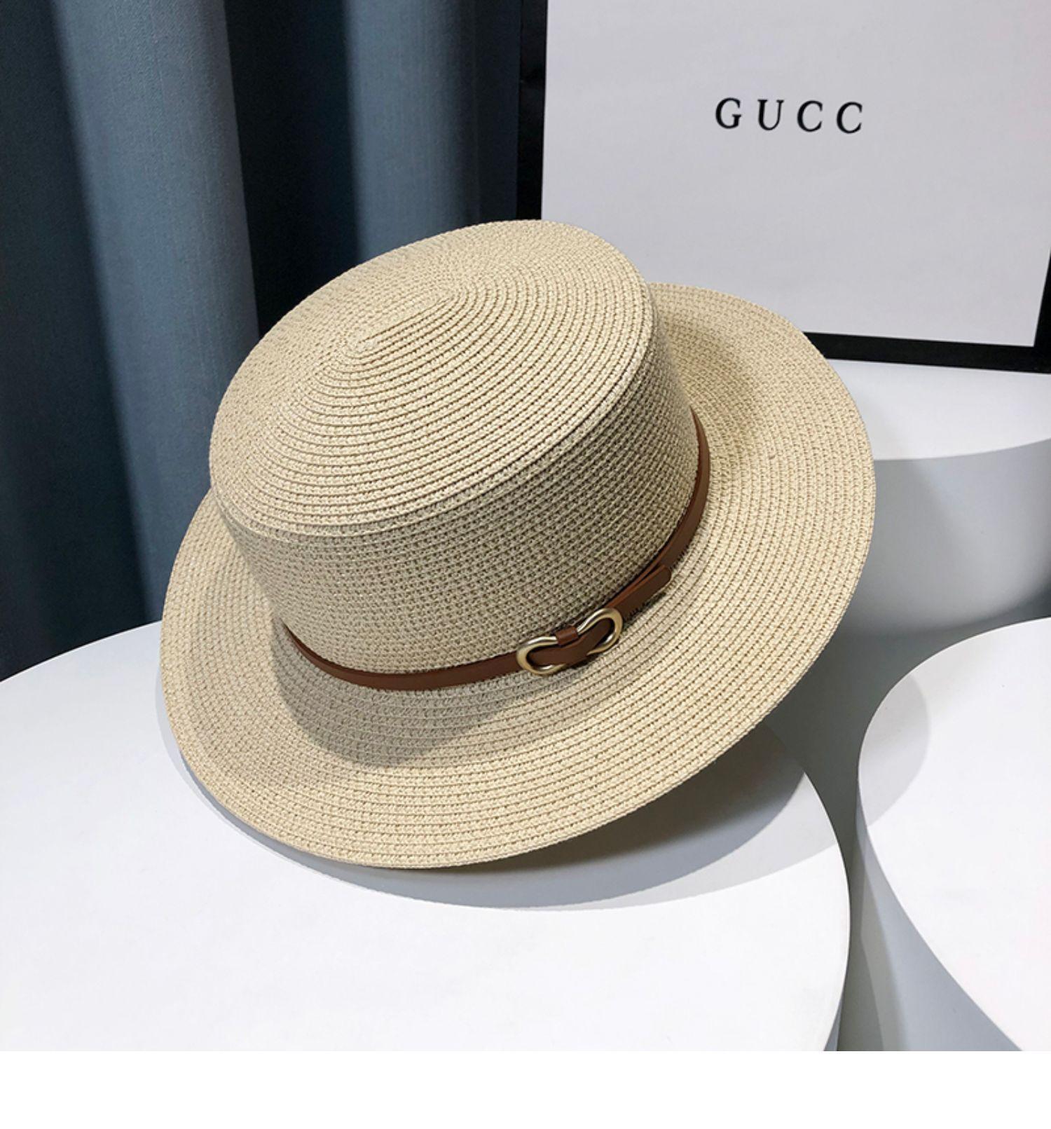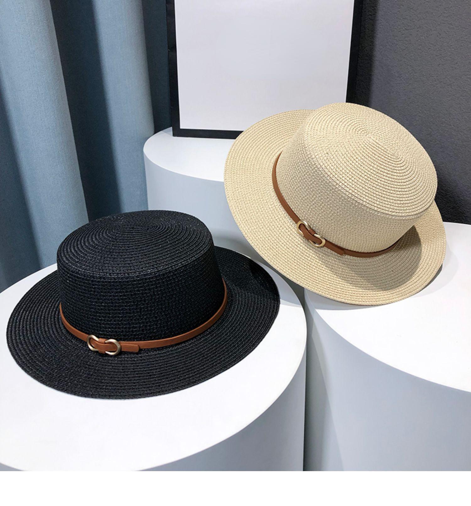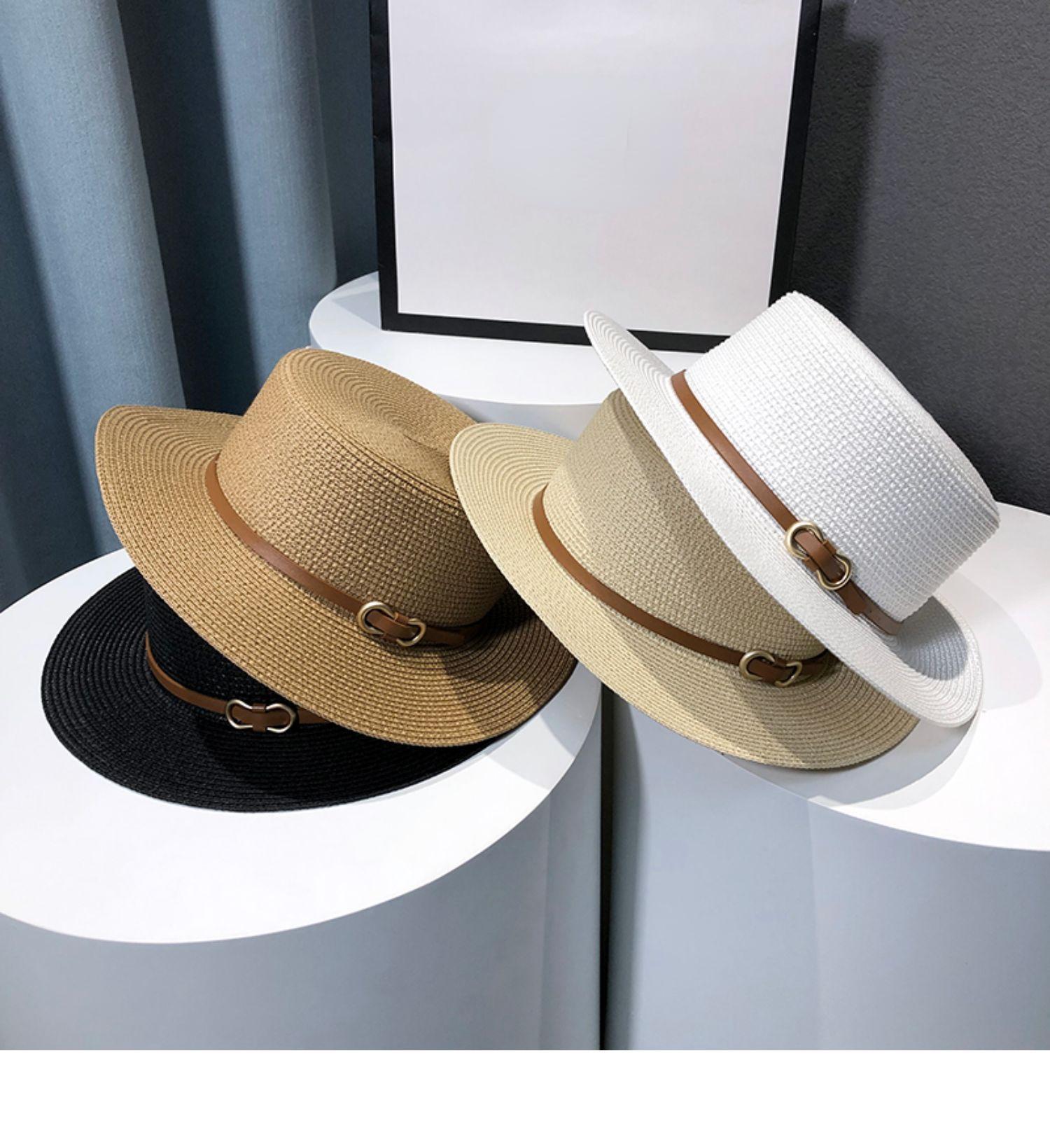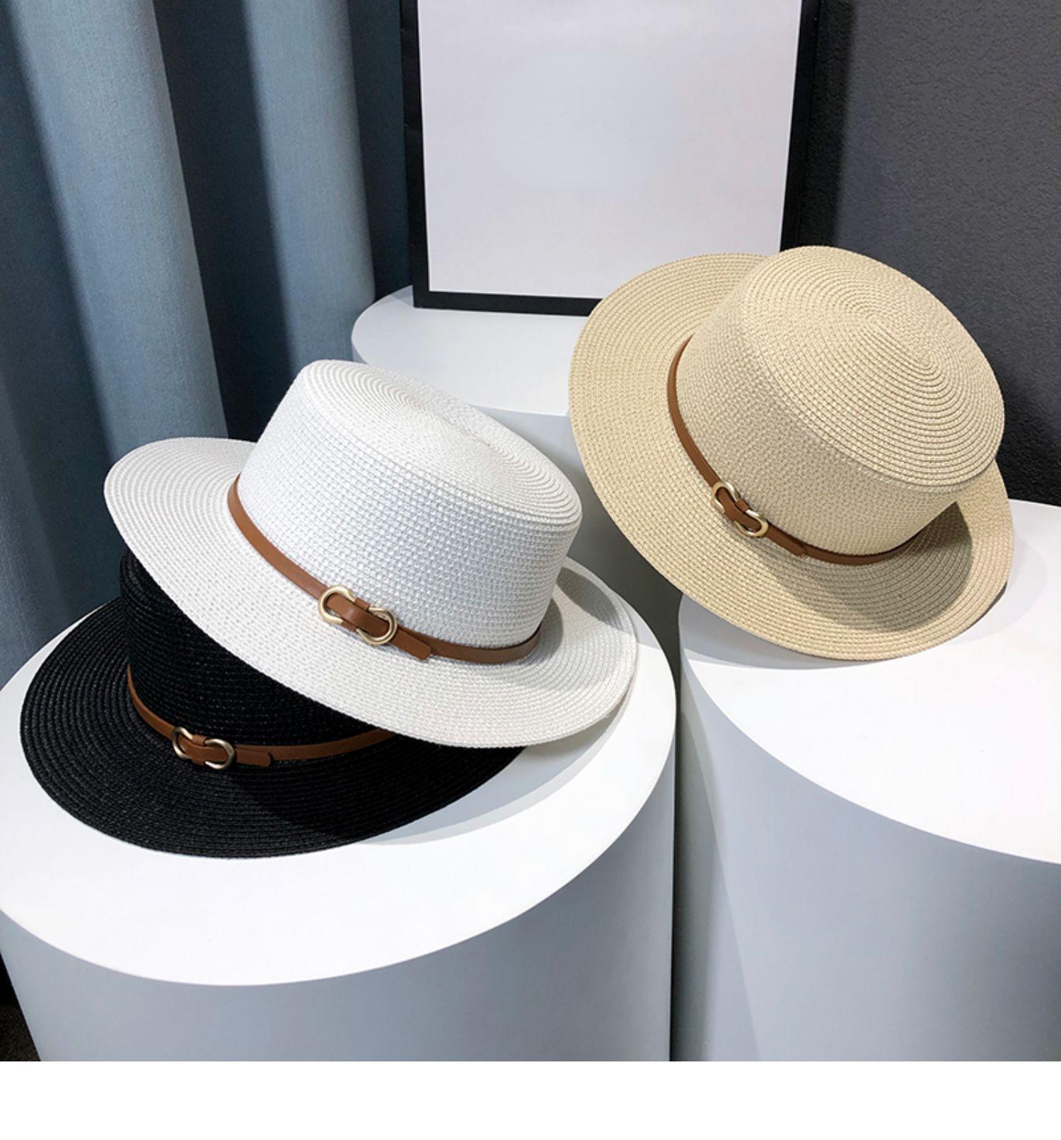 Sombrero de Paja de Copa Plana Estilo Francés para Mujer Sombrilla Verano Tejido de Paja Sombrero de Copa Plana Lateral Vacaciones de Viaje Playa Mar Protector Solar Sombrero de Sol