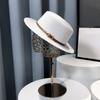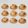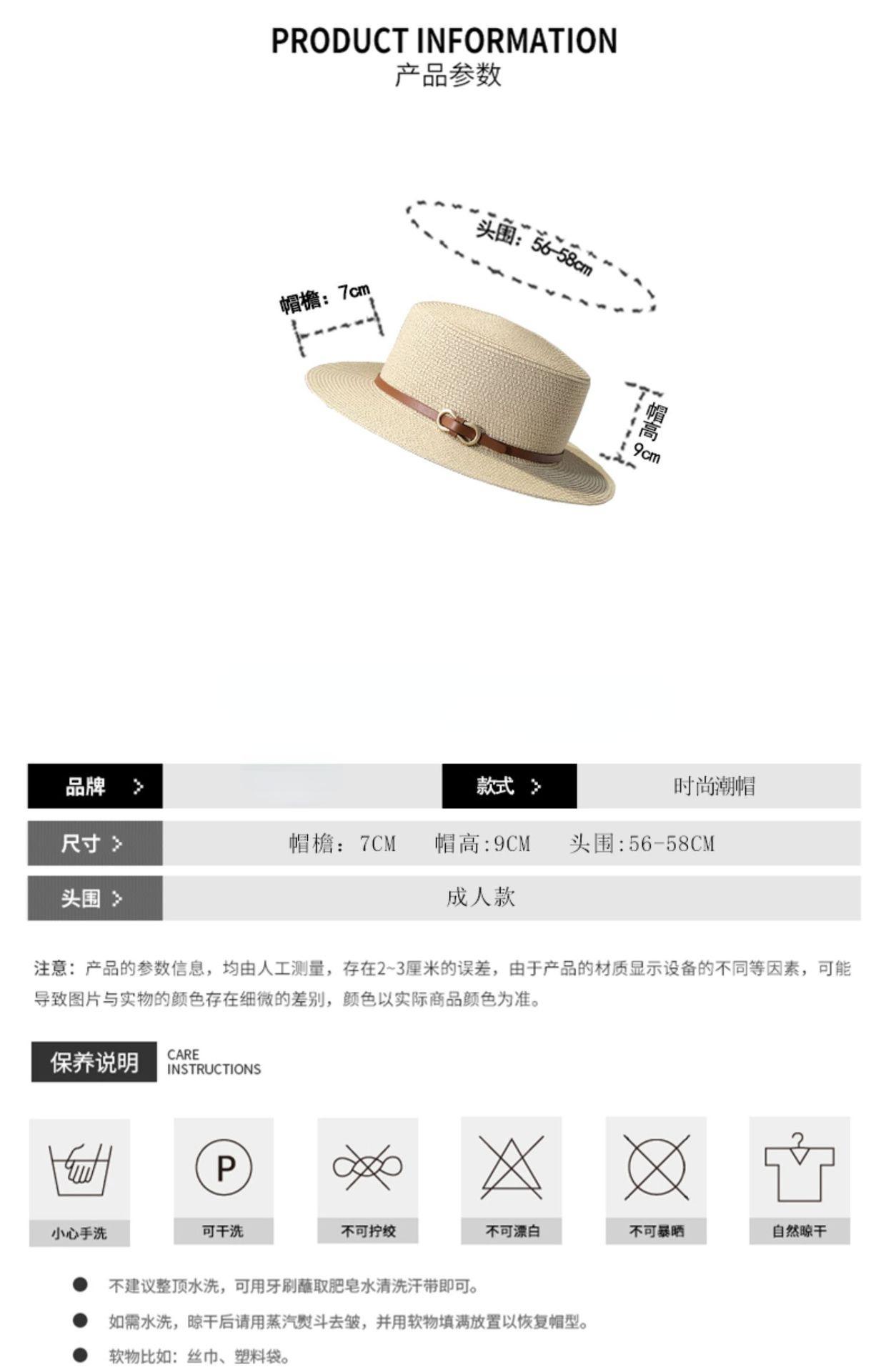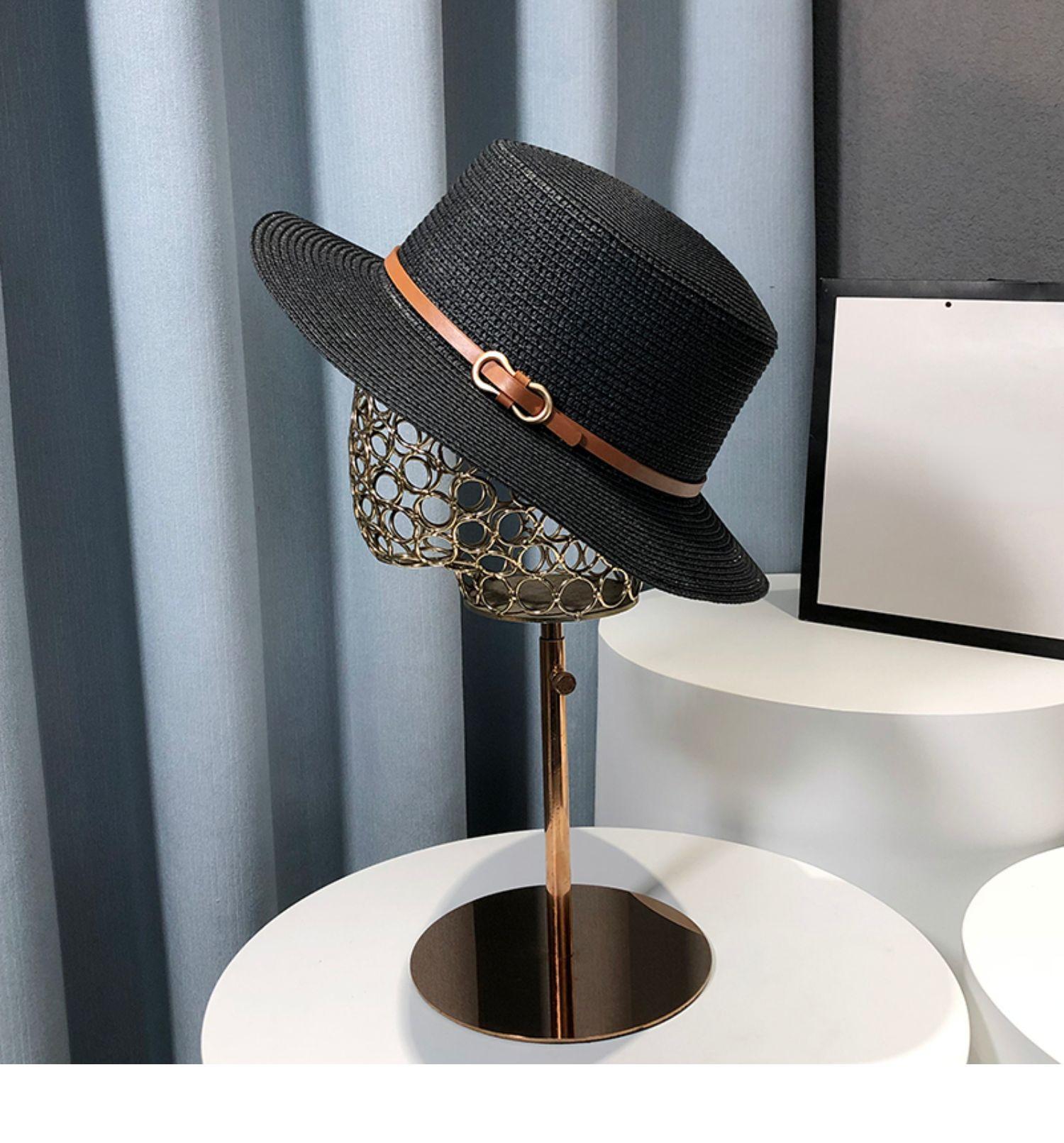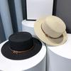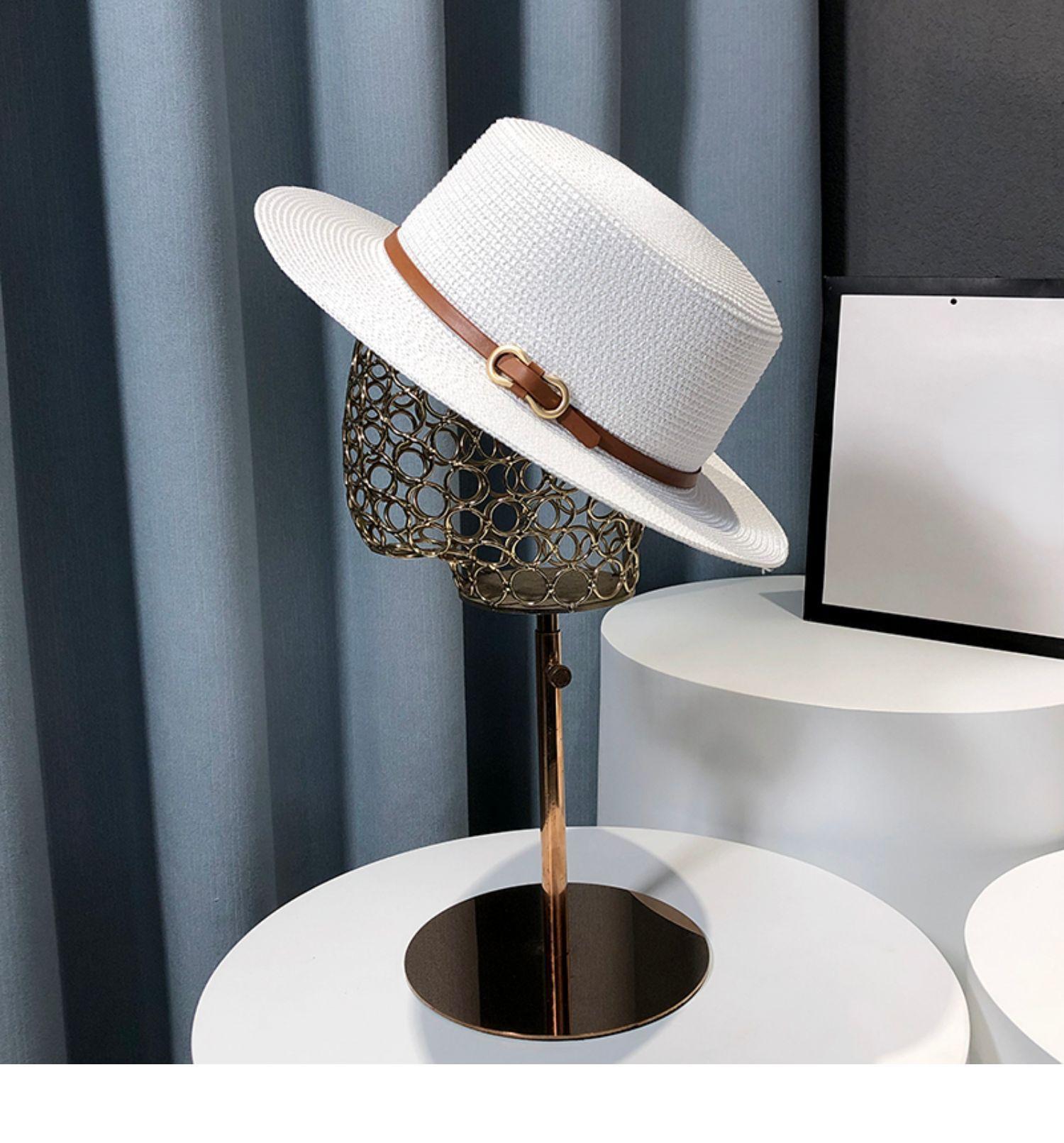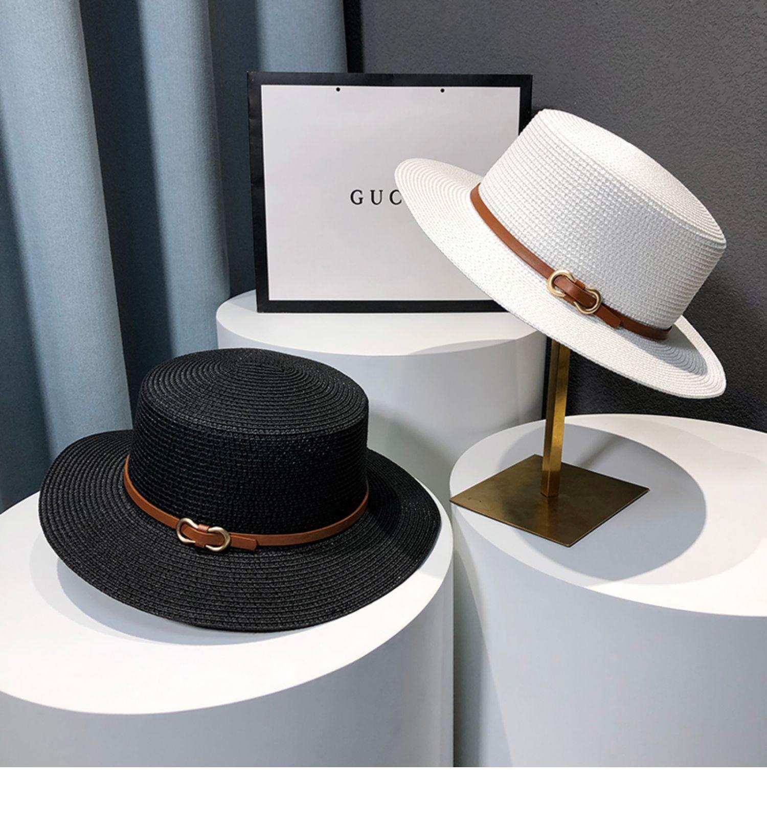Sombrero de Paja de Copa Plana Estilo Francés para Mujer Sombrilla Verano Tejido de Paja Sombrero de Copa Plana Lateral Vacaciones de Viaje Playa Mar Protector Solar Sombrero de Sol