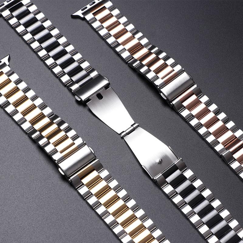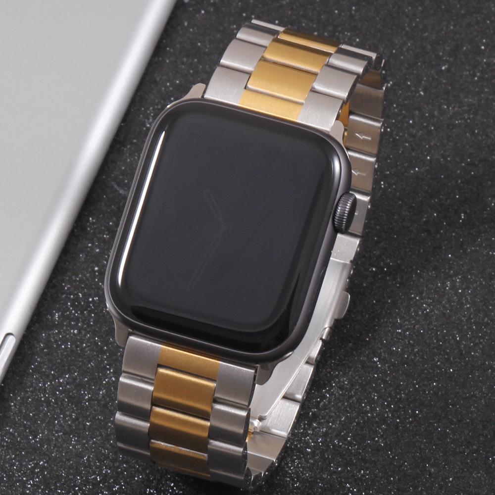 Nombre del producto: Adecuado para Apple iwatch8 correa de metal de tres eslabones Apple Watch765432SE correa de acero inoxidable pulsera