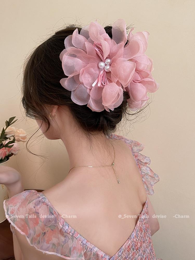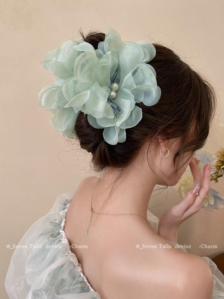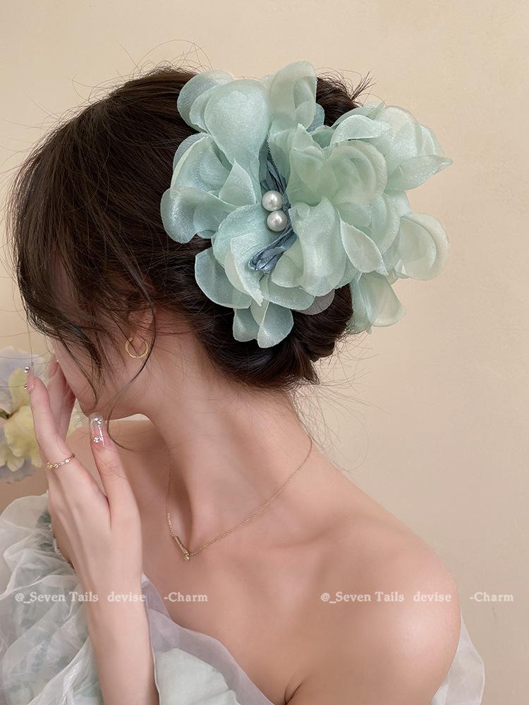 2025 Nuevo Verano Super Hada Malla Flor Pinza para el Cabello para Mujeres, Pinza Tiburón de Alta Gama, Elegante Horquilla para la Parte Posterior de la Cabeza Accesorio para el Cabello