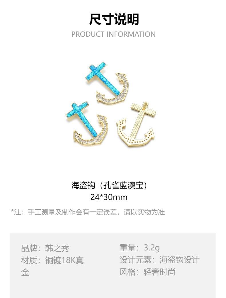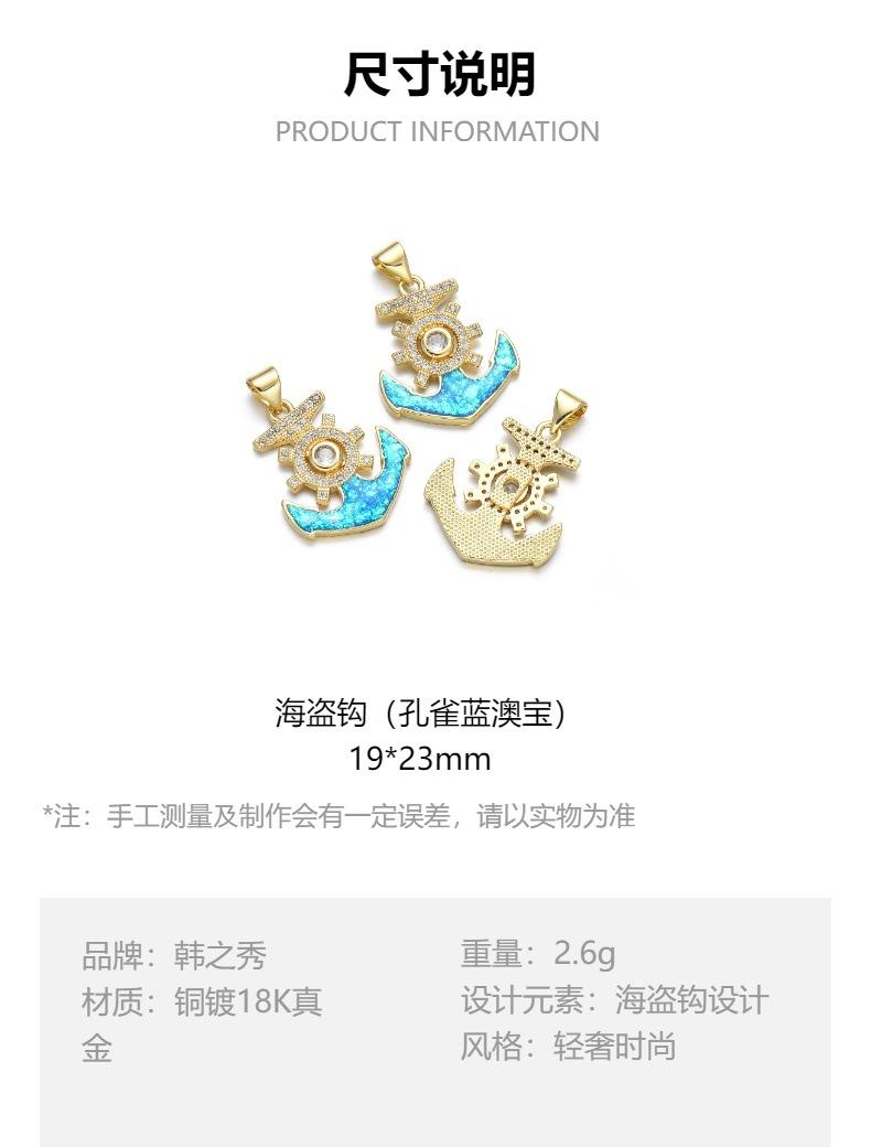Customized pendants (consult customer service), Pirate hook (peacock blue opal), Pirate hook (colorful pink op...