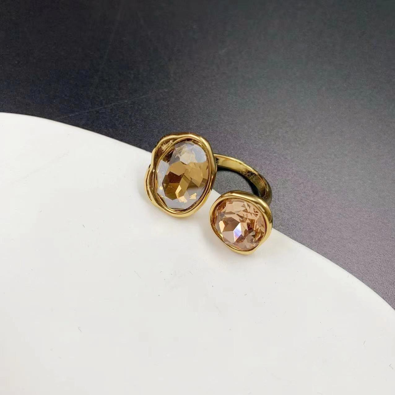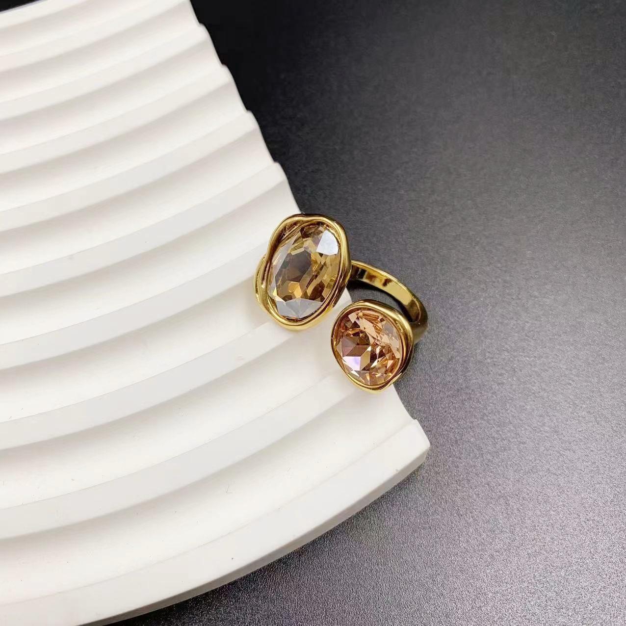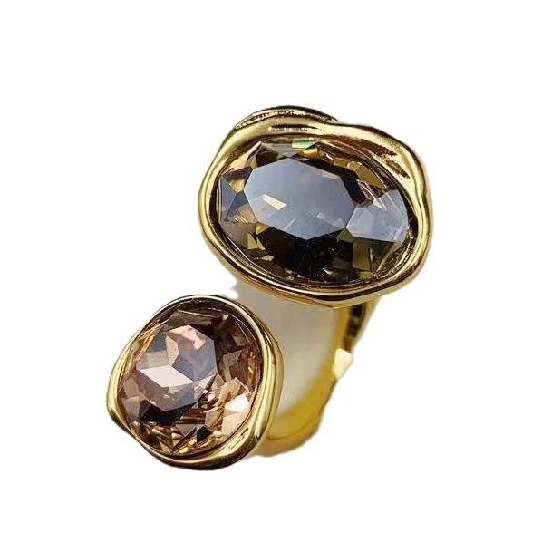 Anillo ajustable abierto estilo Hong Kong francés, anillo decorativo sencillo de cristal K9 para viajeros, anillo liso, joyería elegante