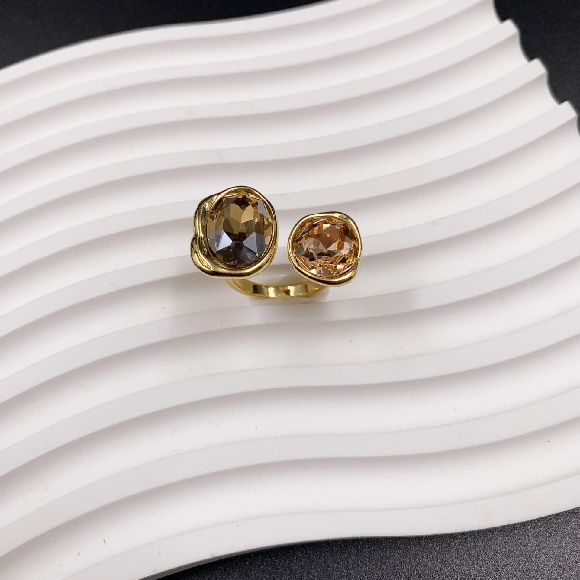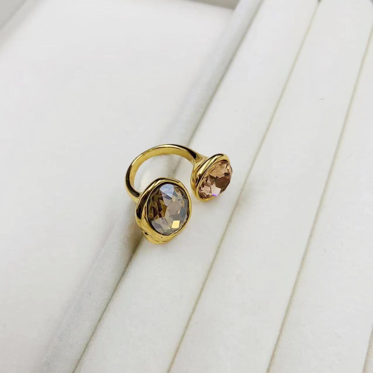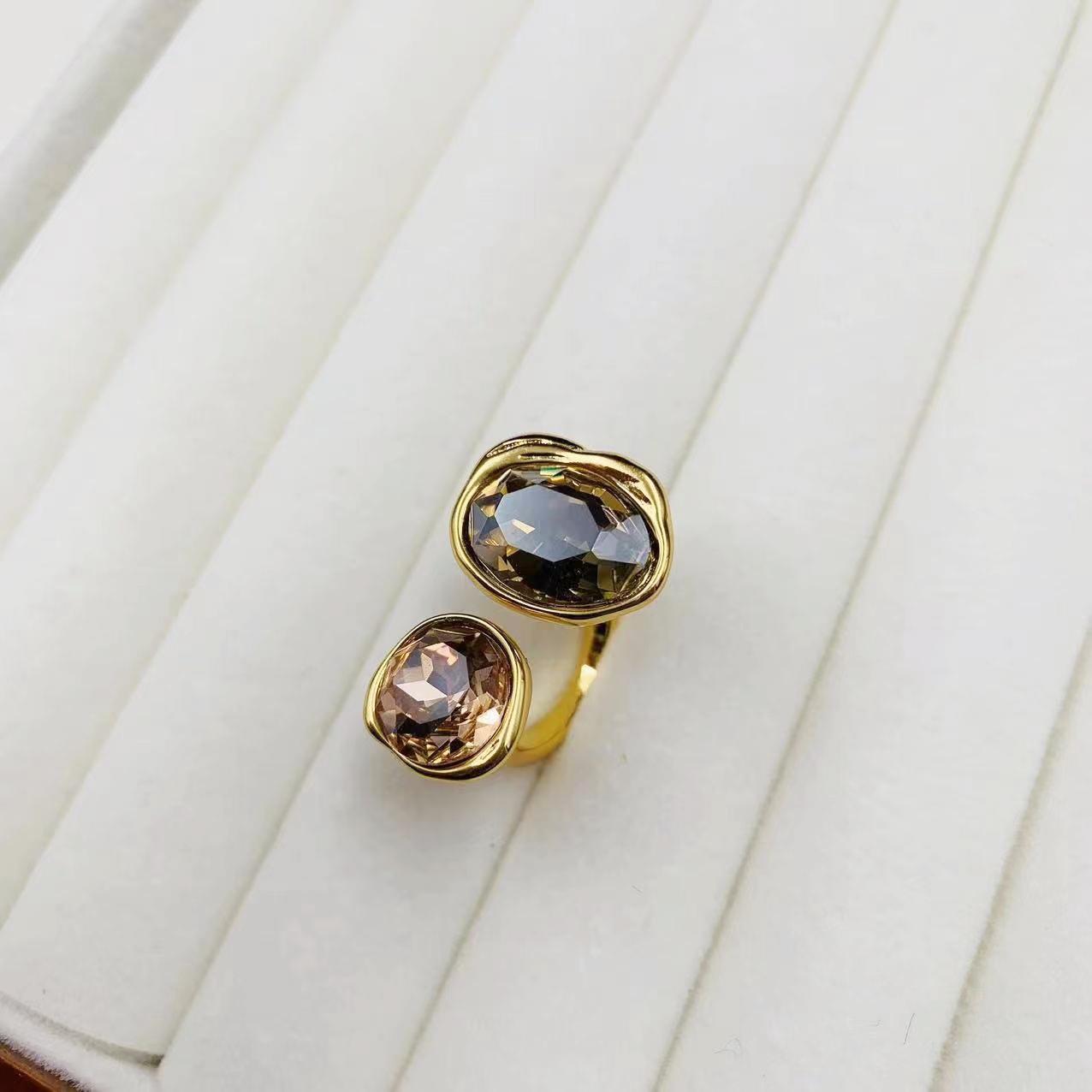 Anillo ajustable abierto estilo Hong Kong francés, anillo decorativo sencillo de cristal K9 para viajeros, anillo liso, joyería elegante
