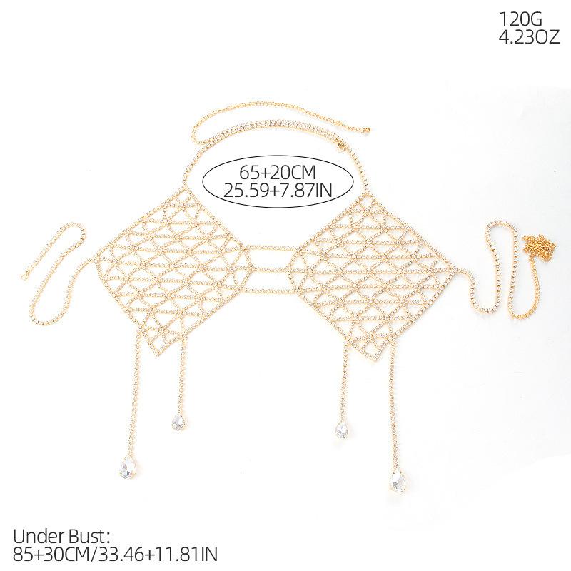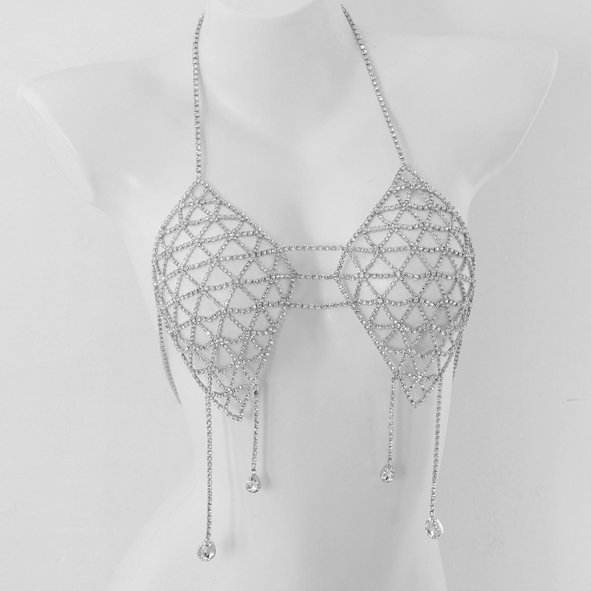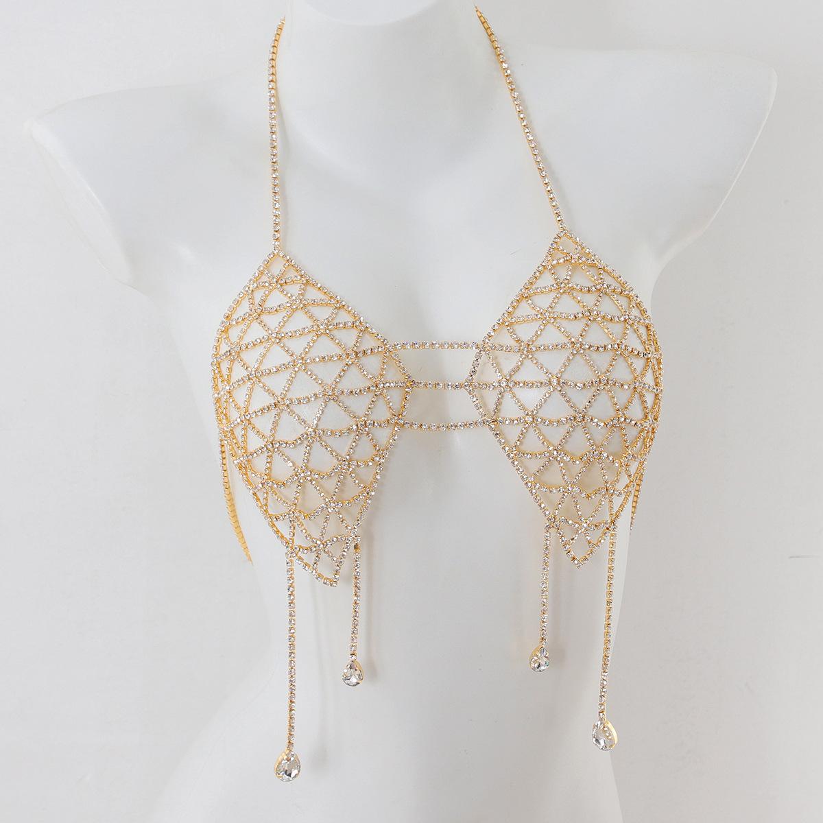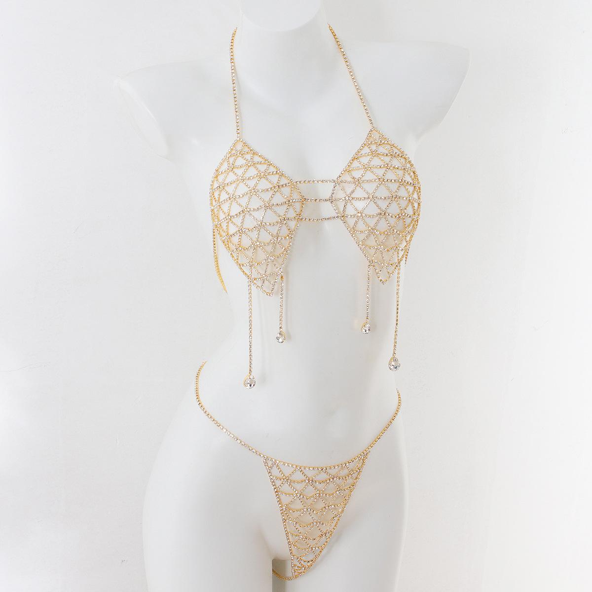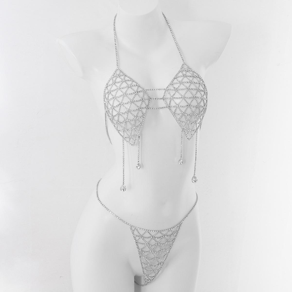 Sujetador de bikini con diamantes de imitación, estilo transfronterizo, para discoteca, playa, sexy, cadena para el pecho, 2023