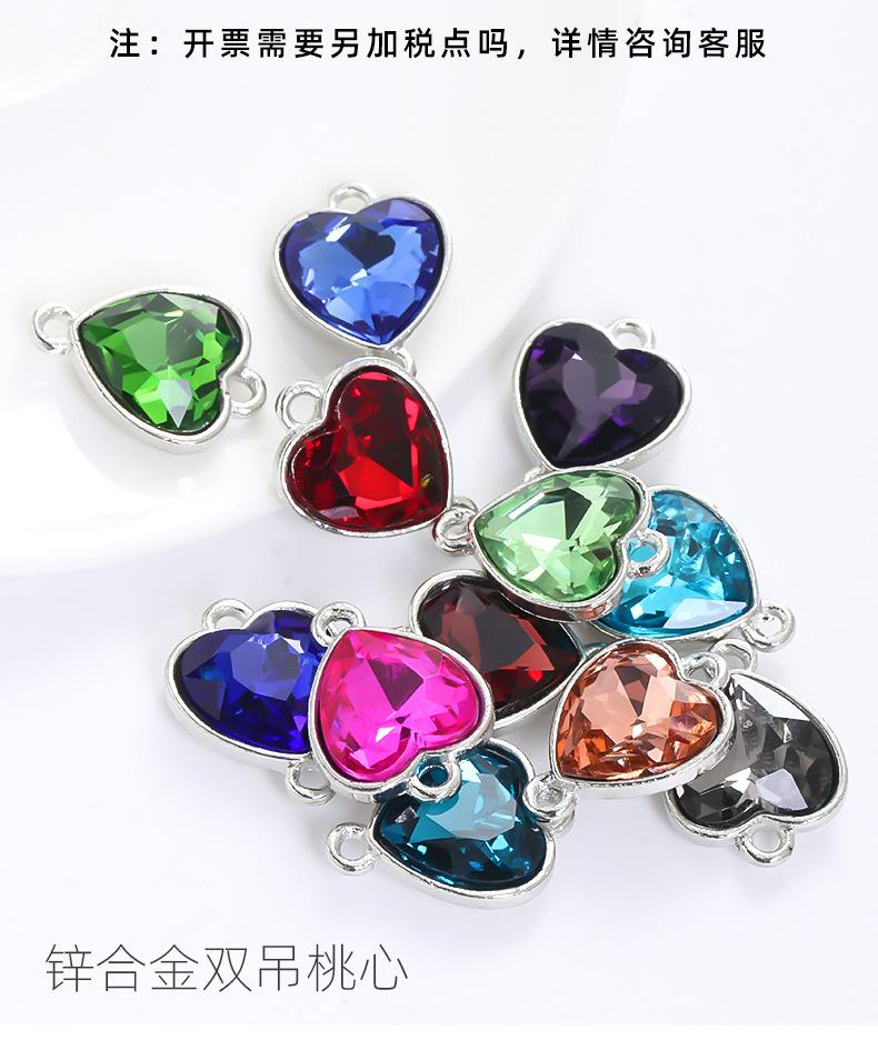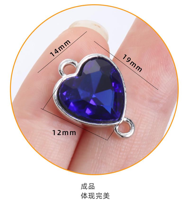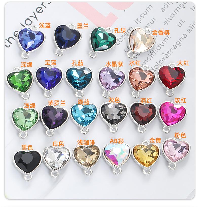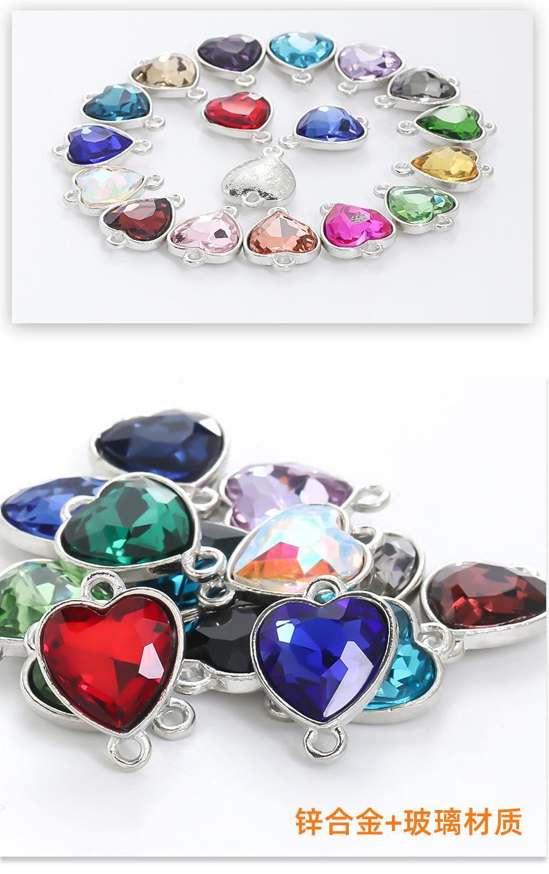 Colgante Doble en Forma de Corazón, Base de Aleación de Zinc que No se Desvanece, Pulsera Collar Accesorio de Joyería Soporte, Colgante Doble de Corazón de Cristal