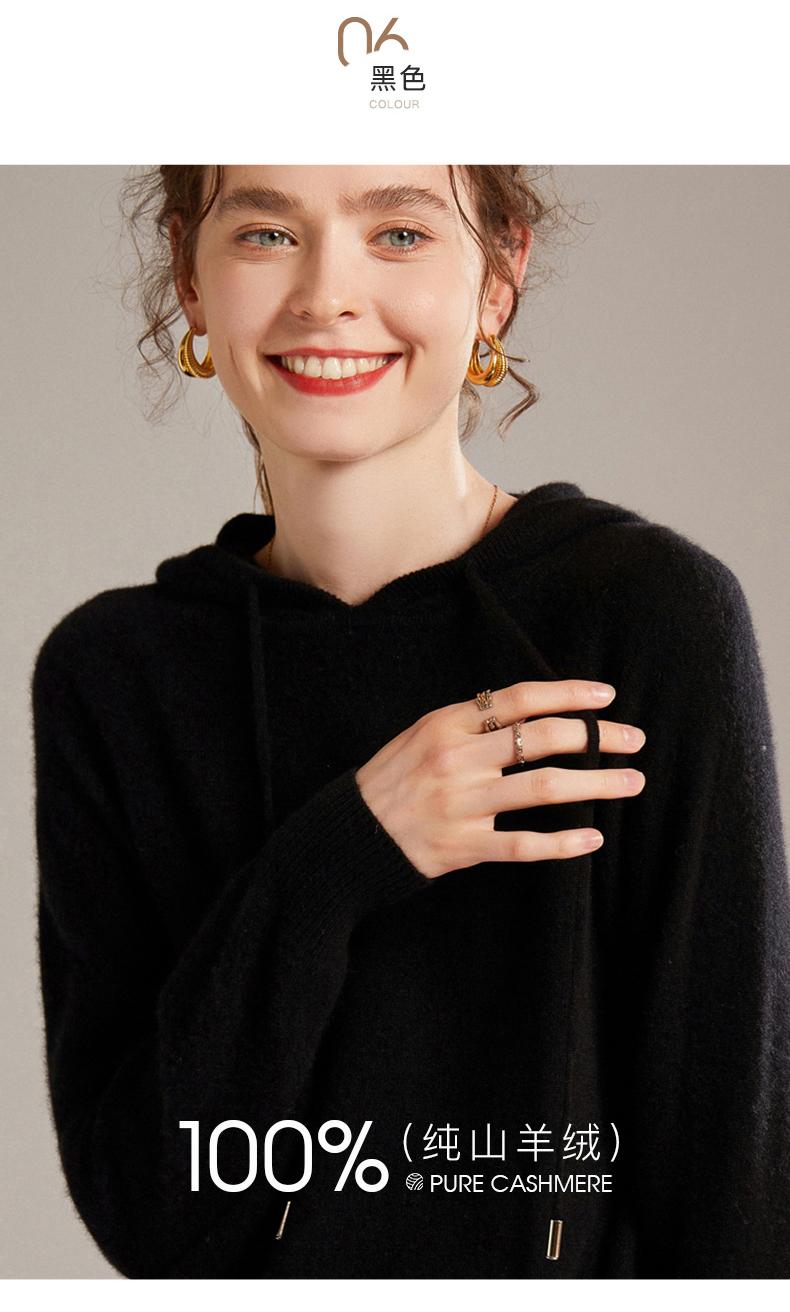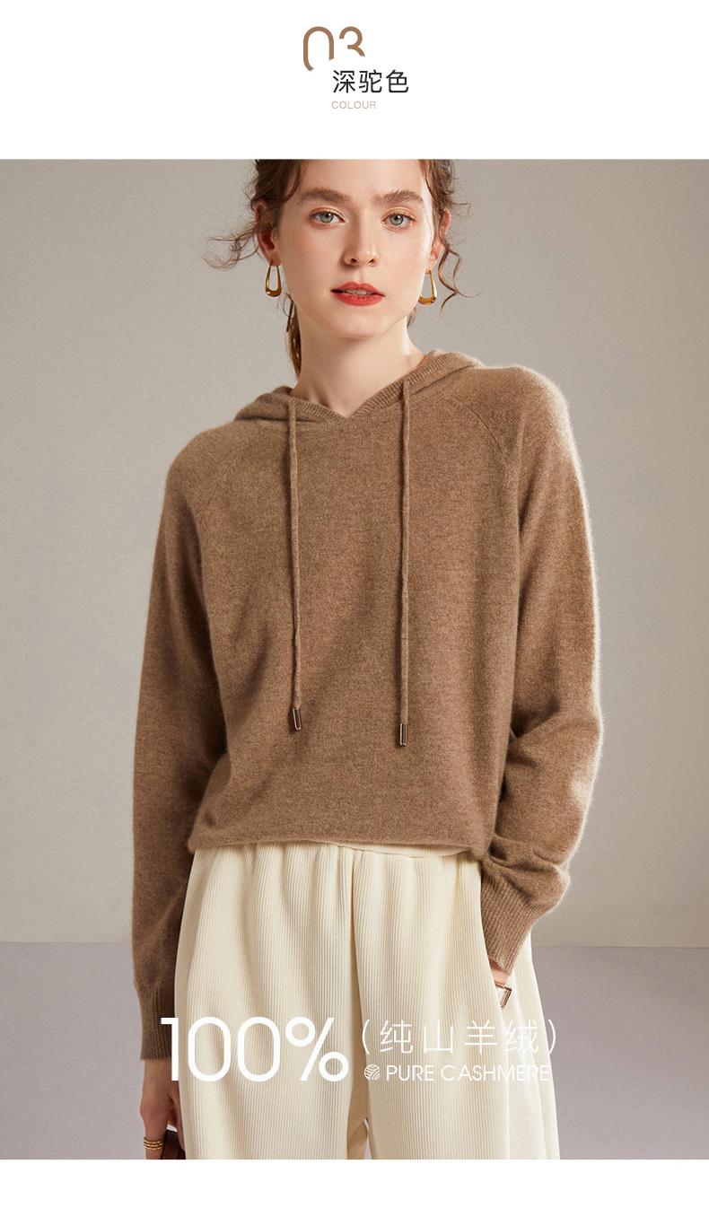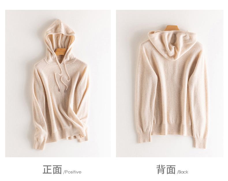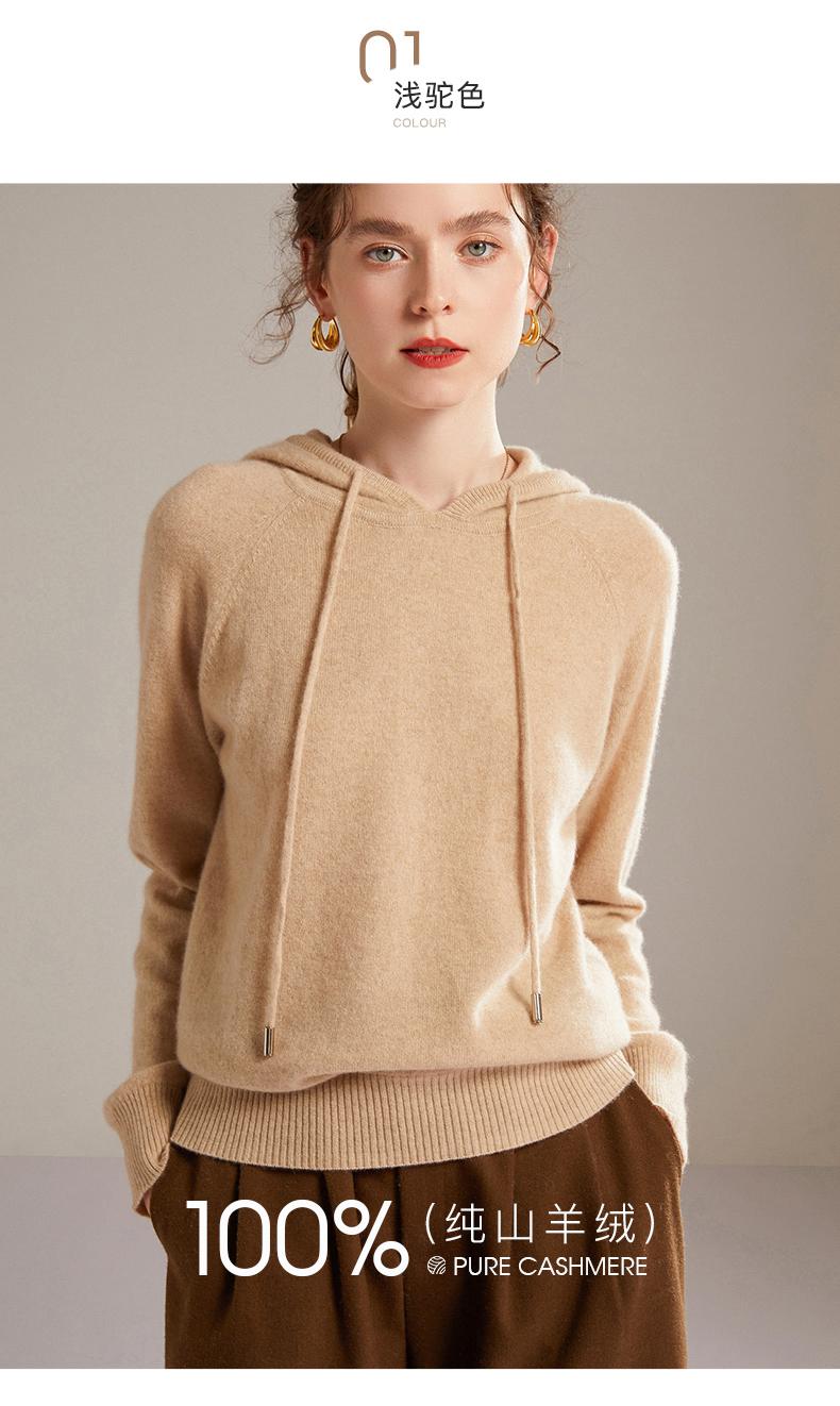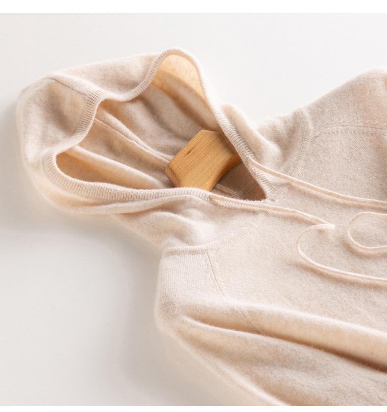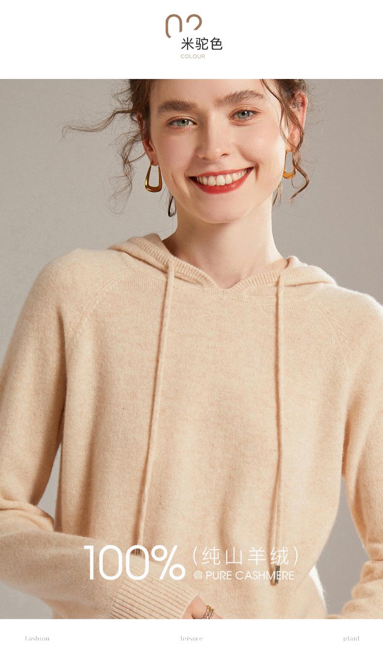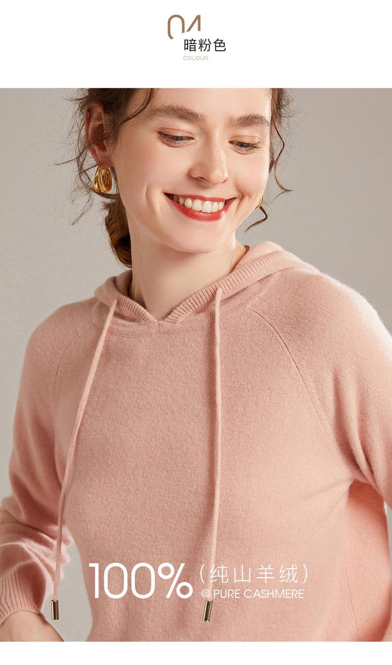 Suéter con capucha de cachemira 100 Jingshan para mujer, suéter con capucha, suéter de punto suelto de color sólido, suéter de fondo para otoño e invierno, nuevo