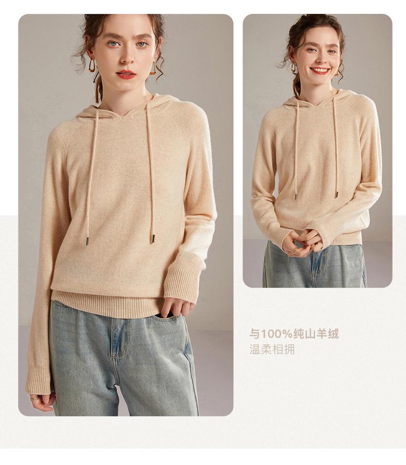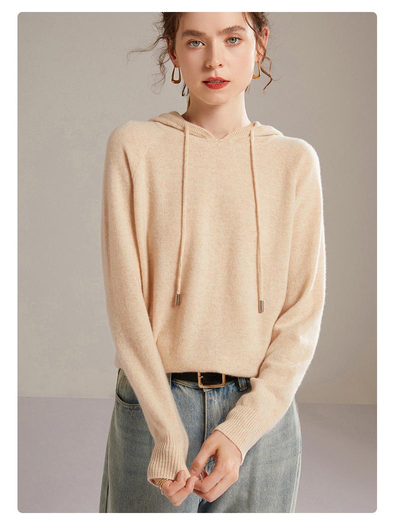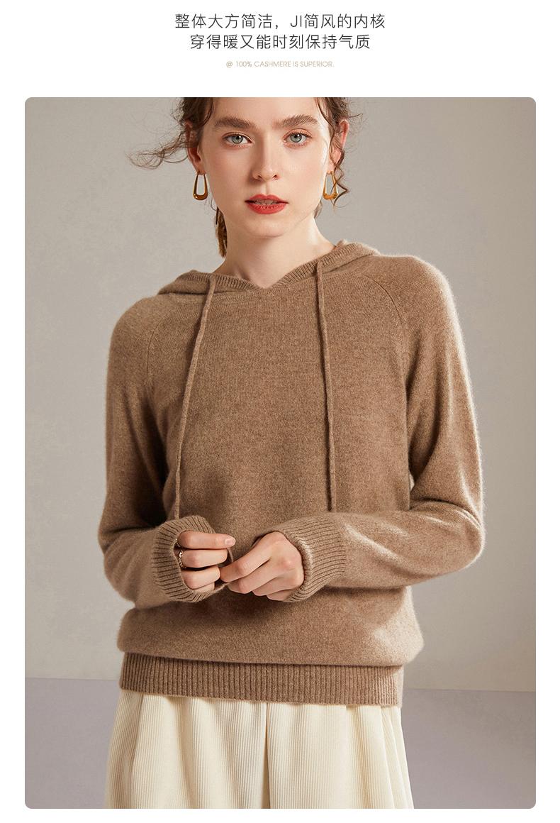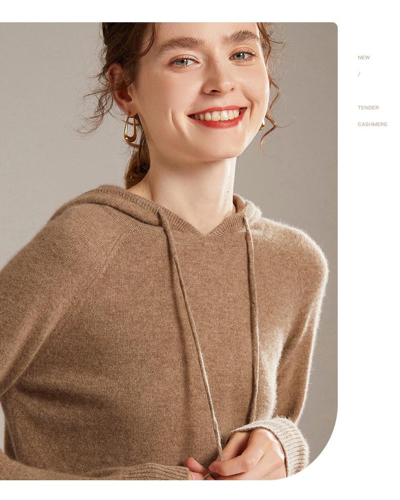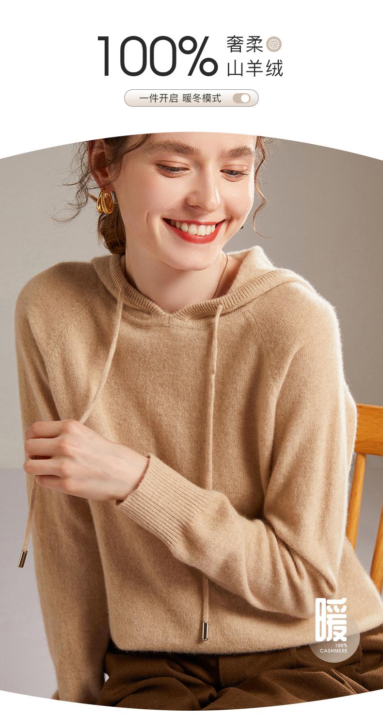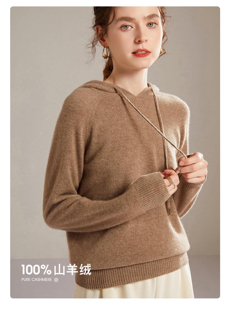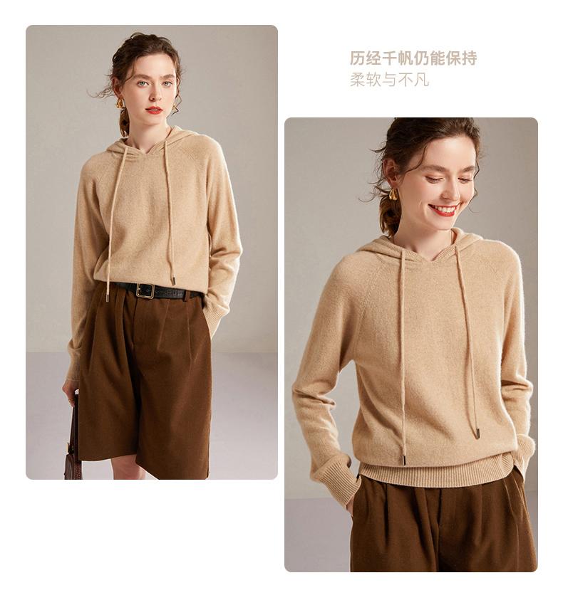 Suéter con capucha de cachemira 100 Jingshan para mujer, suéter con capucha, suéter de punto suelto de color sólido, suéter de fondo para otoño e invierno, nuevo