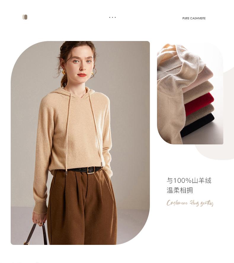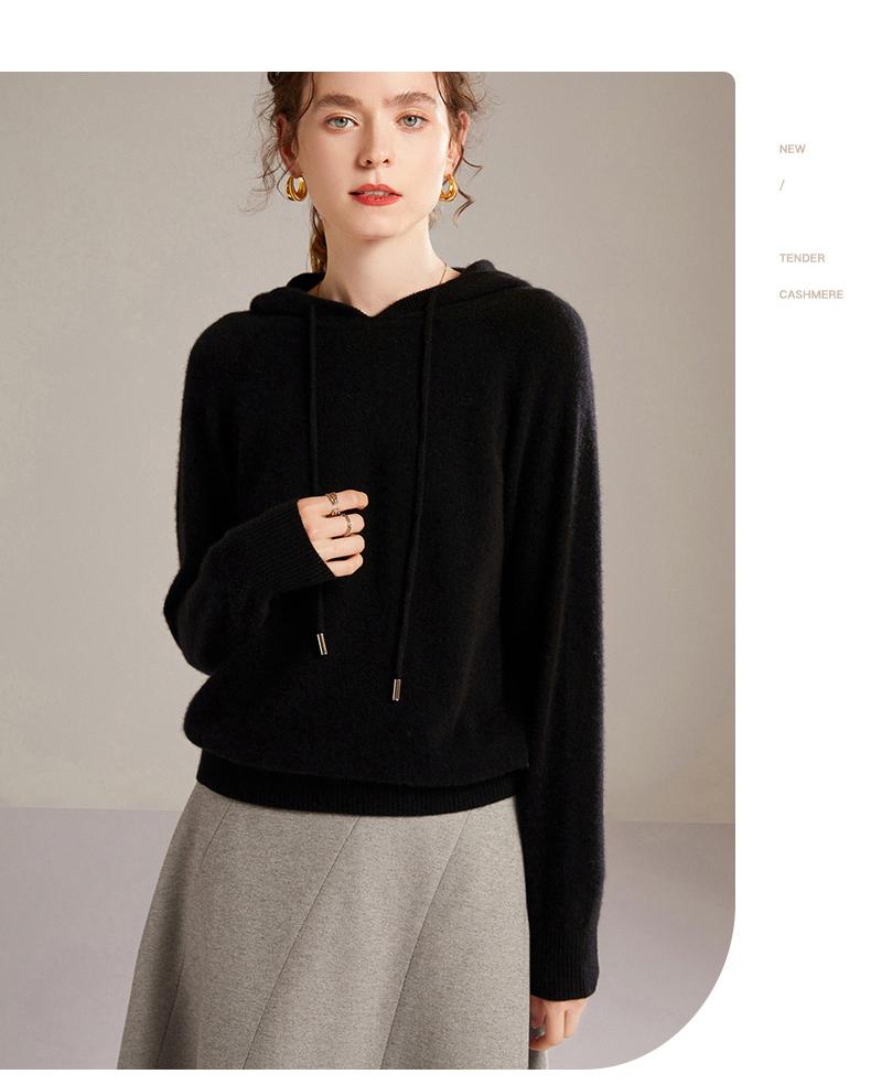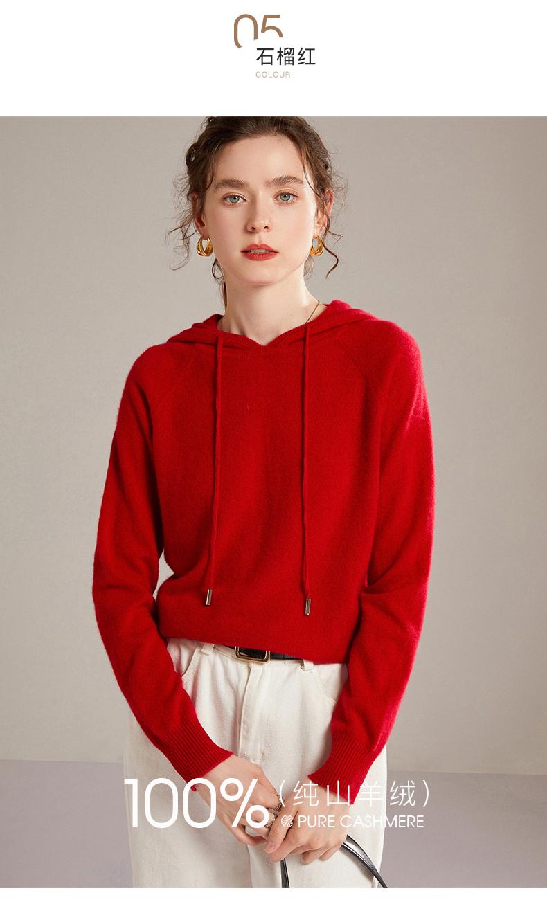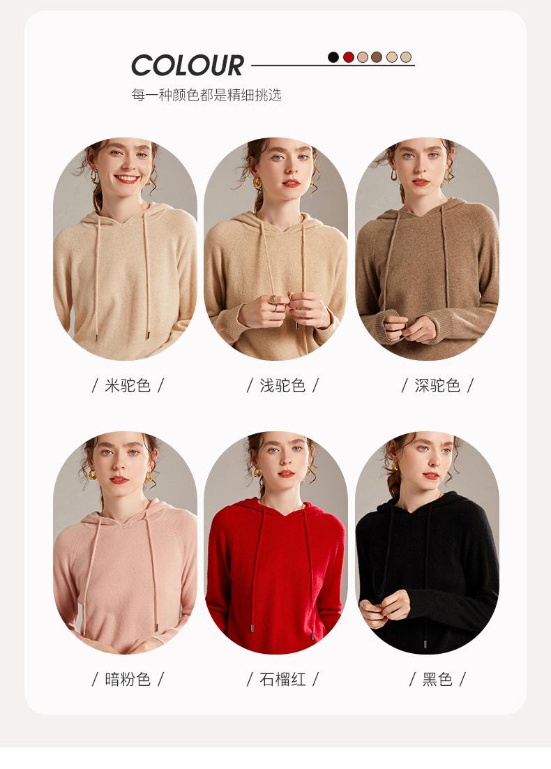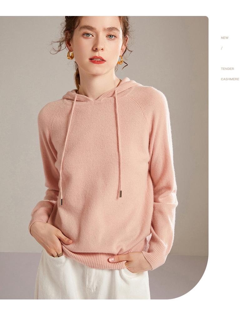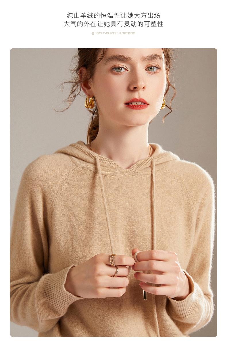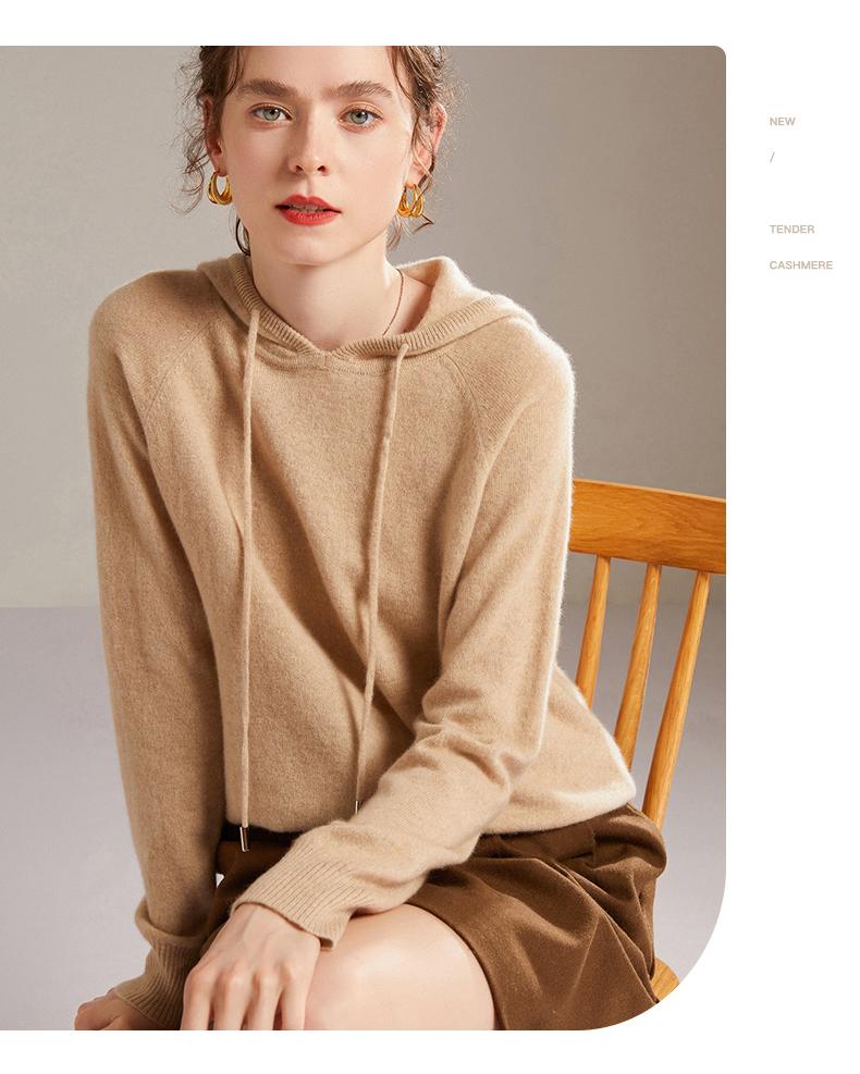 Suéter con capucha de cachemira 100 Jingshan para mujer, suéter con capucha, suéter de punto suelto de color sólido, suéter de fondo para otoño e invierno, nuevo