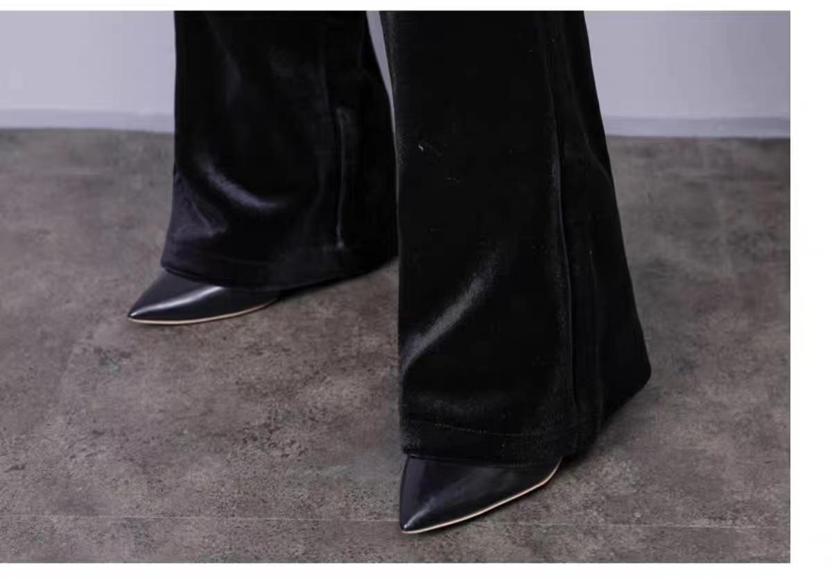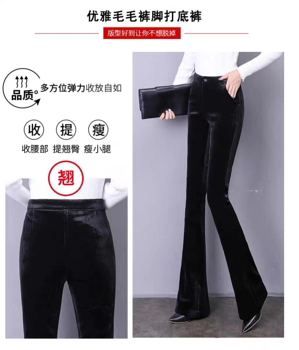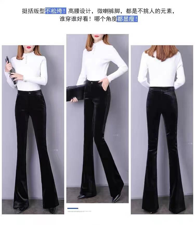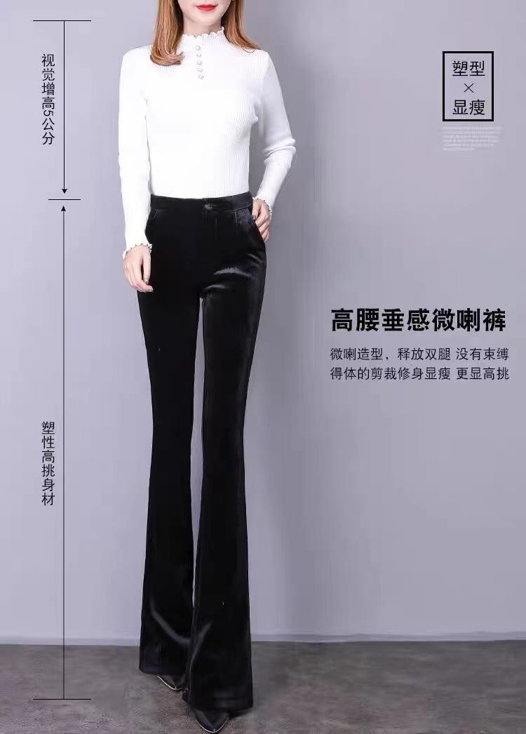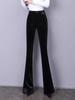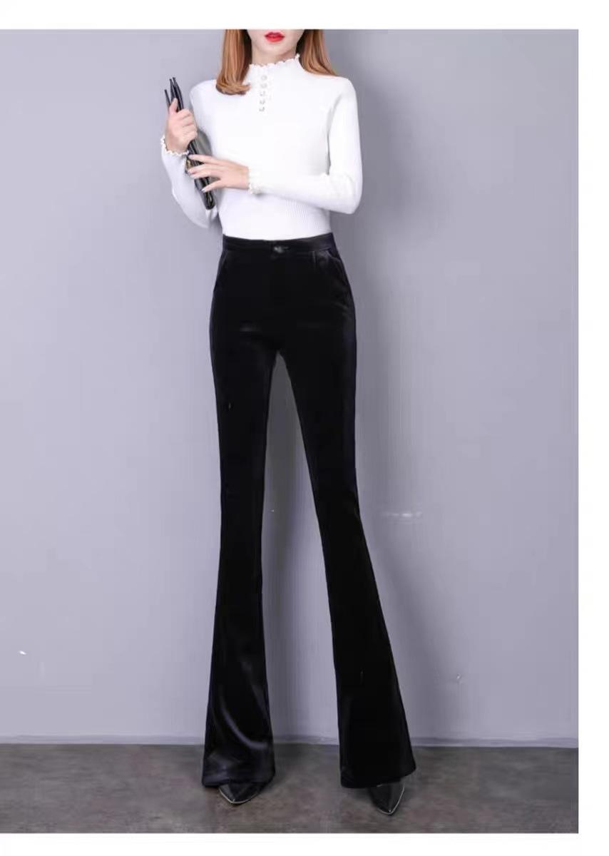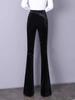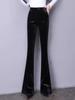 Pantalones acampanados de mujer, otoño e invierno 2023, nuevos pantalones casuales gruesos adelgazantes negros de estilo coreano de cintura alta con drapeado de terciopelo dorado