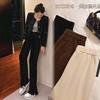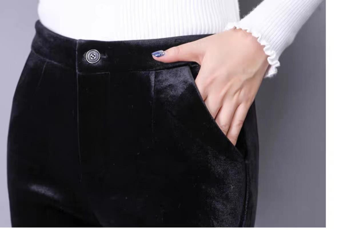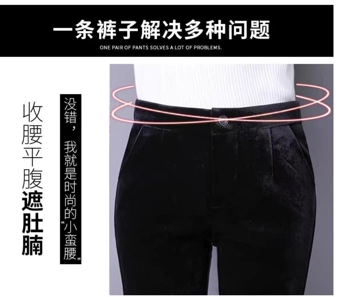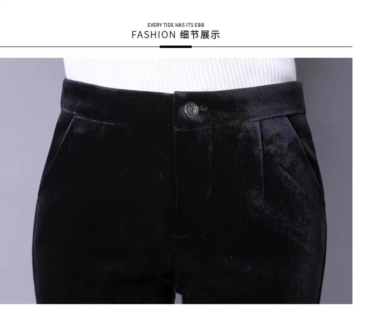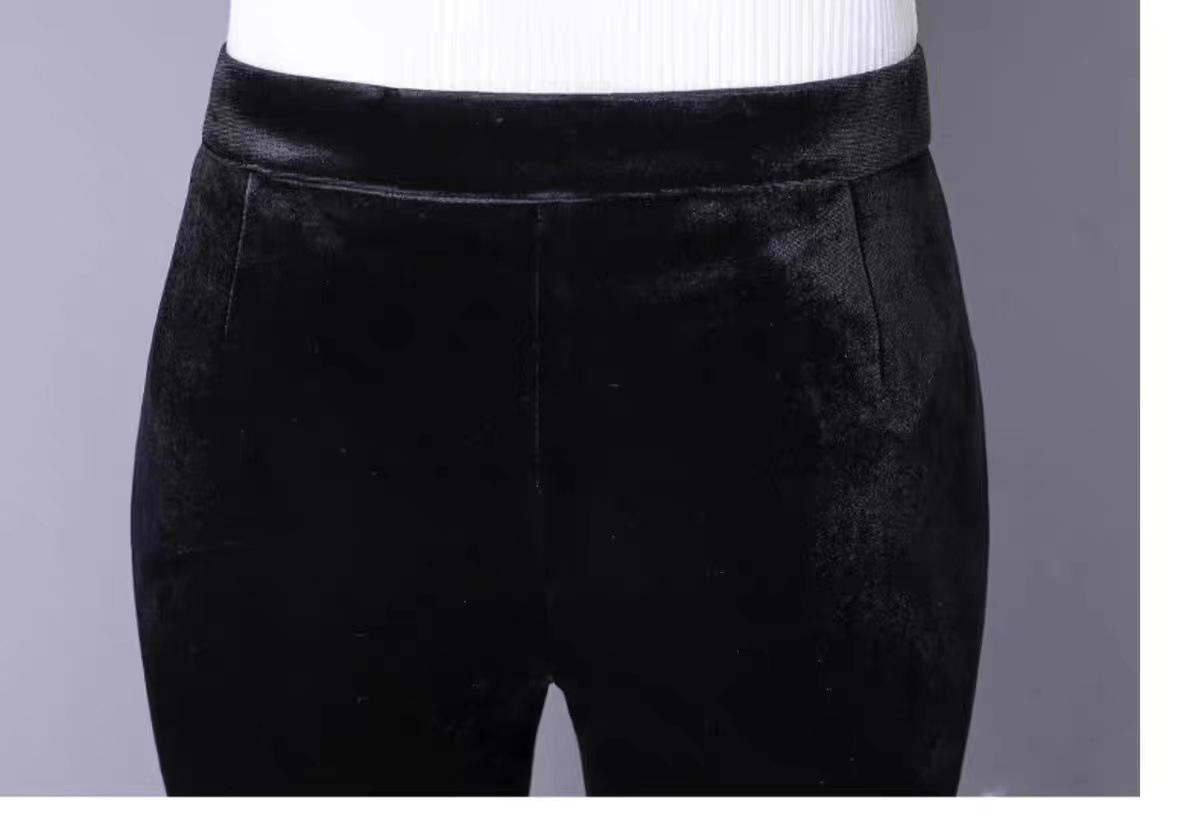 Pantalones acampanados de mujer, otoño e invierno 2023, nuevos pantalones casuales gruesos adelgazantes negros de estilo coreano de cintura alta con drapeado de terciopelo dorado