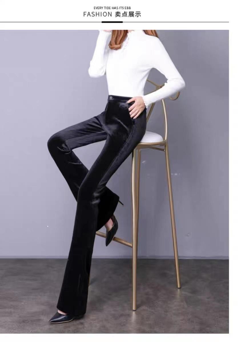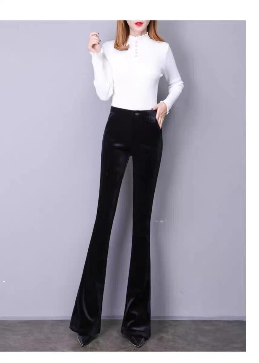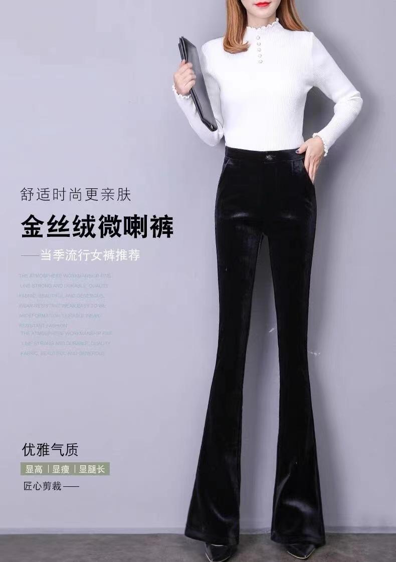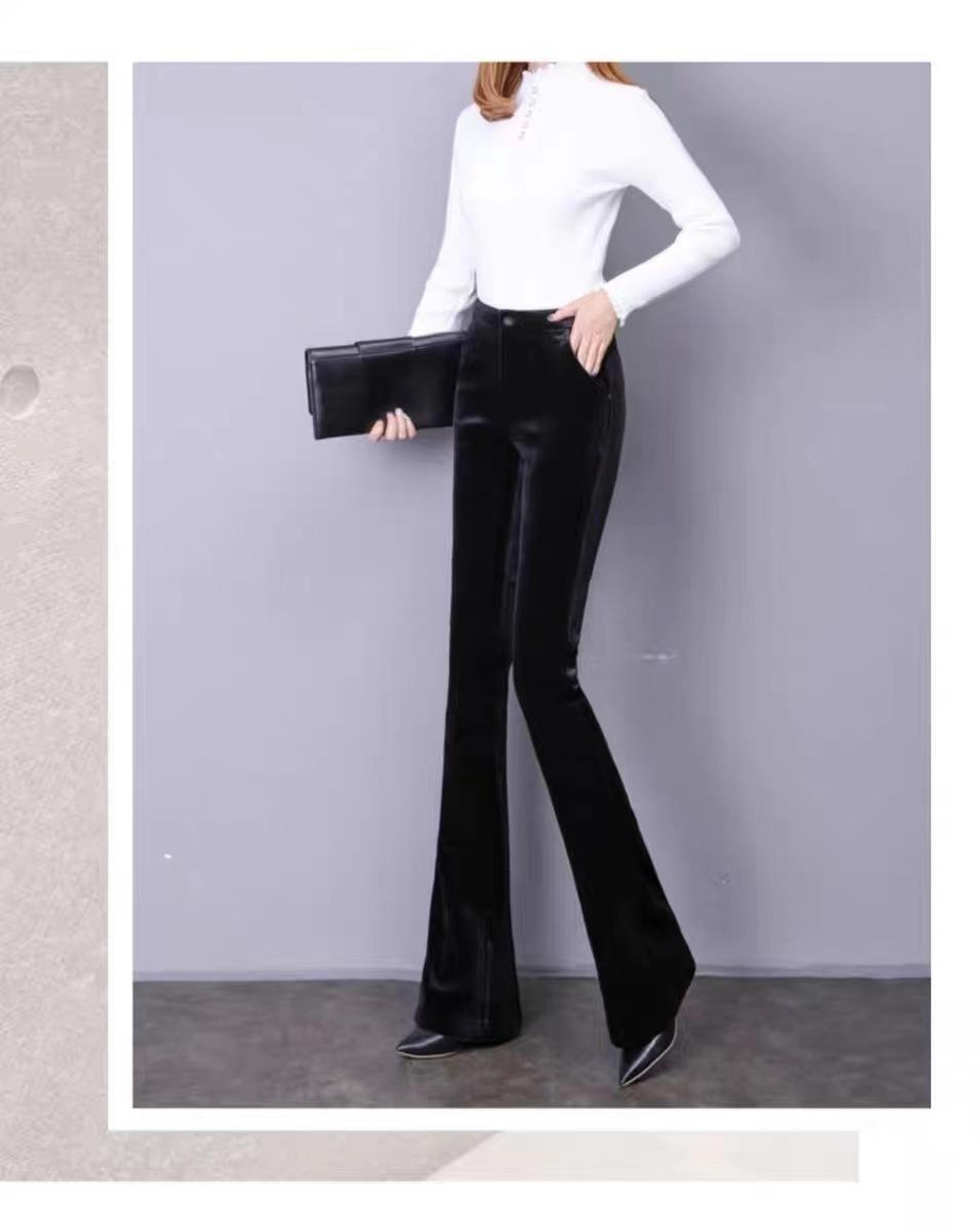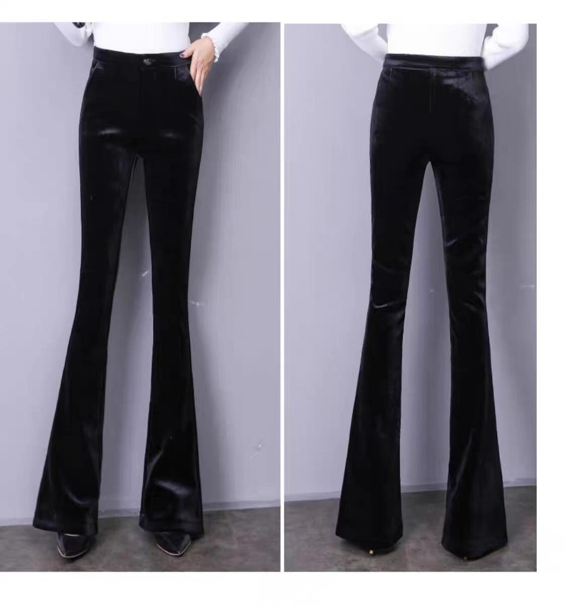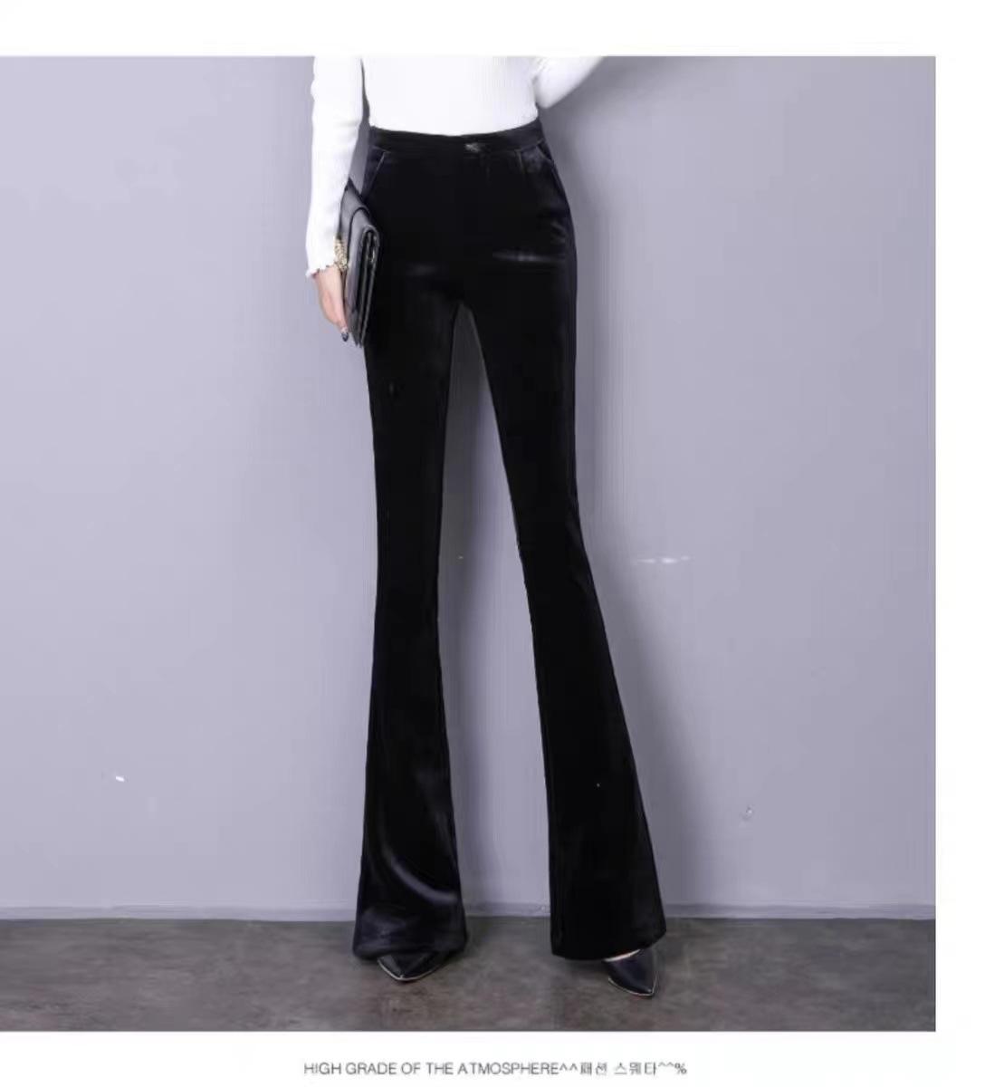 Pantalones acampanados para mujer, otoño e invierno 2023, nuevos, de cintura alta, versión coreana, negros, ajustados, gruesos, informales, con drapeado de terciopelo dorado