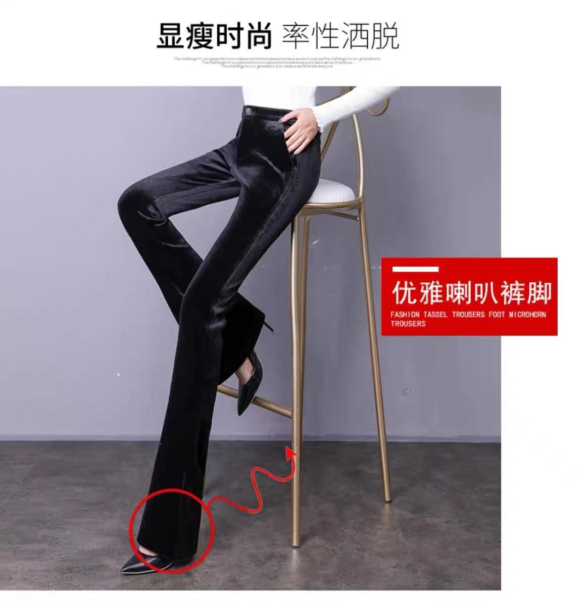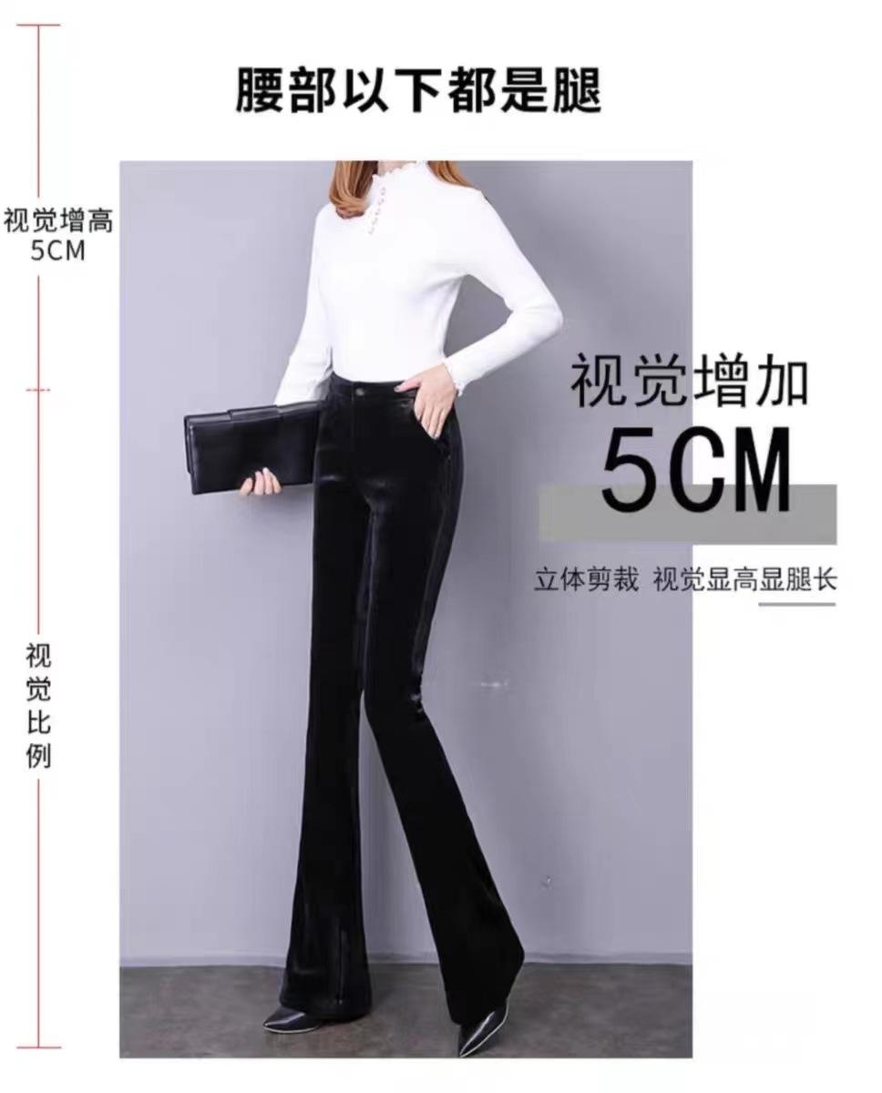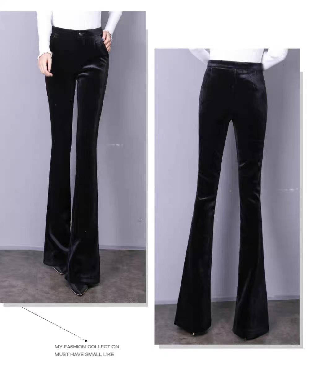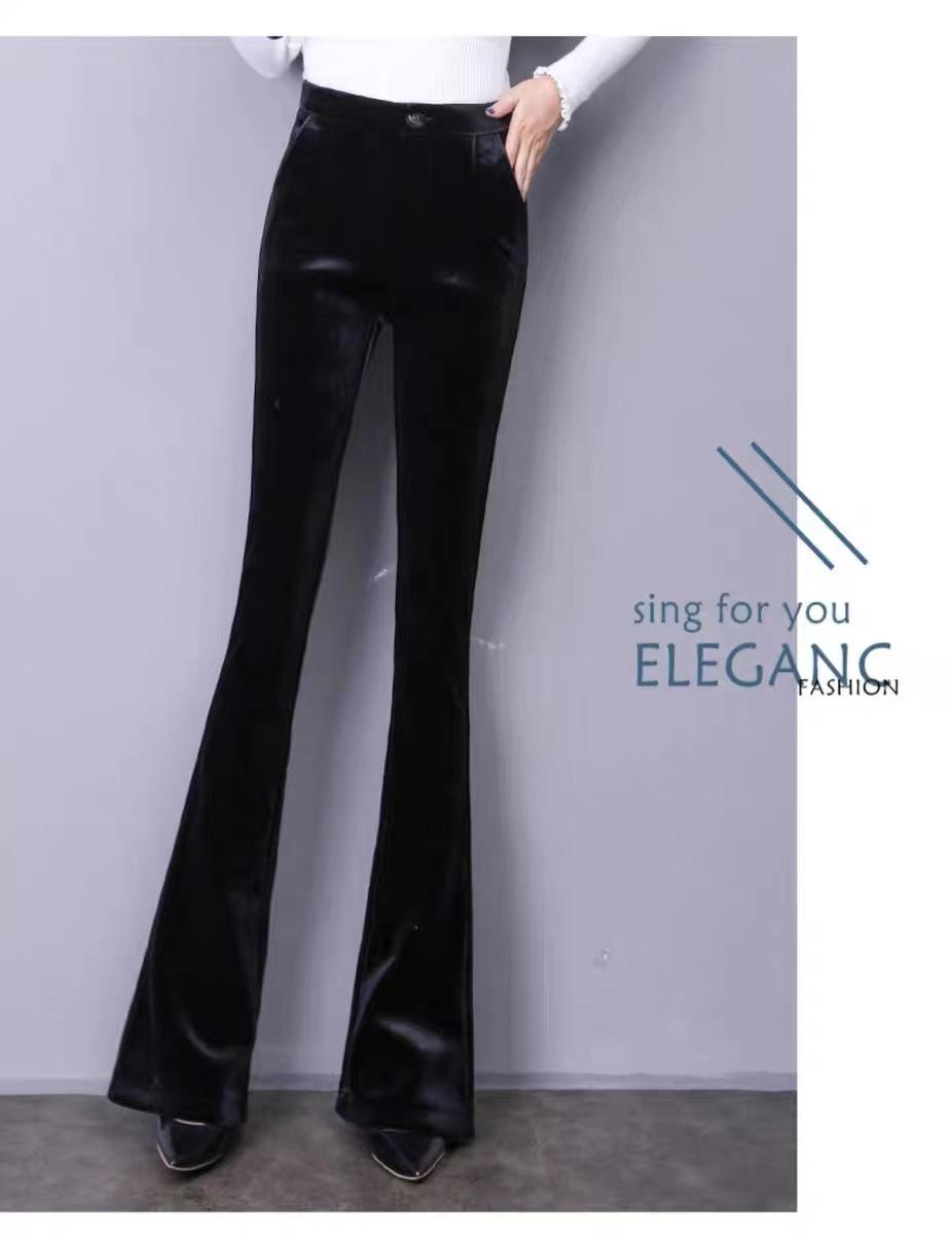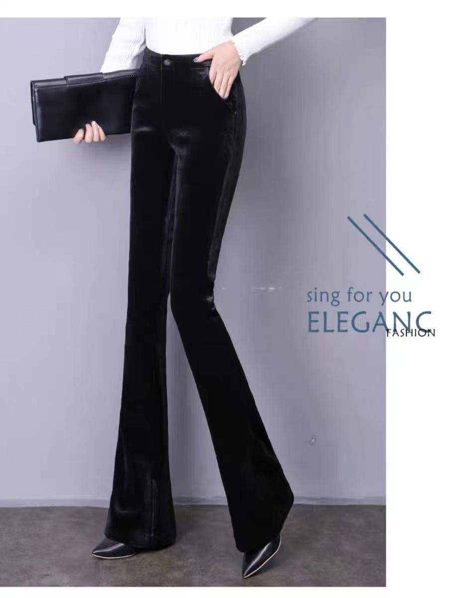 Pantalones acampanados para mujer, otoño e invierno 2023, nuevos, de cintura alta, versión coreana, negros, ajustados, gruesos, informales, con drapeado de terciopelo dorado