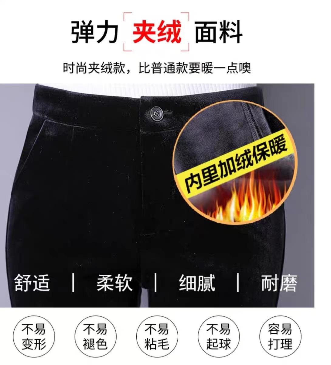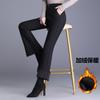 Black micro flared pants zipper button winter fleece-lined, Black micro flared pants elastic waist winter fleece-lined