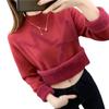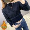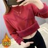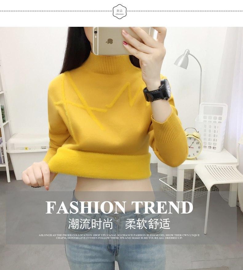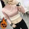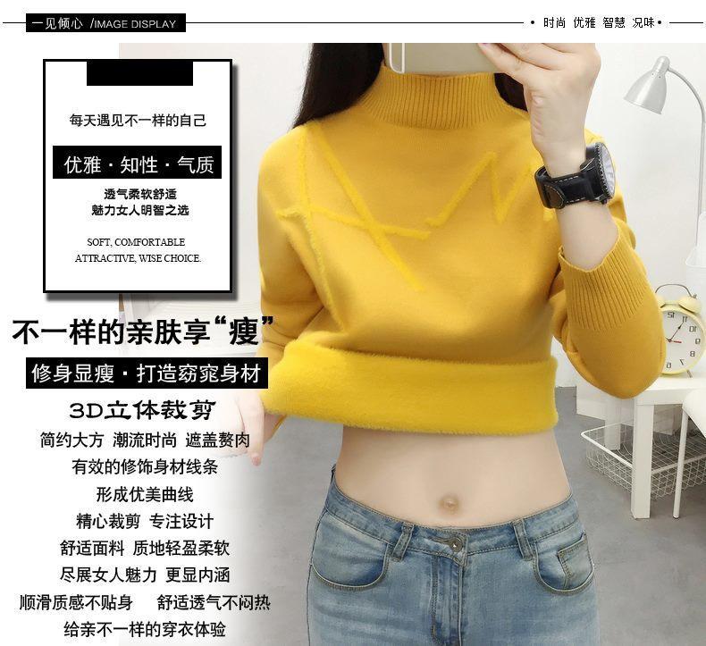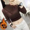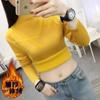 Suéter de cuello alto medio de terciopelo de una pieza, prenda de punto para mujer, otoño e invierno, camisa de fondo engrosada con forro polar, parte superior interior cálida para mujer