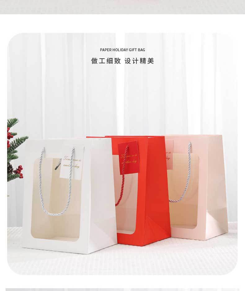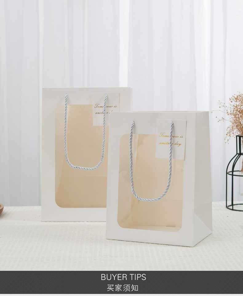 Bolsa de Regalo de Flores para el Día del Maestro con Ventana Transparente, Bolso de Mano de Alta Gama, Bolsa de Regalo Complementaria, Bolsa para Empaque de Flores