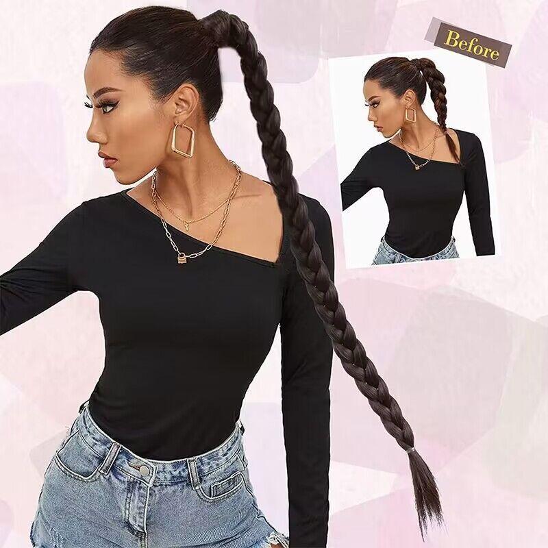 Peluca de cola de caballo femenina con extensión de cabello enrollado, peluca de cola de caballo estilo boxeo, disponible en stock, peluca trenzada Xuchang