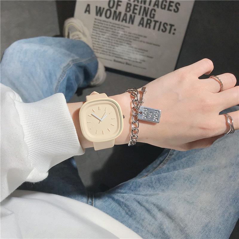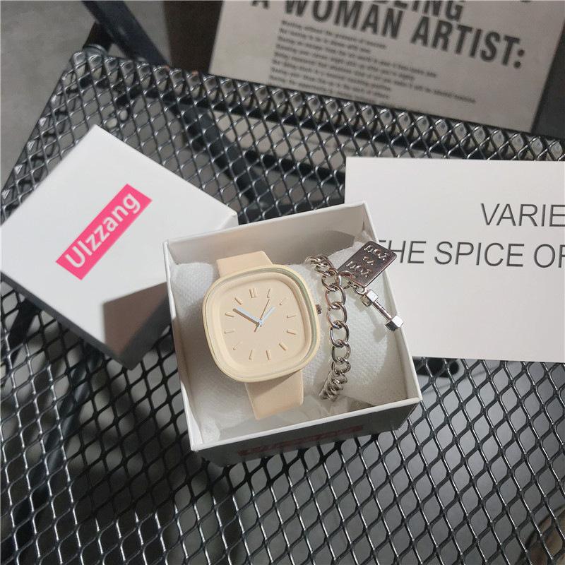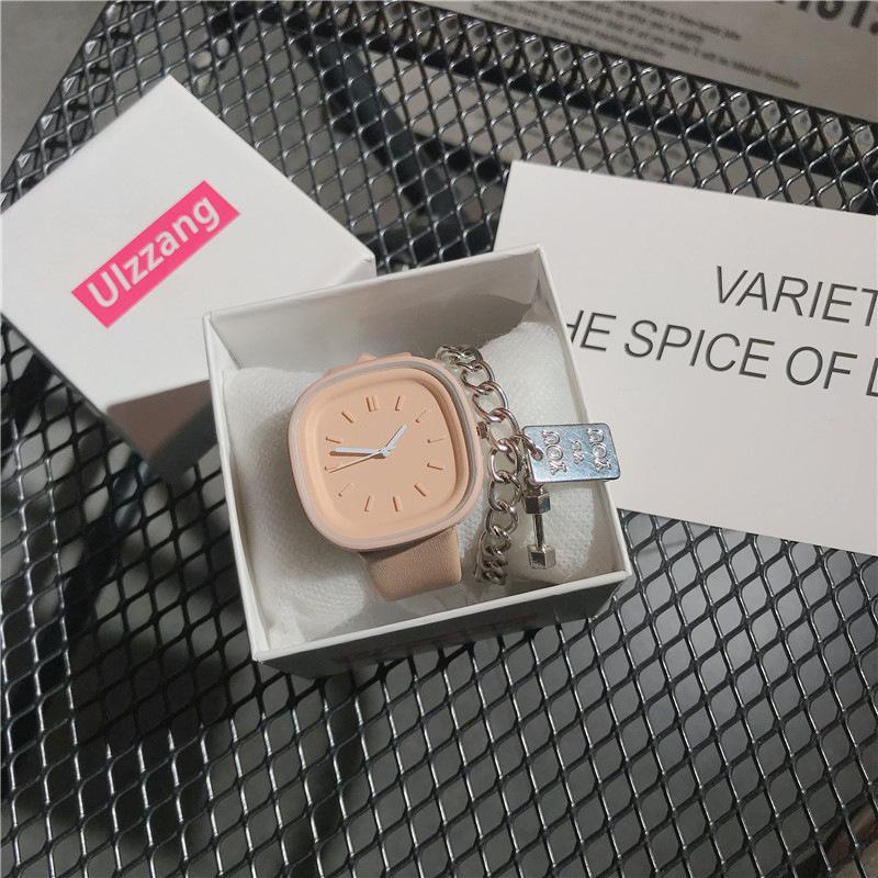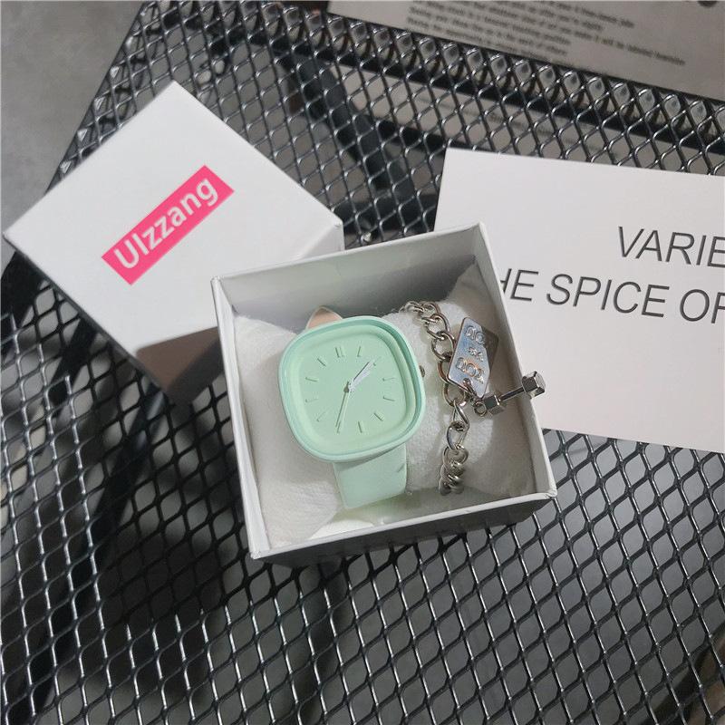 Reloj cuadrado sencillo de estilo sencillo para mujer, elegante y de alta gama, de cuarzo, ideal para estudiantes de secundaria y preparatoria.