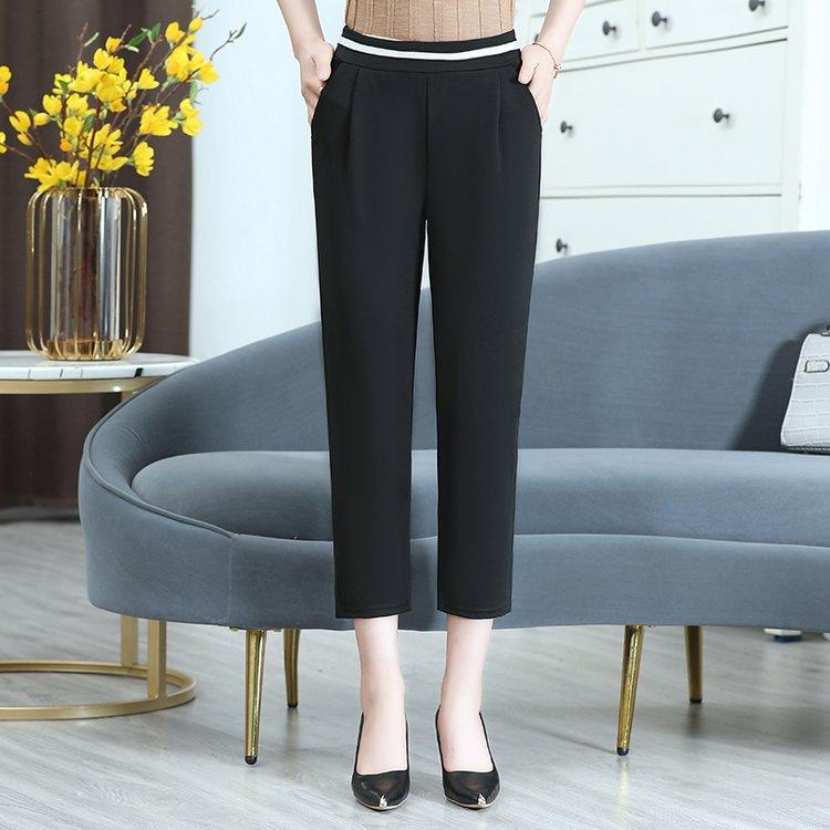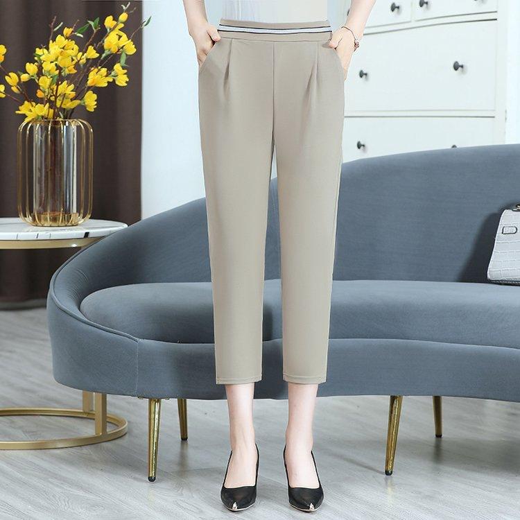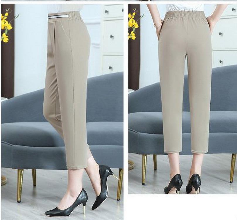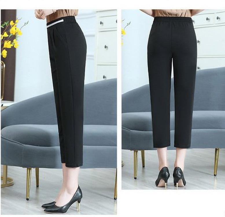 Pantalones de verano para mujer, con cintura elástica, rectos, informales, ajustados, holgados, para madres de mediana edad y mayores.
