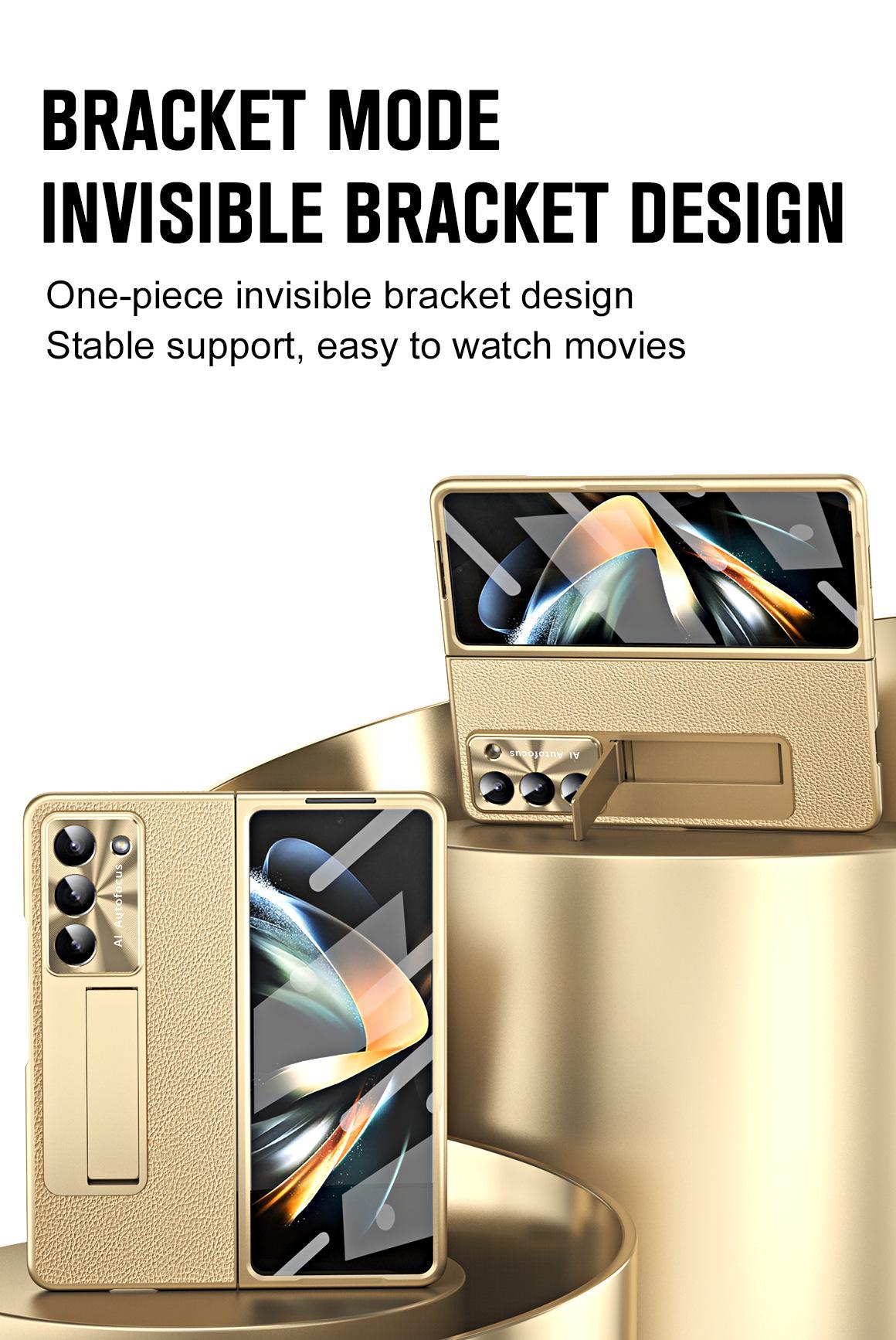 Para Funda de Teléfono Móvil Samsung Zfold5 FOLD5 Cubierta Protectora de Pantalla Plegable Funda de Color Sólido de Cuero Liso Película Funda Integrada a Prueba de Caídas